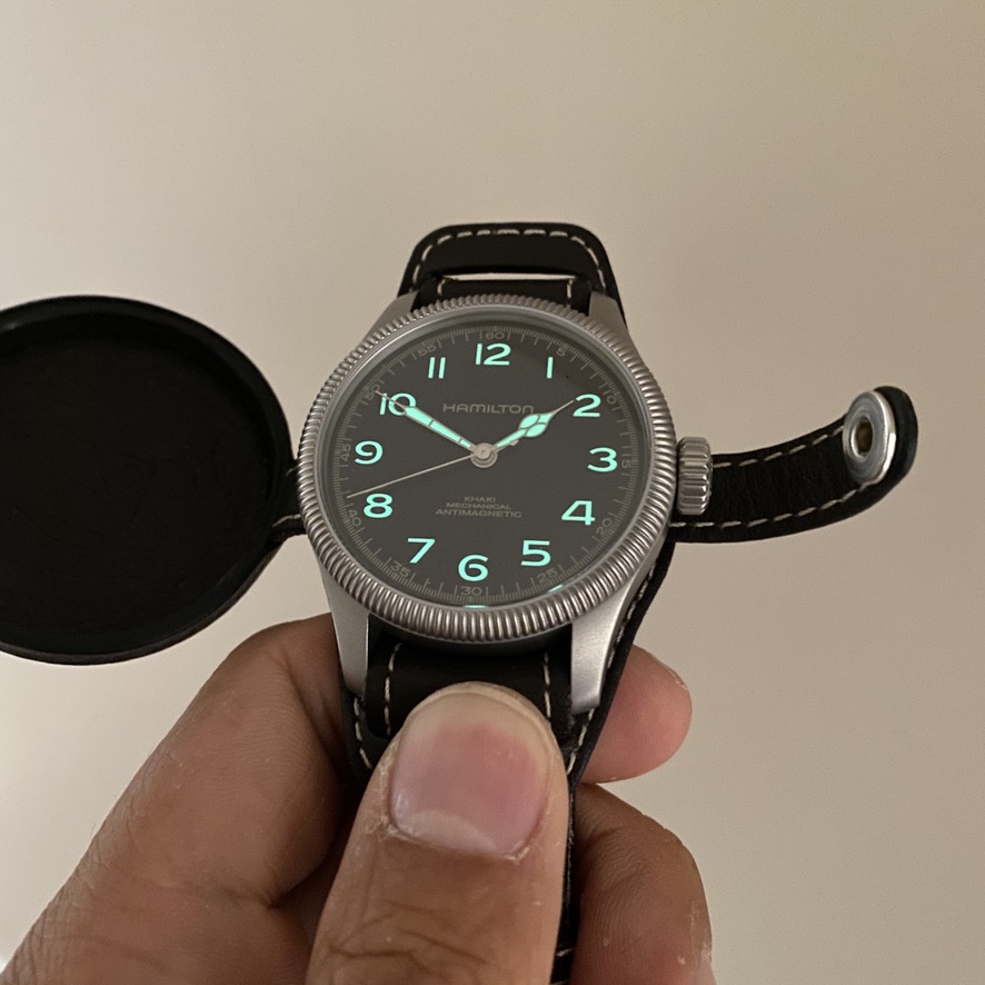 ·Bought this little guy about 2 years ago. I wanted a Interstellar watch and this was the closest thing back then. I really liked it but it is simply too big for my tiny wrist. It is pretty cool all the numerals are lumed. It comes with Hamilton box, manual and blank warranty card. Asking $300 plus shipping.