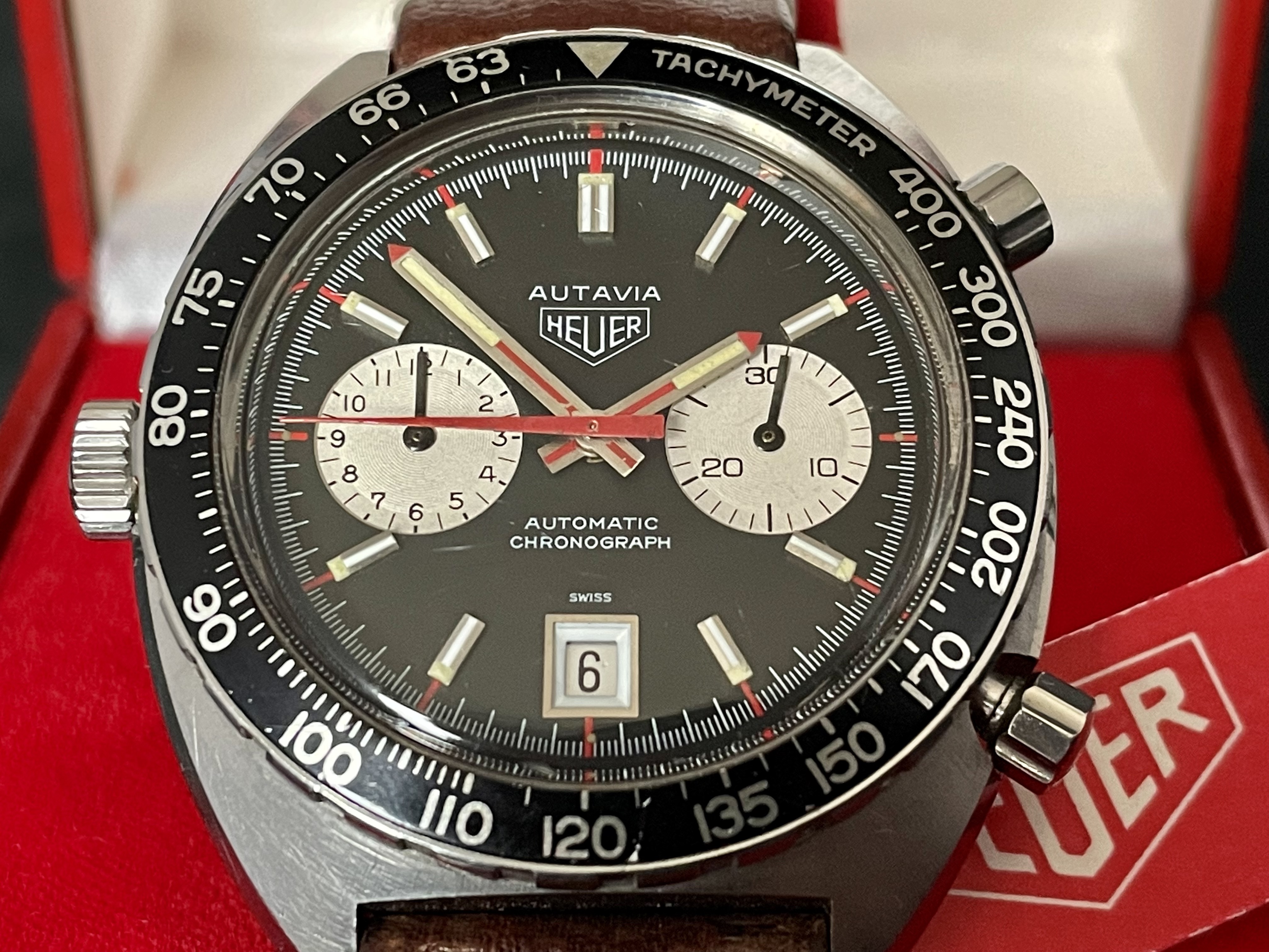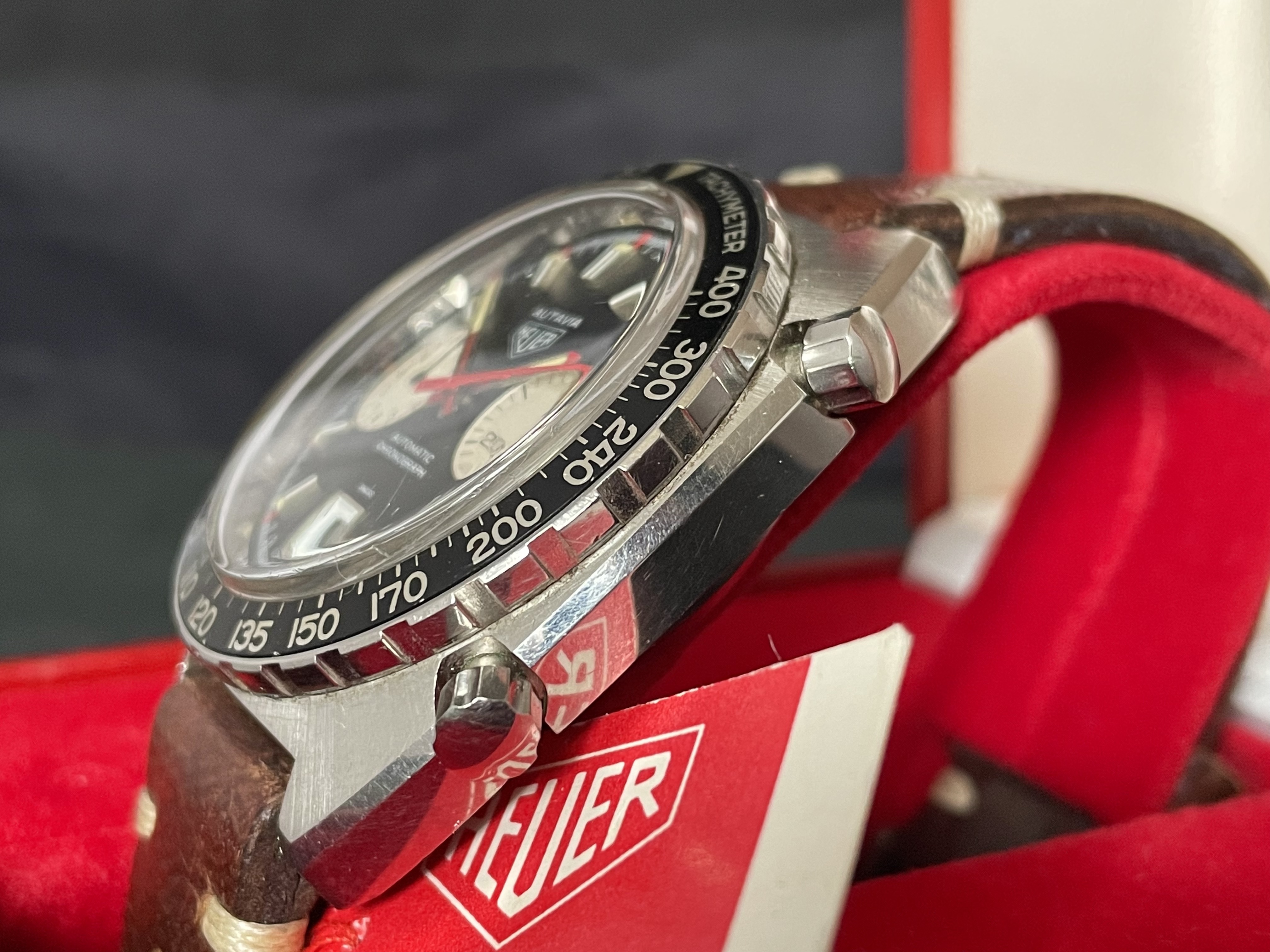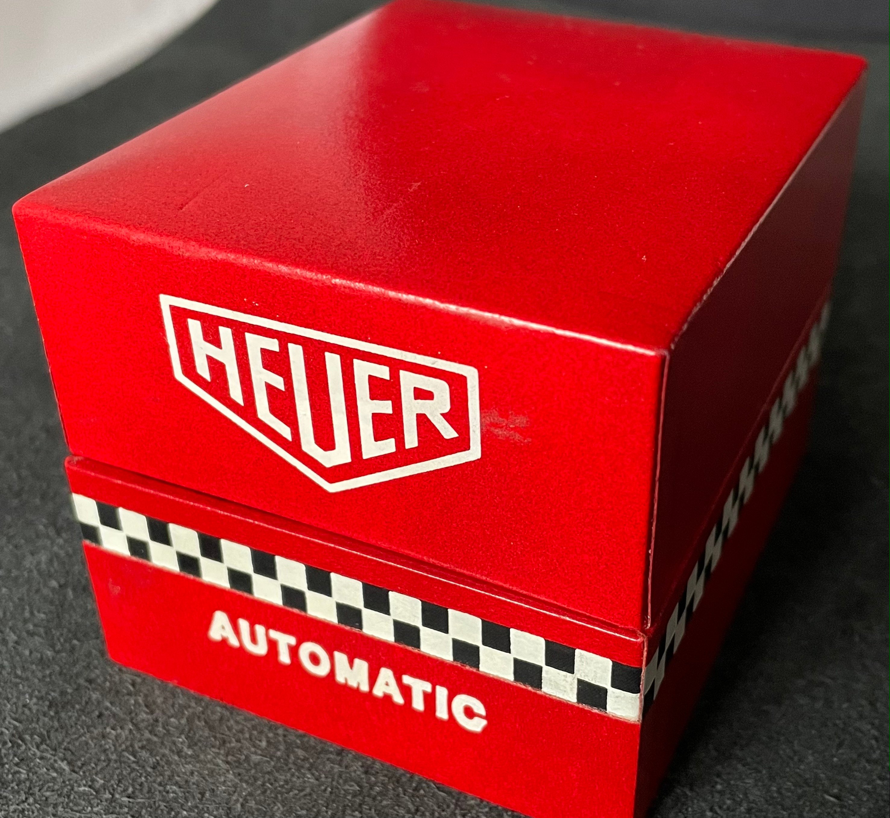 The Heuer comes with the well-known Automatic racing Box and an original Heuer buckle.