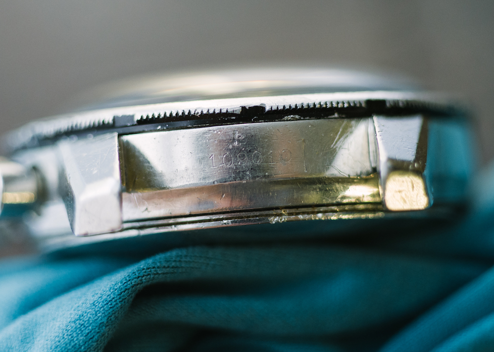 The reference number and serial number are clearly visible between the lugs and shown in the images below.