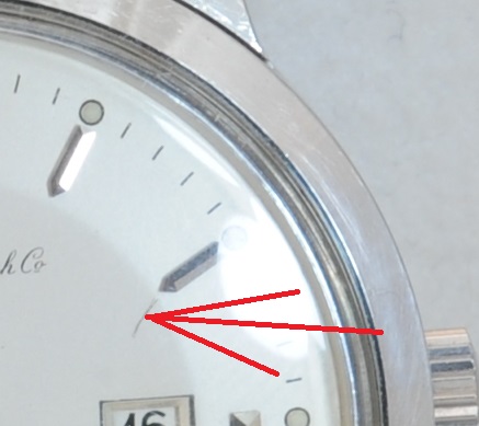 Dial: Flawless. And a piepan! There are two tiny pieces of hair on the surface one is outlined and near the 2:00 marker, the other at the 43 min. marker. I was unable to capture them in detail on the photos but under loupe it is apparent that they are tiny filaments (hair?) that are not embedded in the lacquer and that can be easily blown off when your watchmaker services it.
