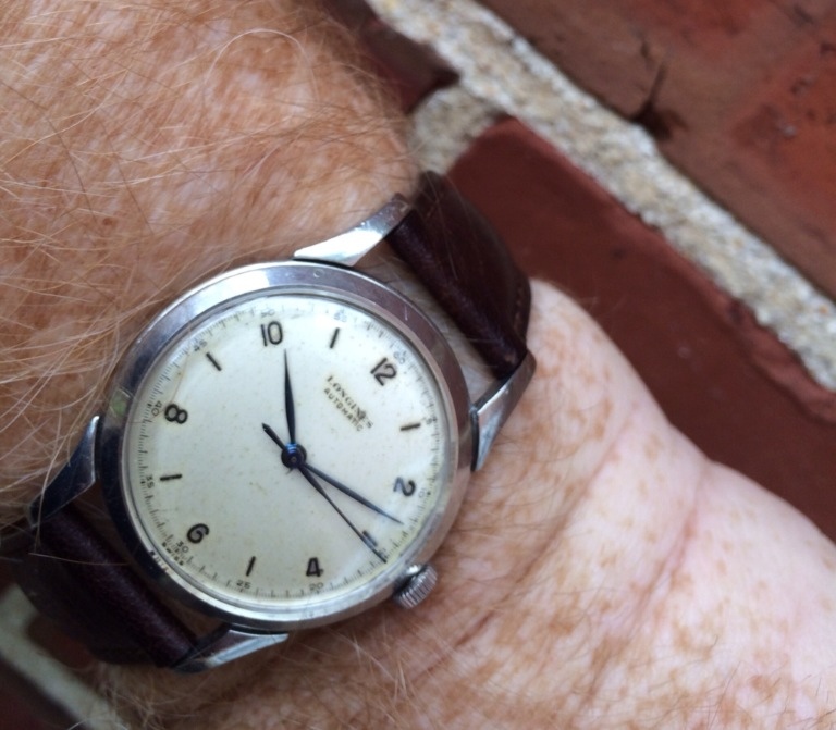 Solid stainless steel case has 45mm lugs so wears a bit bigger than its 34mm diameter suggests
