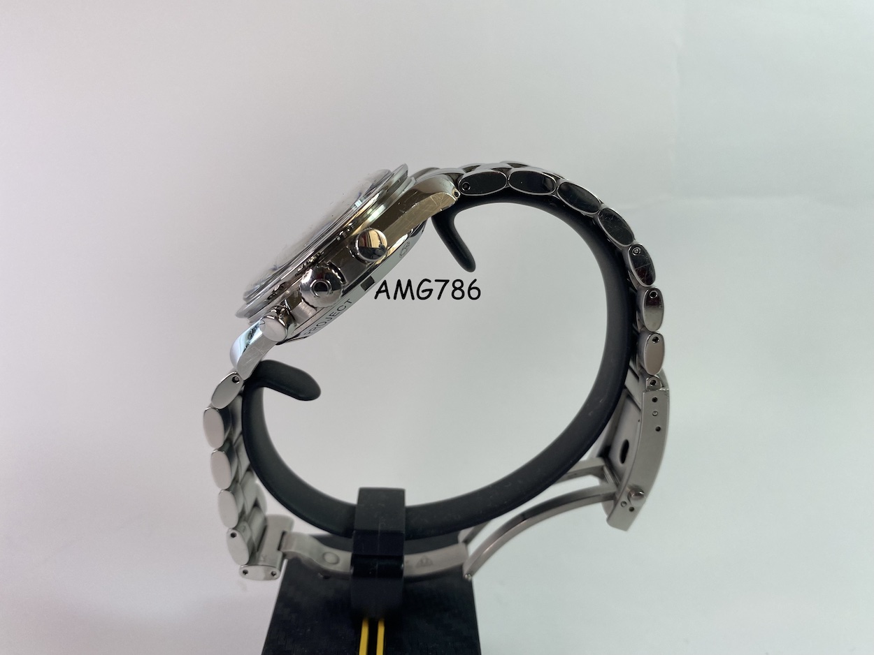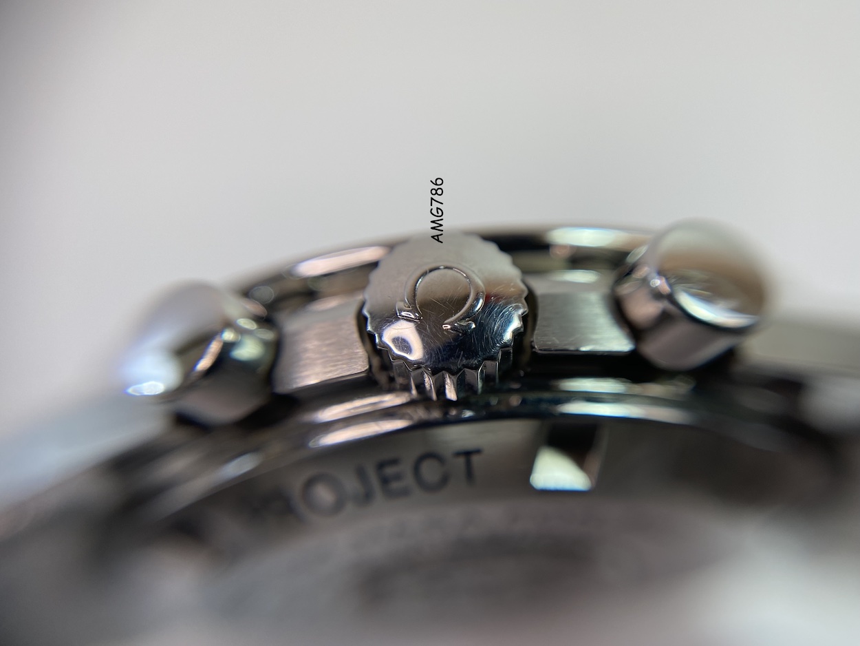 Famous manual-winding chronograph movement. A descendent of the calibre that was worn on the Moon. Rhodium-plated finish.