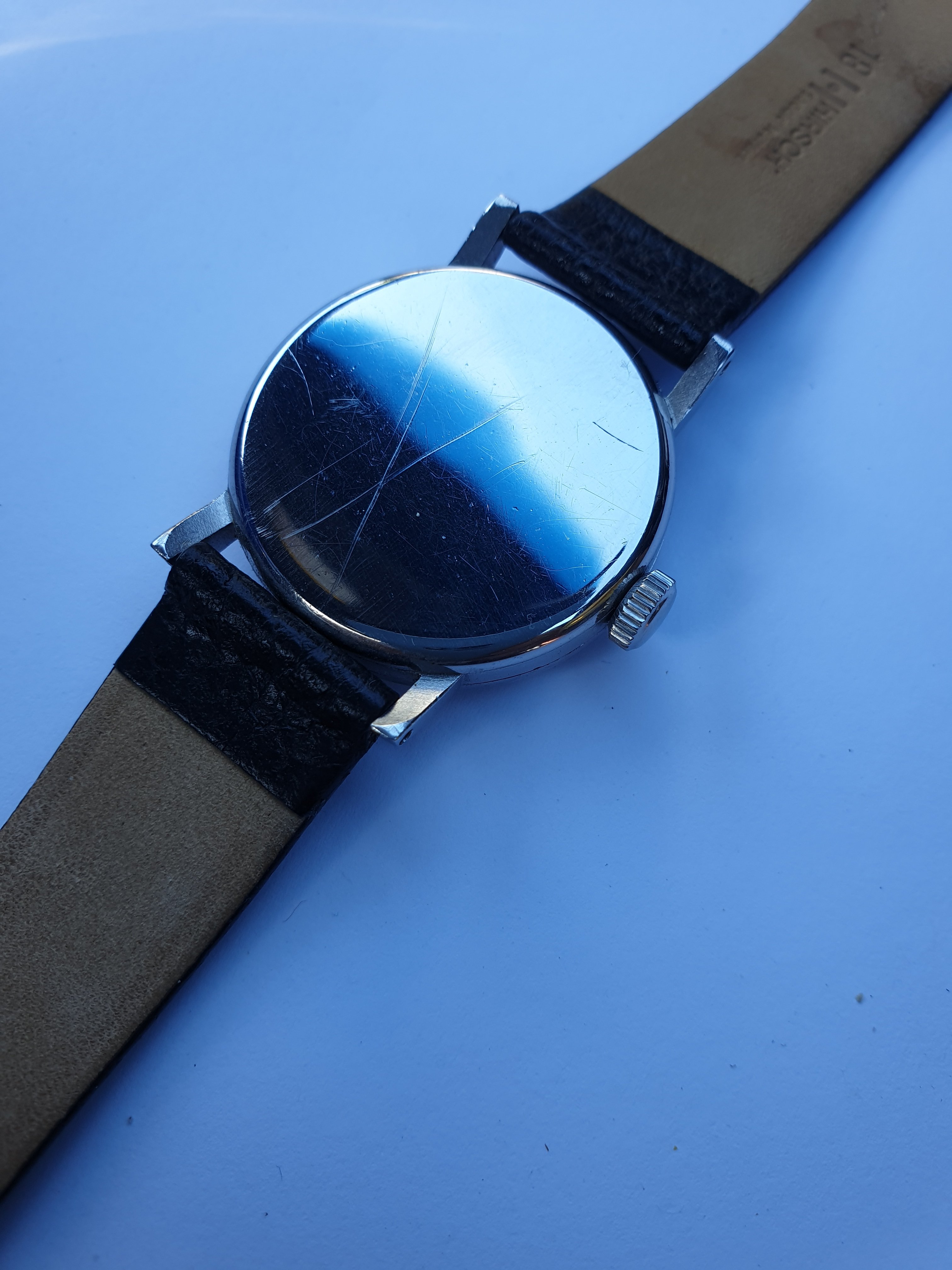 The watch has a very nice clean movement and running very strongly. The case is around 33 mm excluding the crown which could be a replacement and is also in good condition.