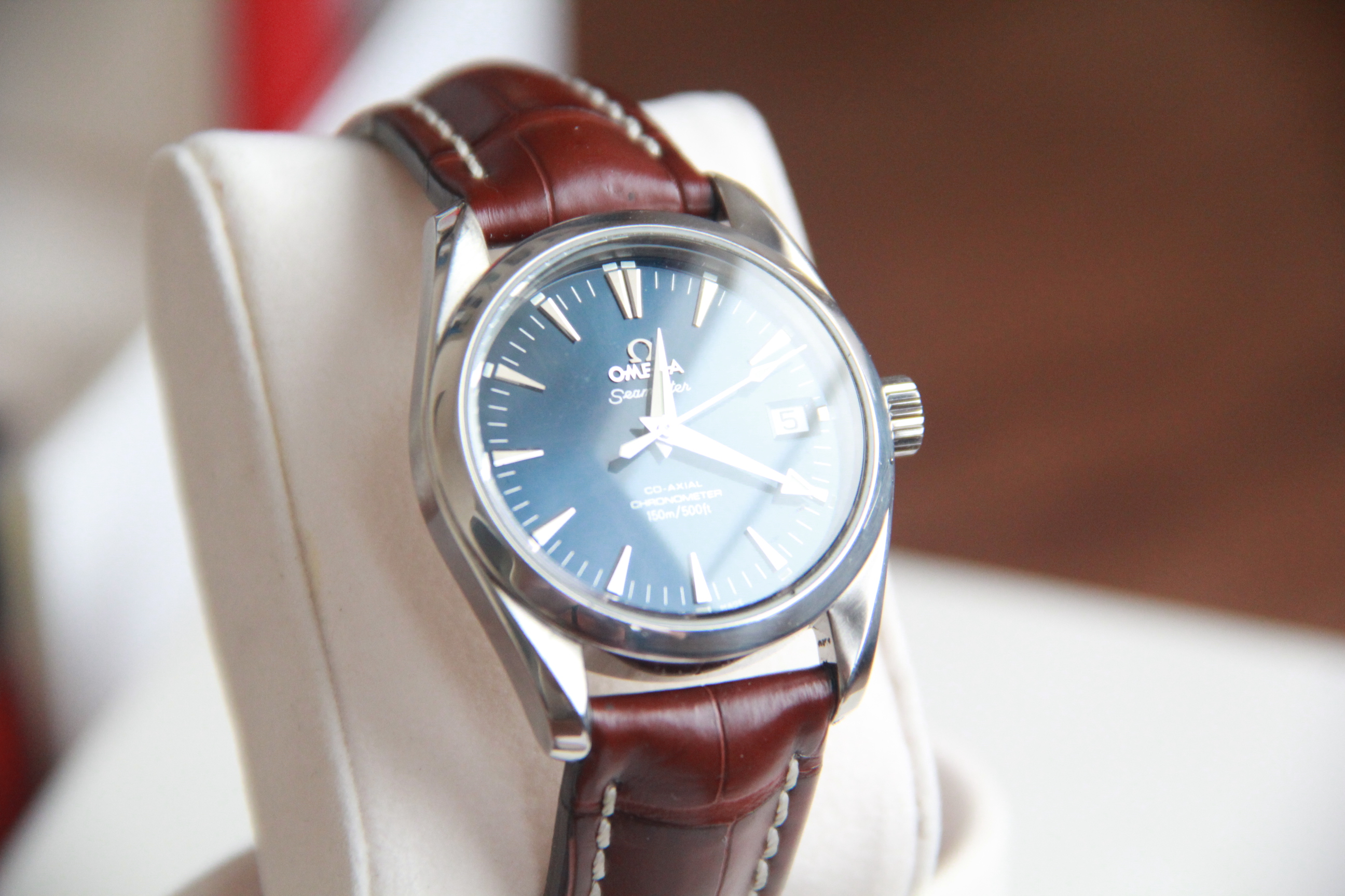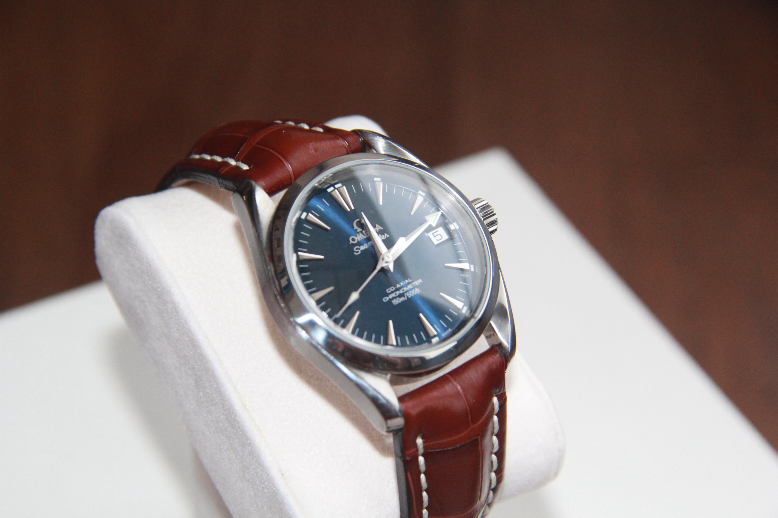 ·Omega Aqua Terra Co-axial 2500, 36mm case, Blue Dial , ref; 28048037 ( rare) Purchased in 2011. Box and papers available , sapphire crystal. Has a scratch you need to look closely