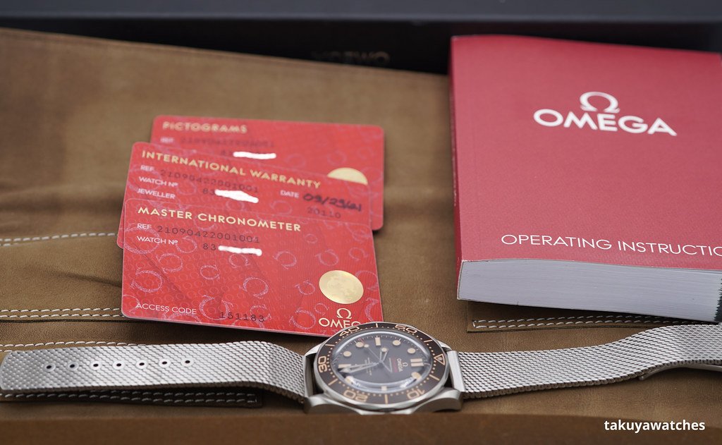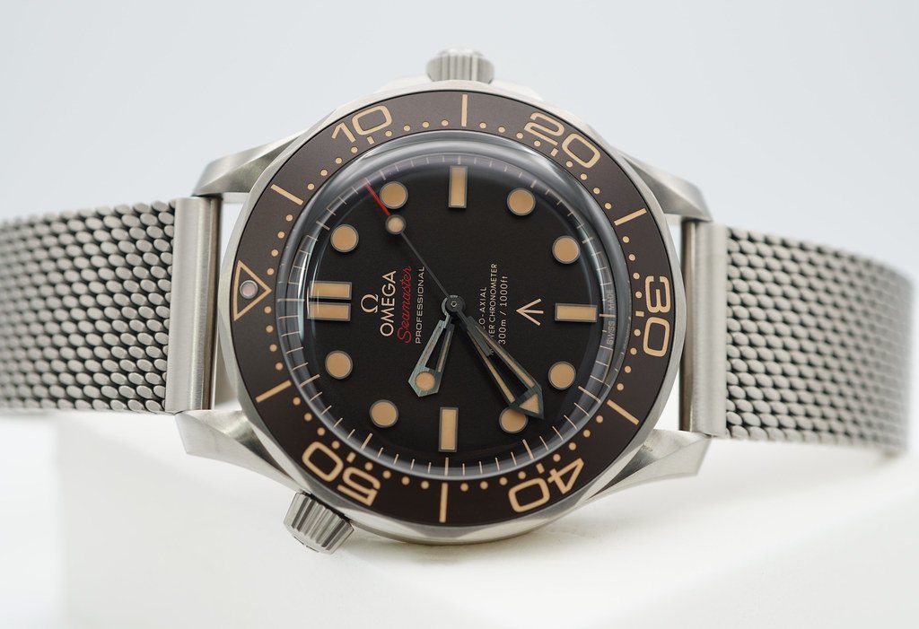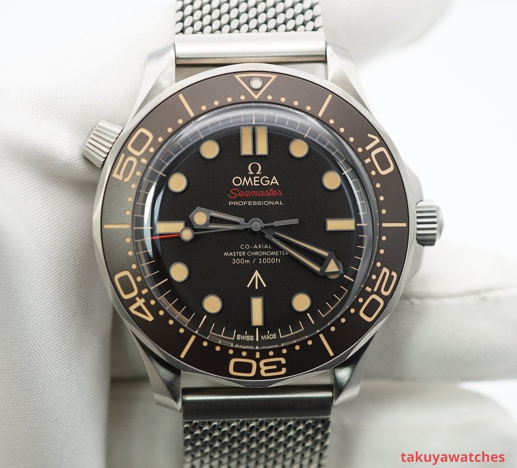 A Mint, Unpolished Condition & Very Cool 42mm Omega Seamaster Diver 300m 007 James Bond ” No Time To Die ” Edition. Grade 2 Titanium Case (Strong & Lightweight) on Titanium Mesh Bracelet, Beautiful Dome Sapphire Crystal with Brown Tropical Aluminium Bezel and Dial. Omega Co-Axial Master Chronometer 8806 Movement with 55 hours Power Reserve. Purchased from Omega USA Authorized Dealer in 09.2021. Watch Running Perfect with Non Issues. Full Set & Under 5 Years Factory Warranty.