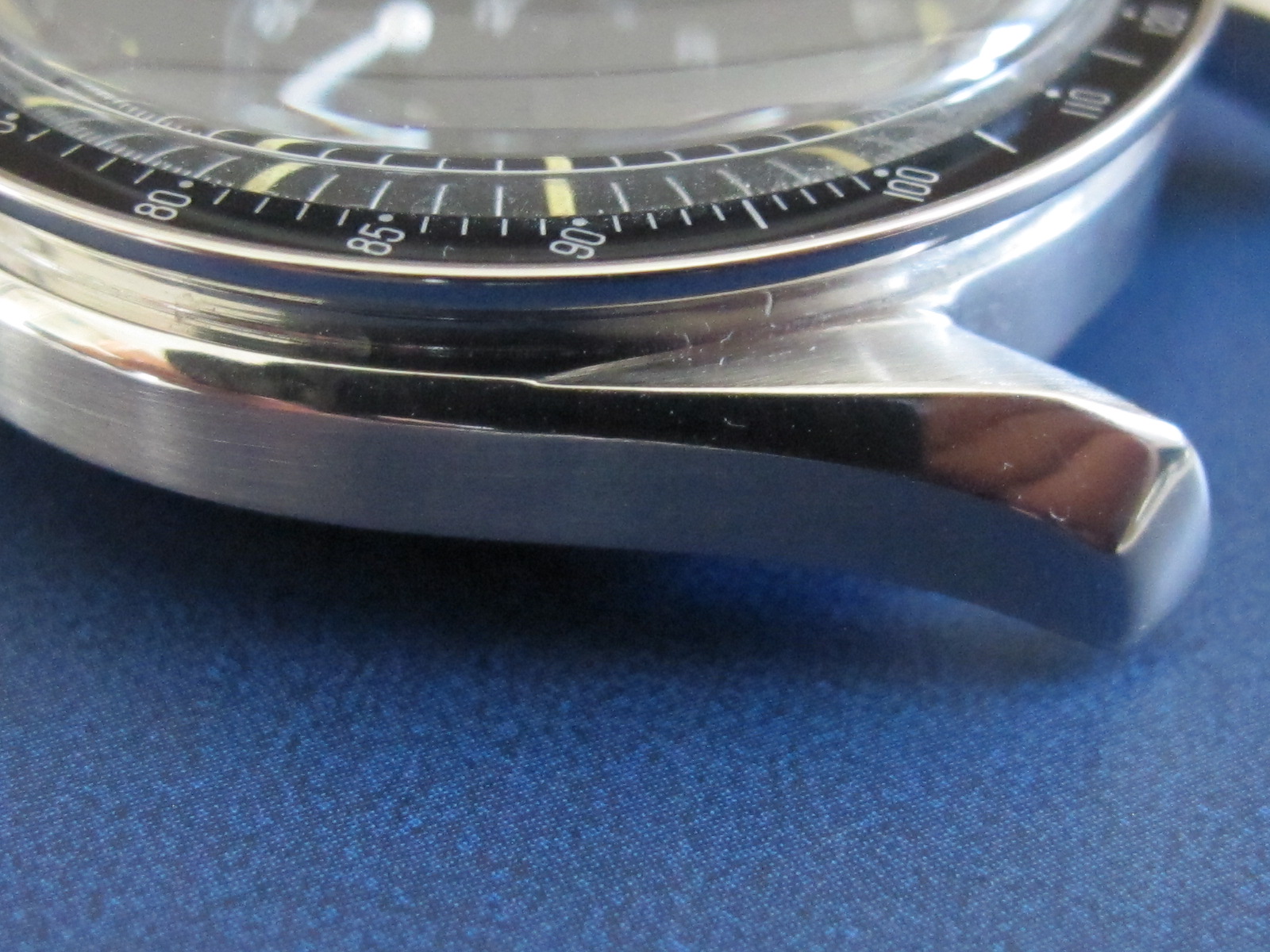 - Stainless 42mm steel case, likely carefully polished over the years, shows well retaining strong and even signature twisted lugs. There are no dings on the case.