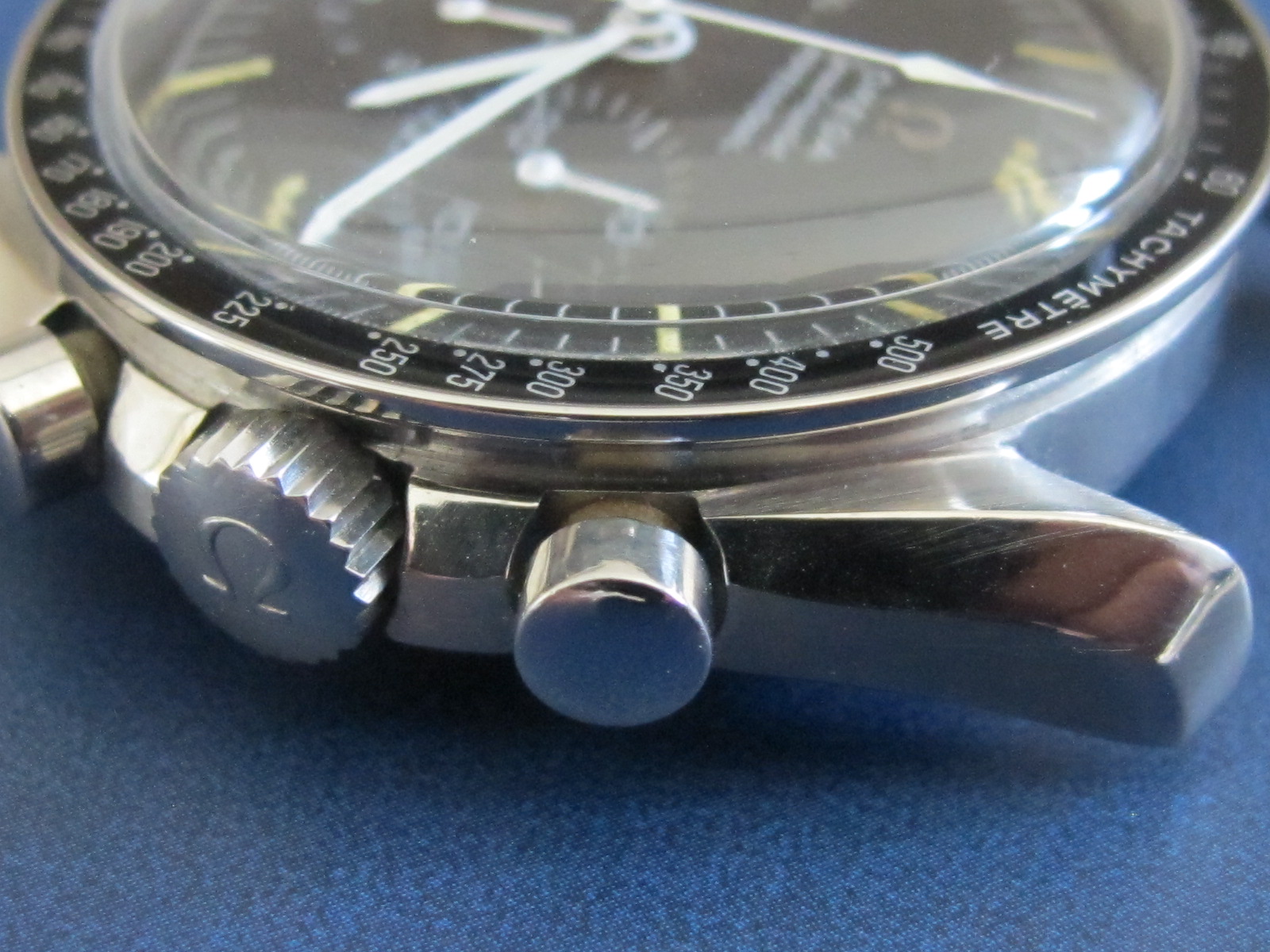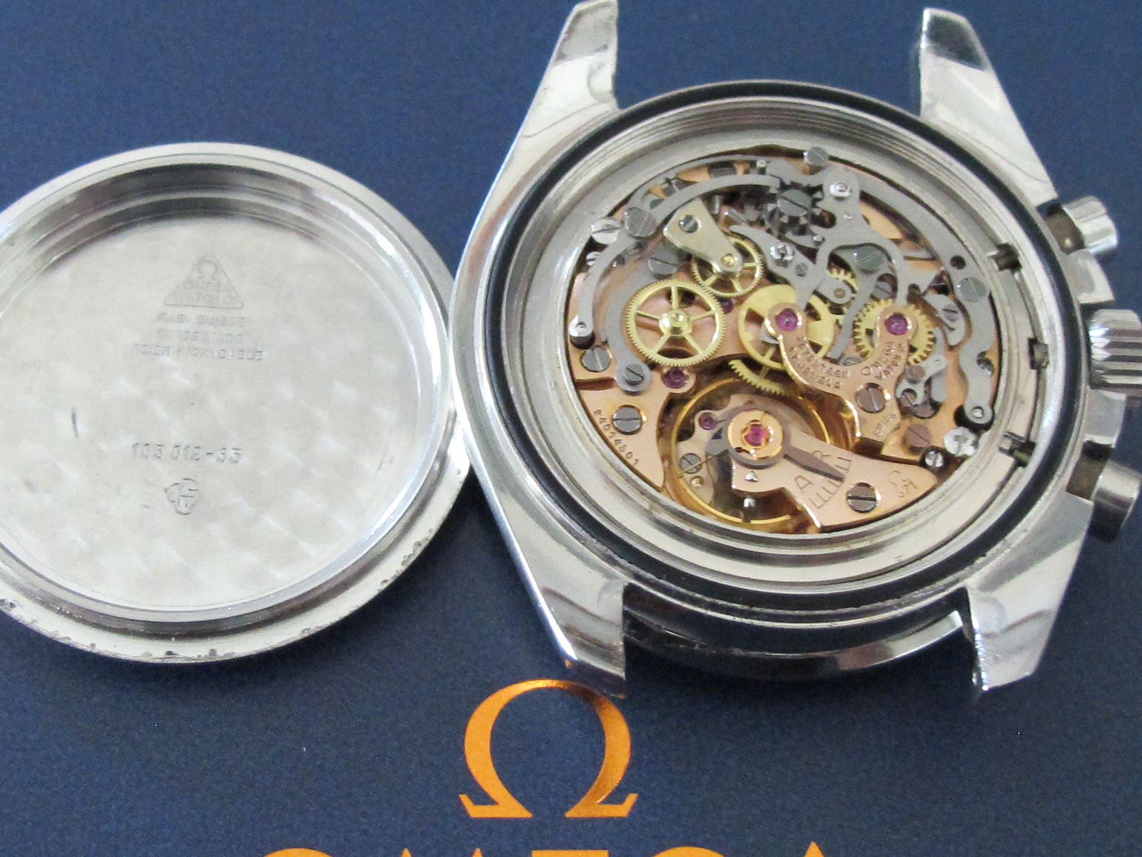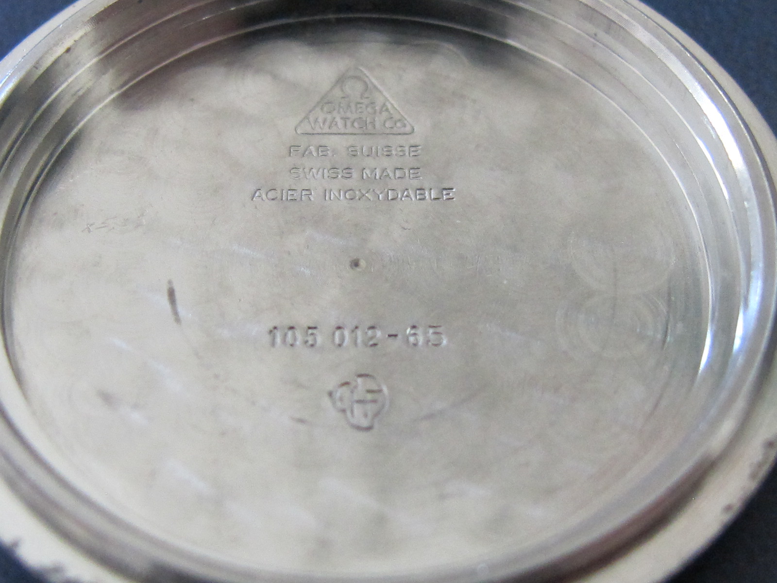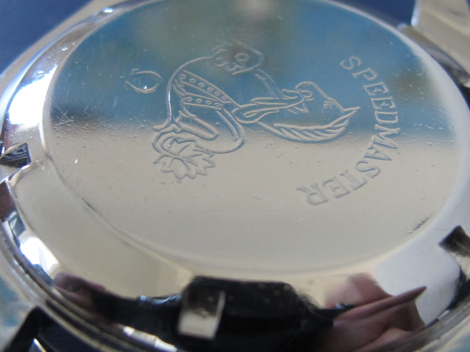 - Caseback is double-stepped and in very nice condition with prominent Seahorse and "Speedmaster" text. The inside caseback is marked “105 012-65” with HF stamp. Dust cover is included.
