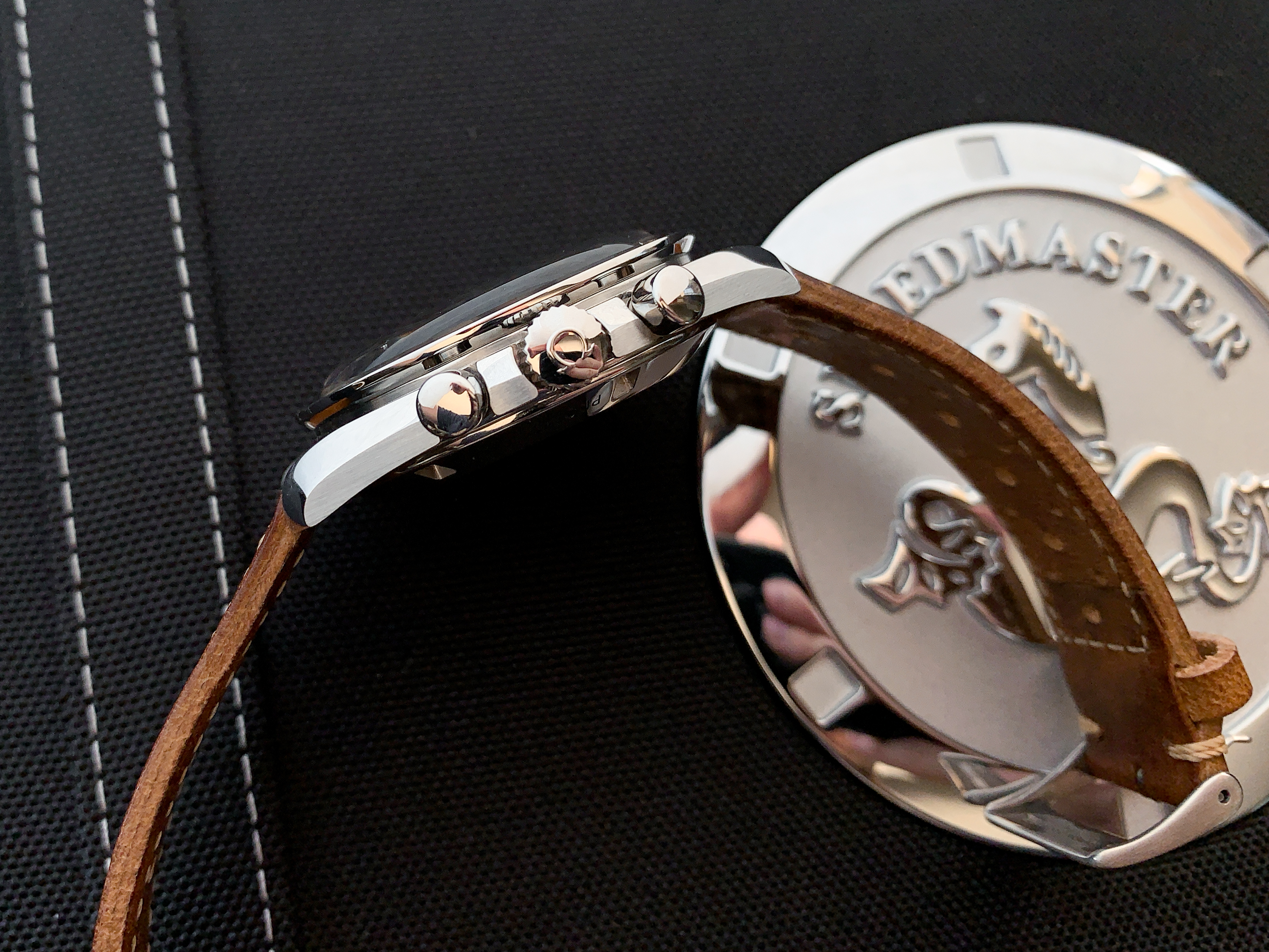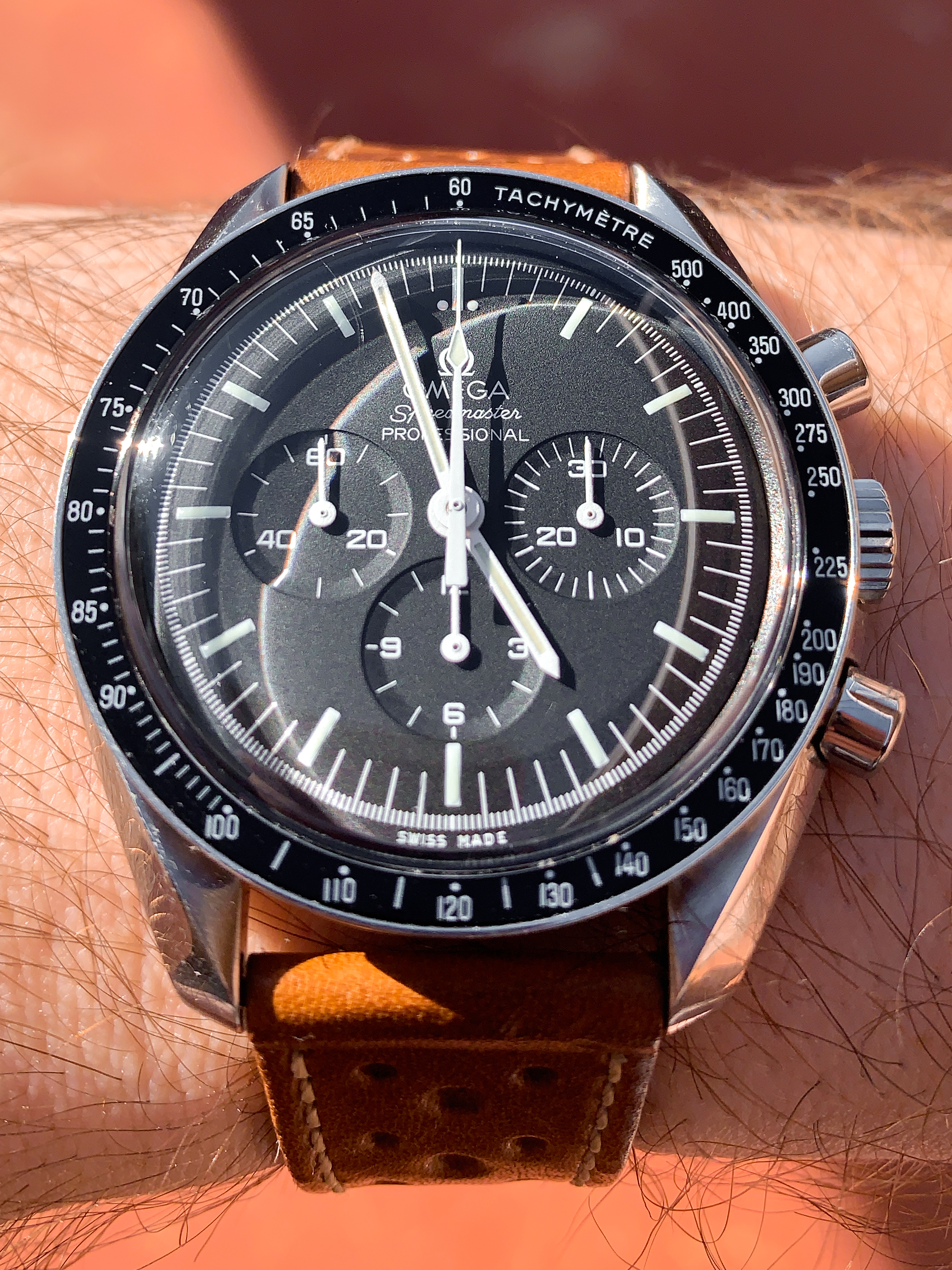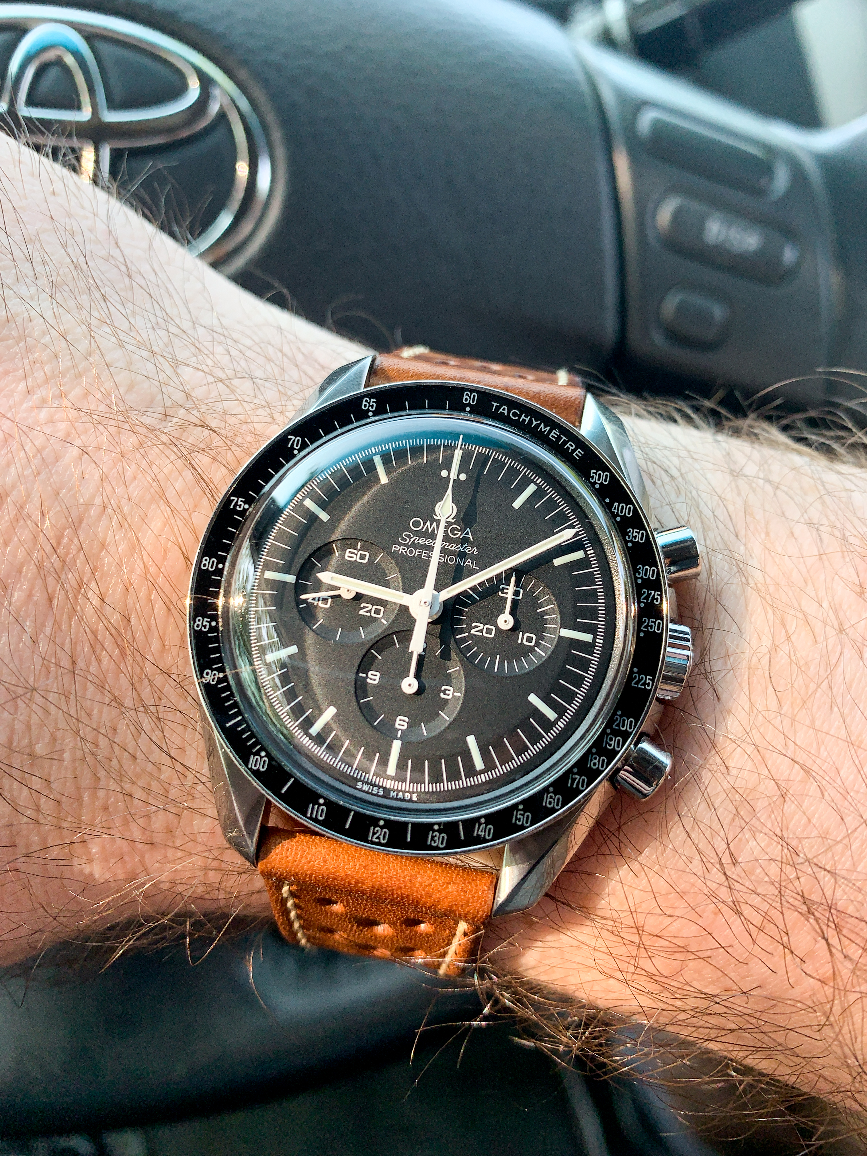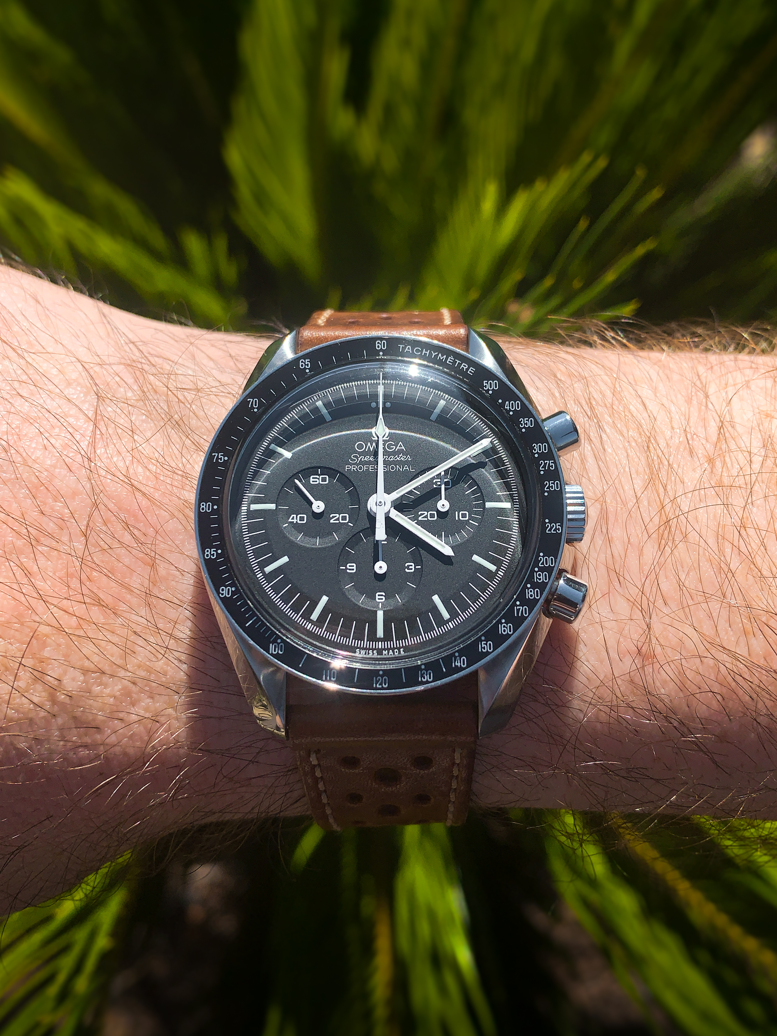 For sale is a modern 2020 Omega Speedmaster Professional 311.33.42.30.01.001 with box and papers. I bought this watch brand new but to be honest didn’t connect with it. The warranty card is dated 04/28/2020. Soon after I bought the watch I sold the OEM alligator leather strap and OEM Nato but those are the only two original items not included. Everything that is shown in the listing is for sale. What’s included is the watch, full grain leather racing strap, new unused full grain leather strap, OEM Nasa nato, new unused Haveston white Nasa nato, OEM loupe, OEM spring bar tool, OEM spring bars (one set holding the leather strap on and one set in the bag), price tag, manual, card holder, pictogram, international warranty, brown exterior box, exterior box, and suitcase box. The box is in excellent condition as, as soon as I took the watch out, the box was stored away in a closet.