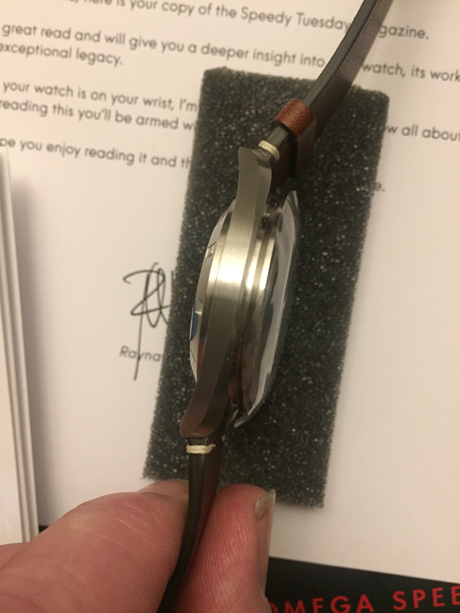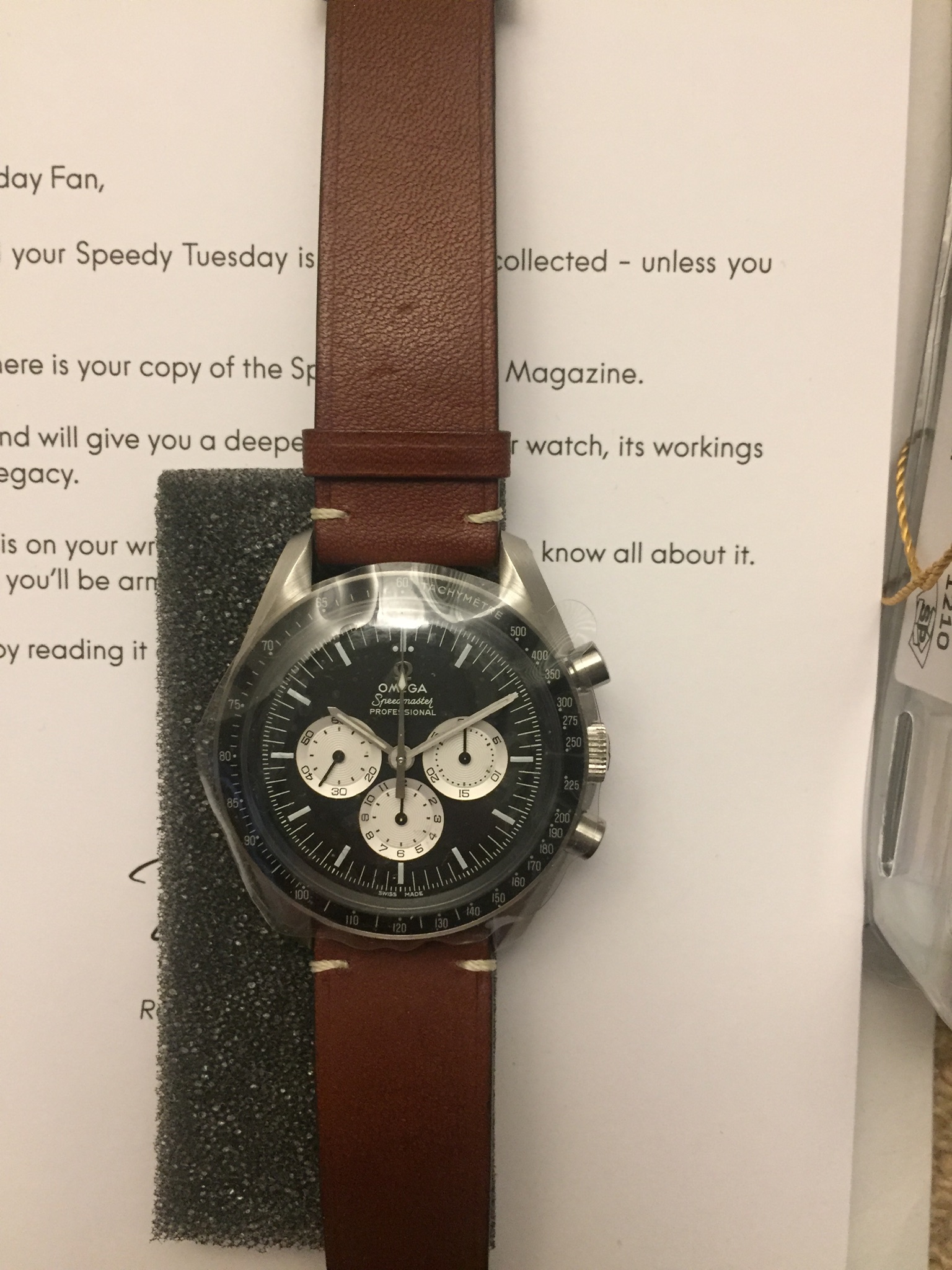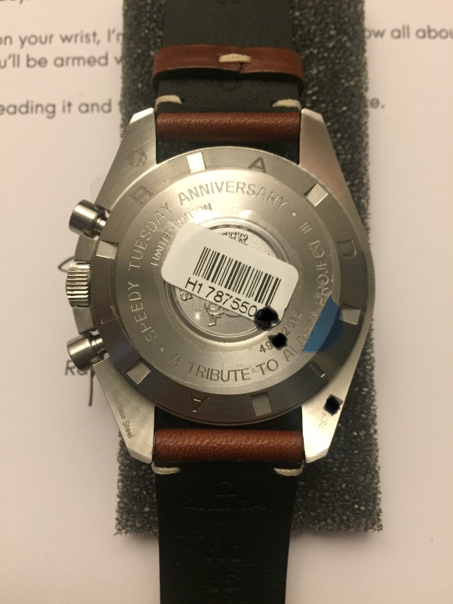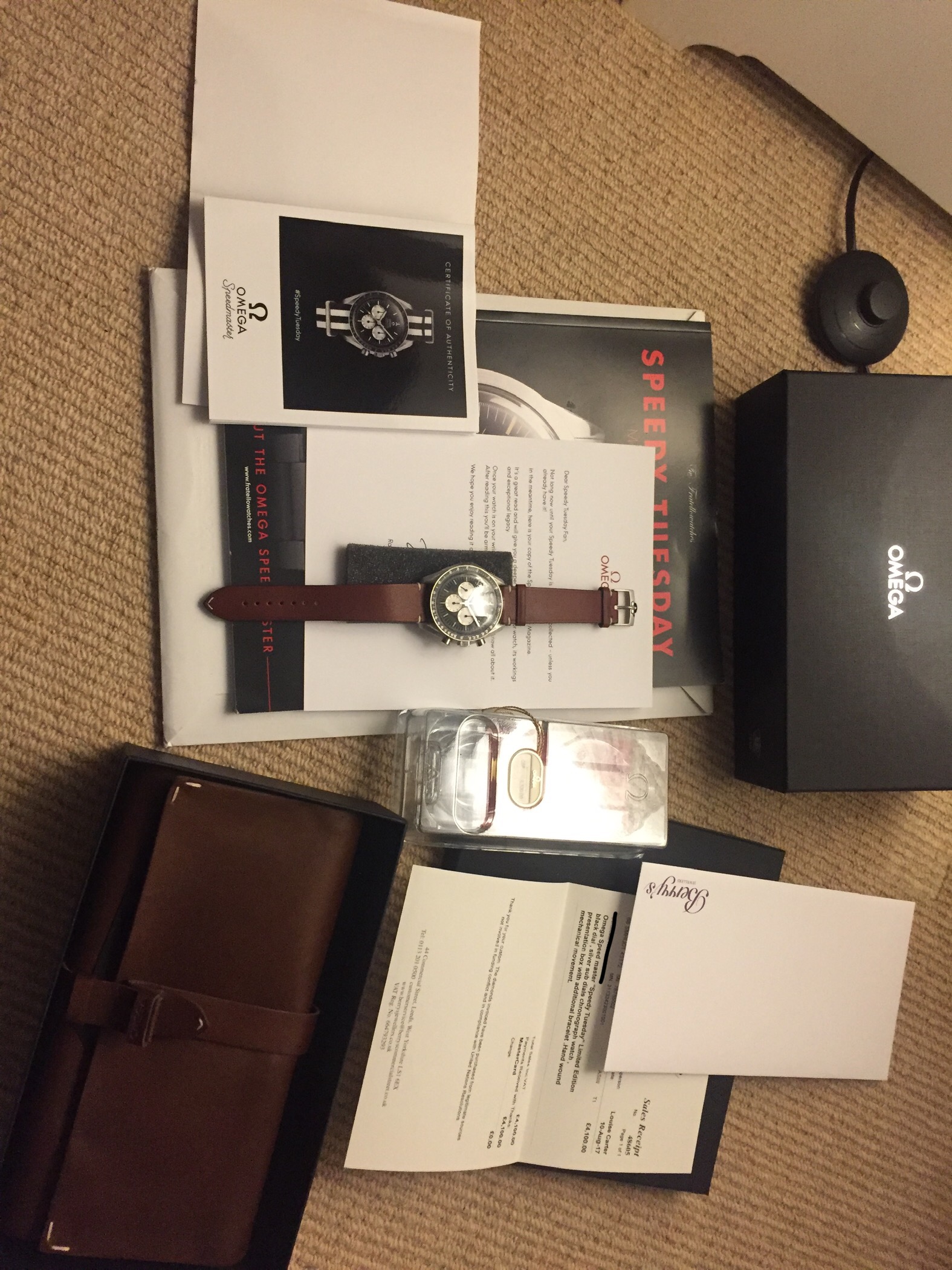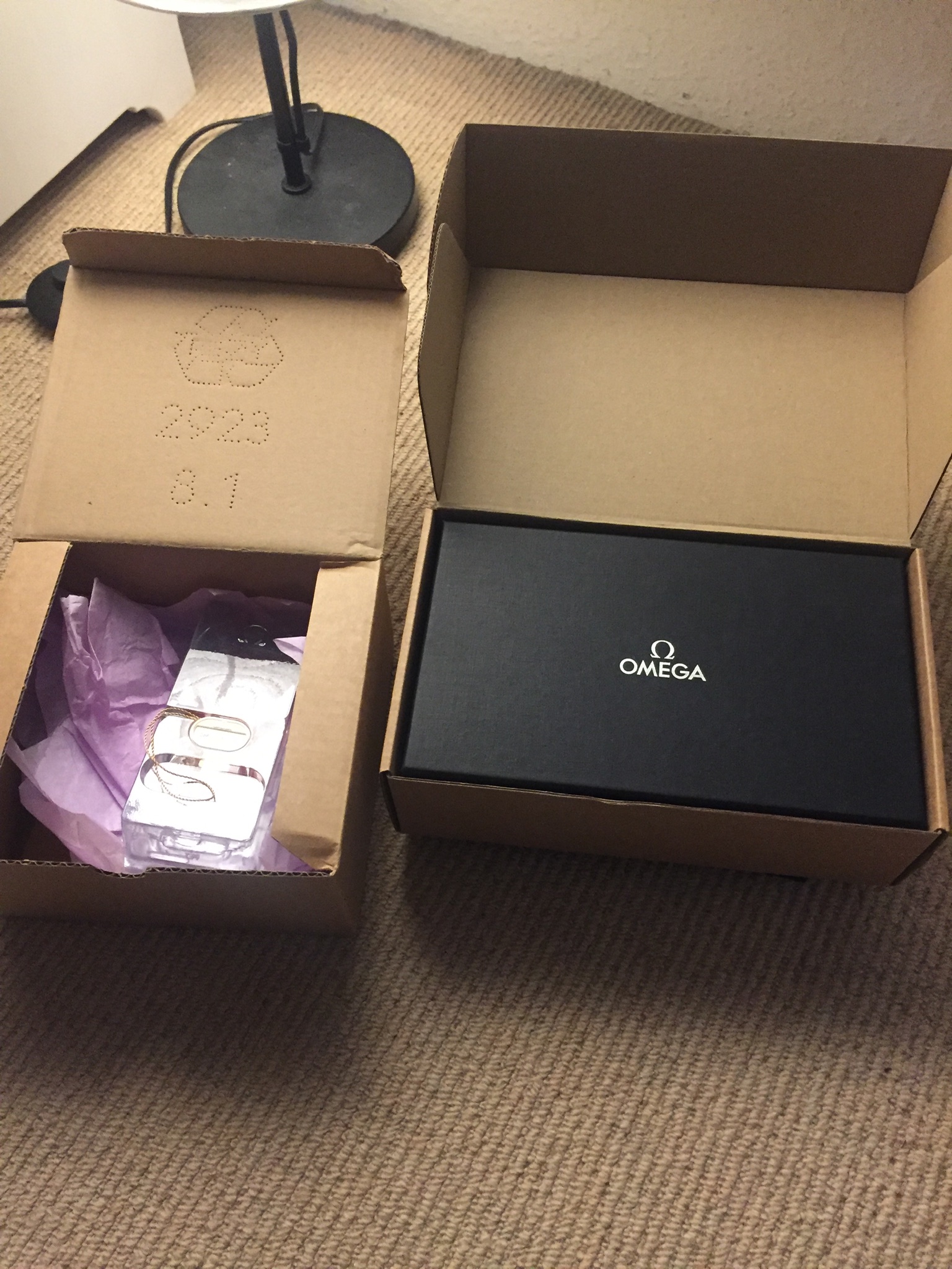 I purchased this watch from an Omega Boutique in August 2017. It has never been worn, not even tried on. All stickers are present and in place. Naturally it is a full set with everything present. It includes the plastic coffin and the outer buff coloured box too.