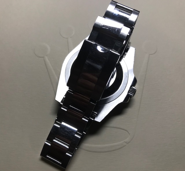 Comes with guarantee card and holder, service manual, green swimpruf tag, red chronometer tag, instruction booklet, service guide, green rolex box and beige rolex outer box.