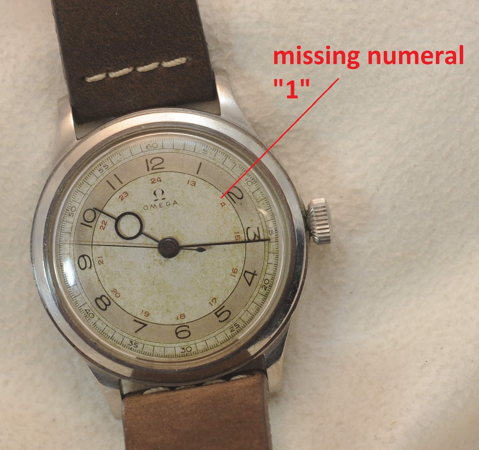 Dial: stunning with lovely and even patination. the one flaw is the missing numeral 1 at the 14 position. see pics.