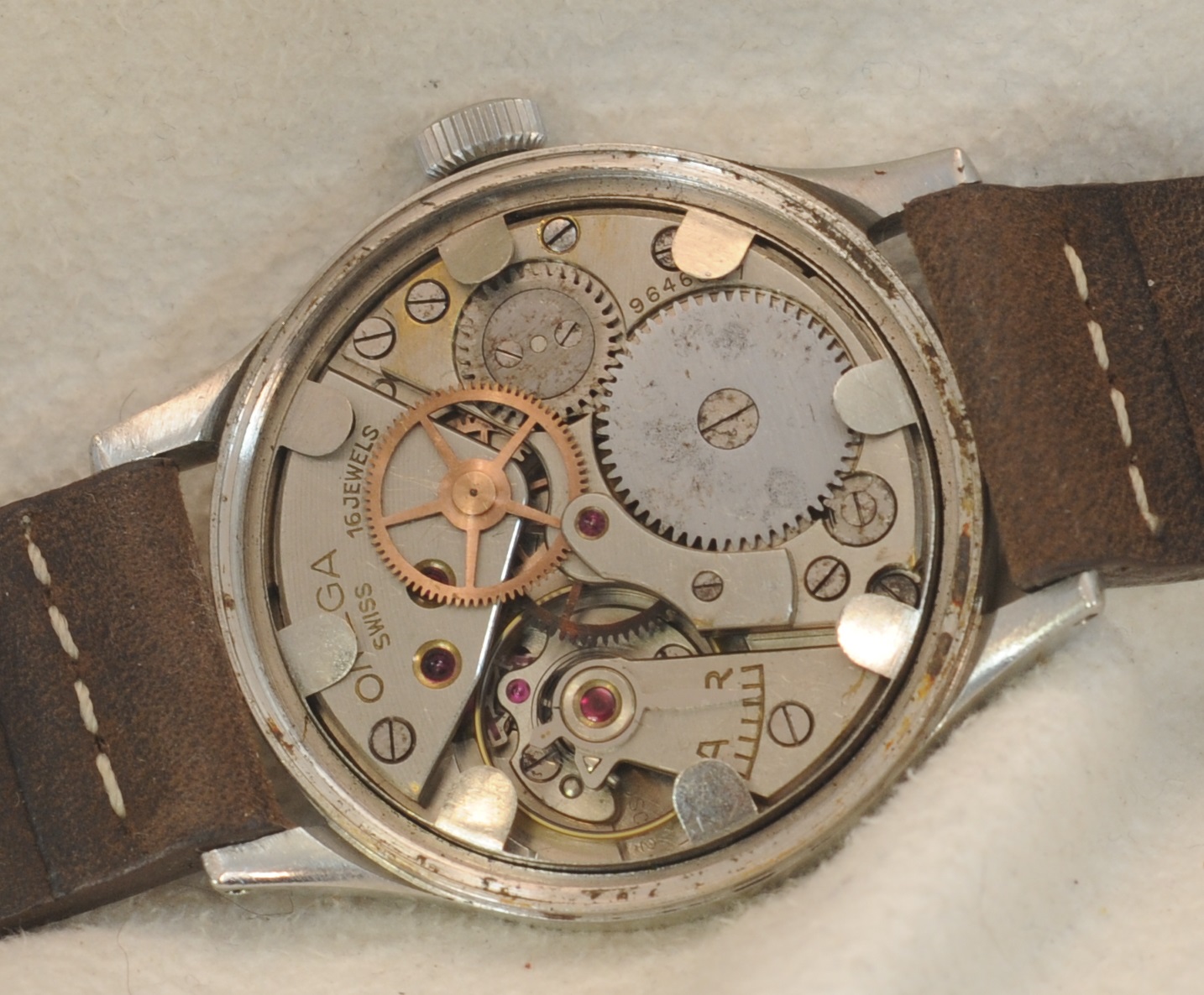 “Moisture exposure, rust, oxidation on the center wheel, rhodium plating are coming off, no incabloc on balance wheel so high risk on broken balance staff”