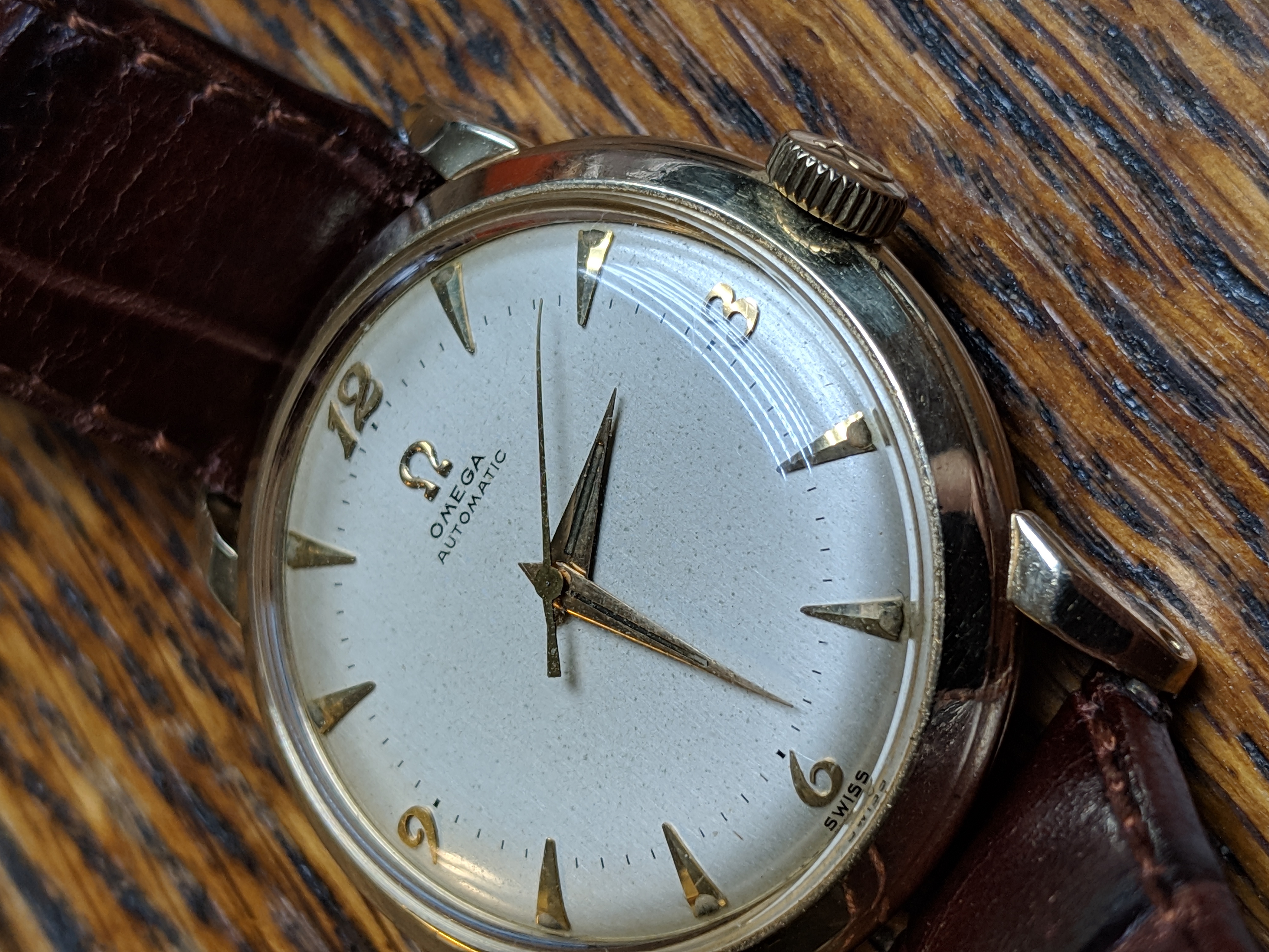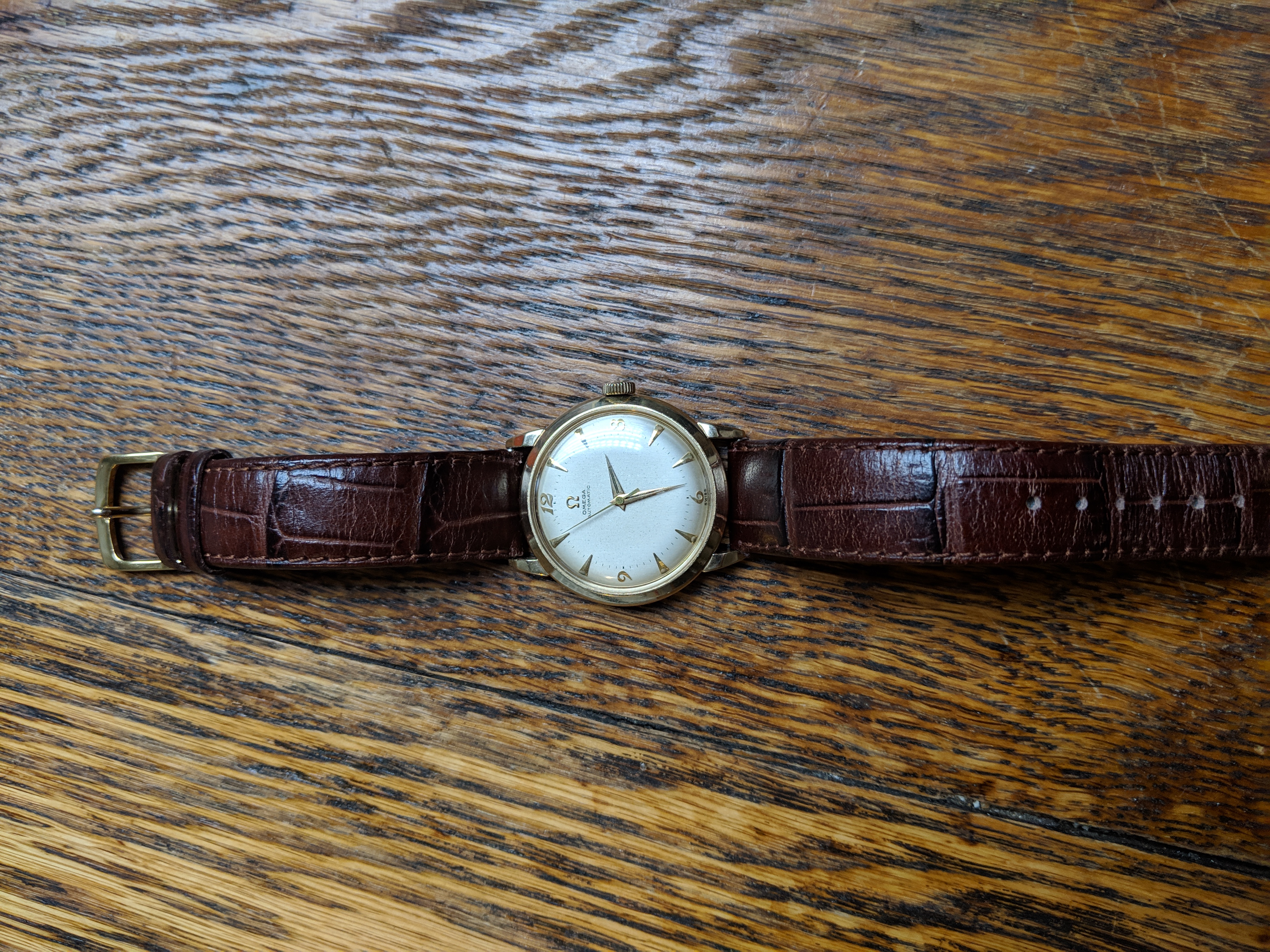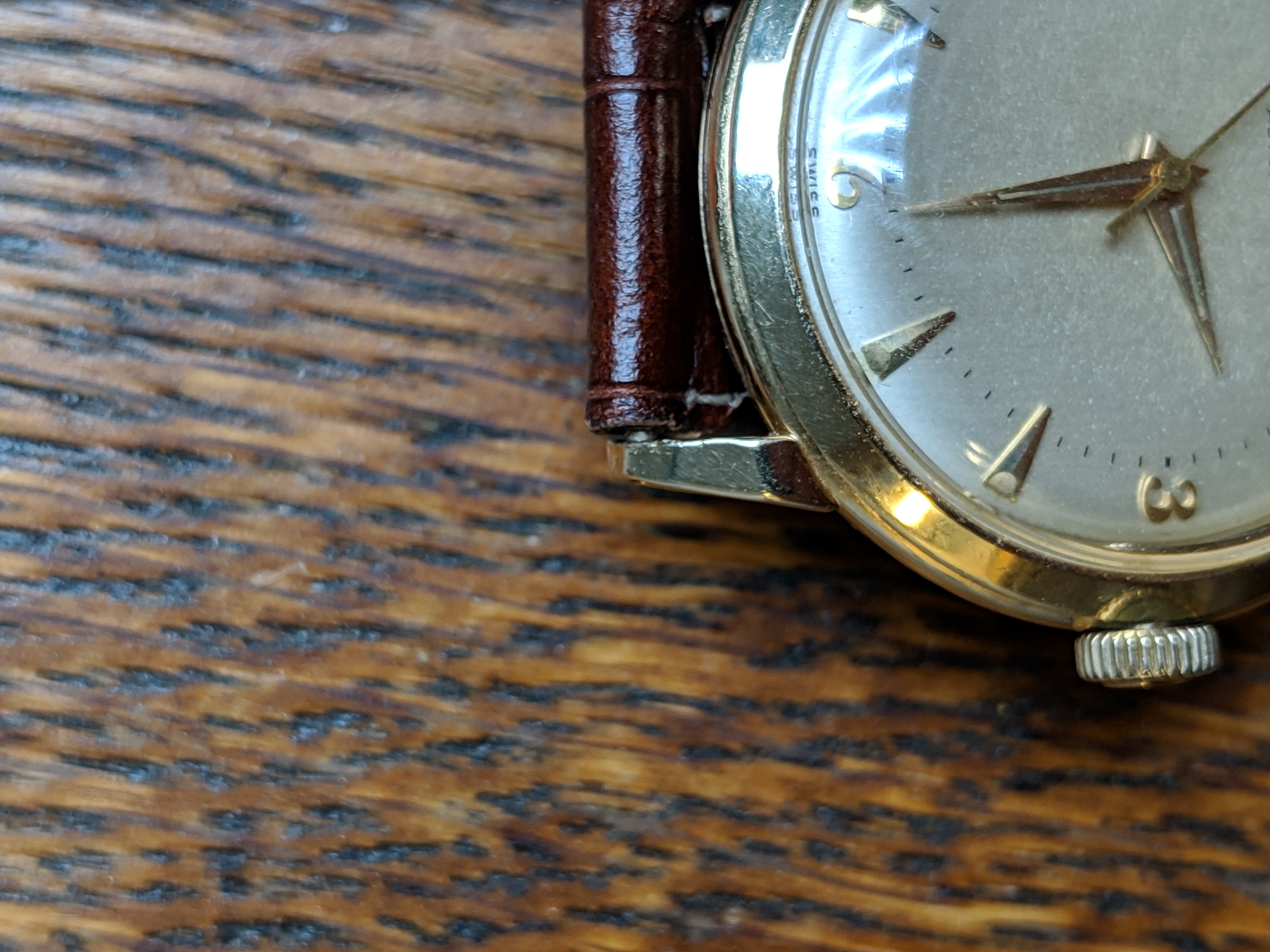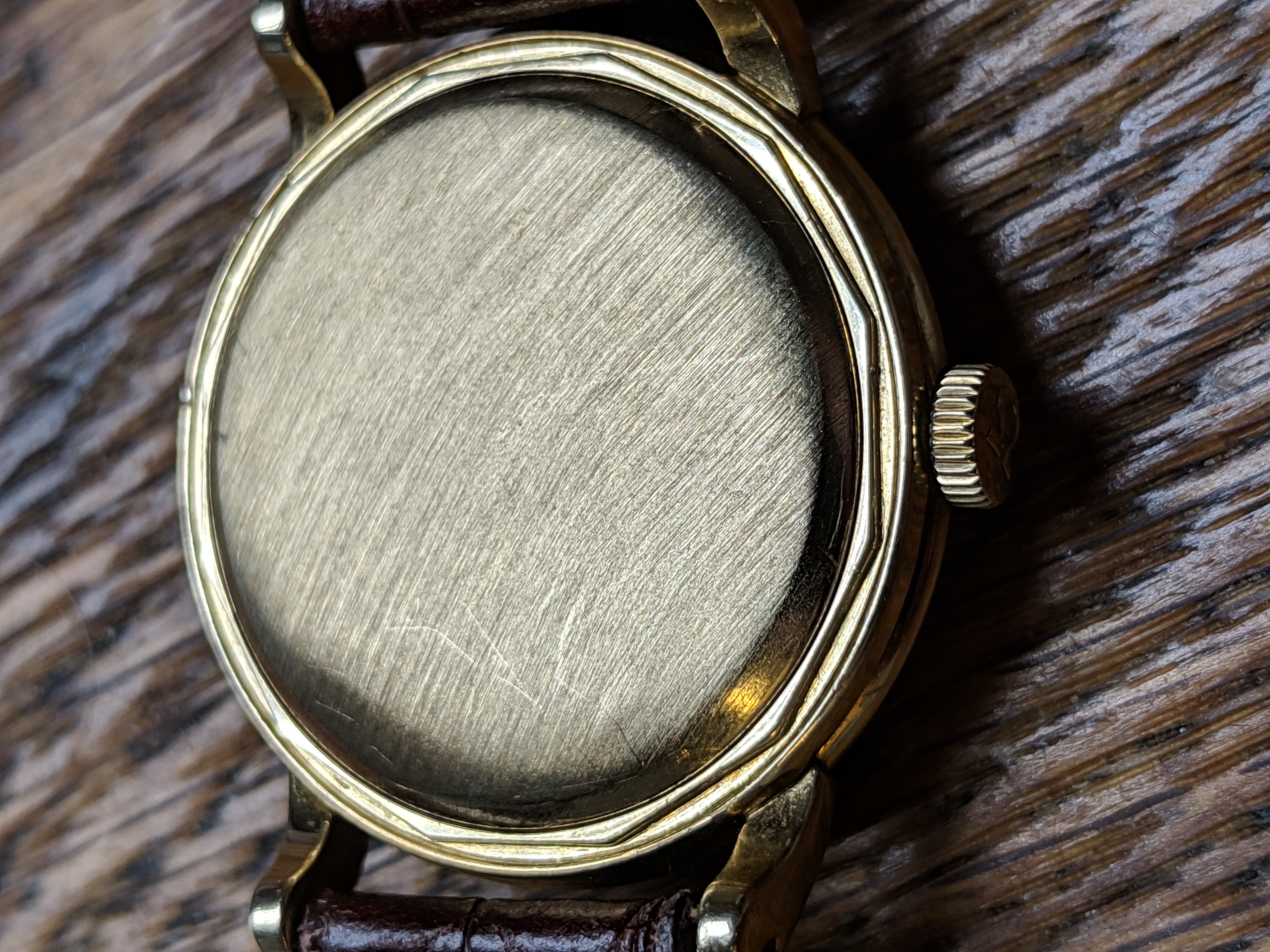 ·Very nice original condition. 14k solid gold. Wadsworth case, g6525. Caliber 351 bumper. Watch keeps good time. At the time I traded this watch, about 5 years ago, I was told that it had had a recent service. I am unable to show movement photos. Unable to find a watchmaker local that has the tool to remove the screw back. The bottom right lug does show scratches.