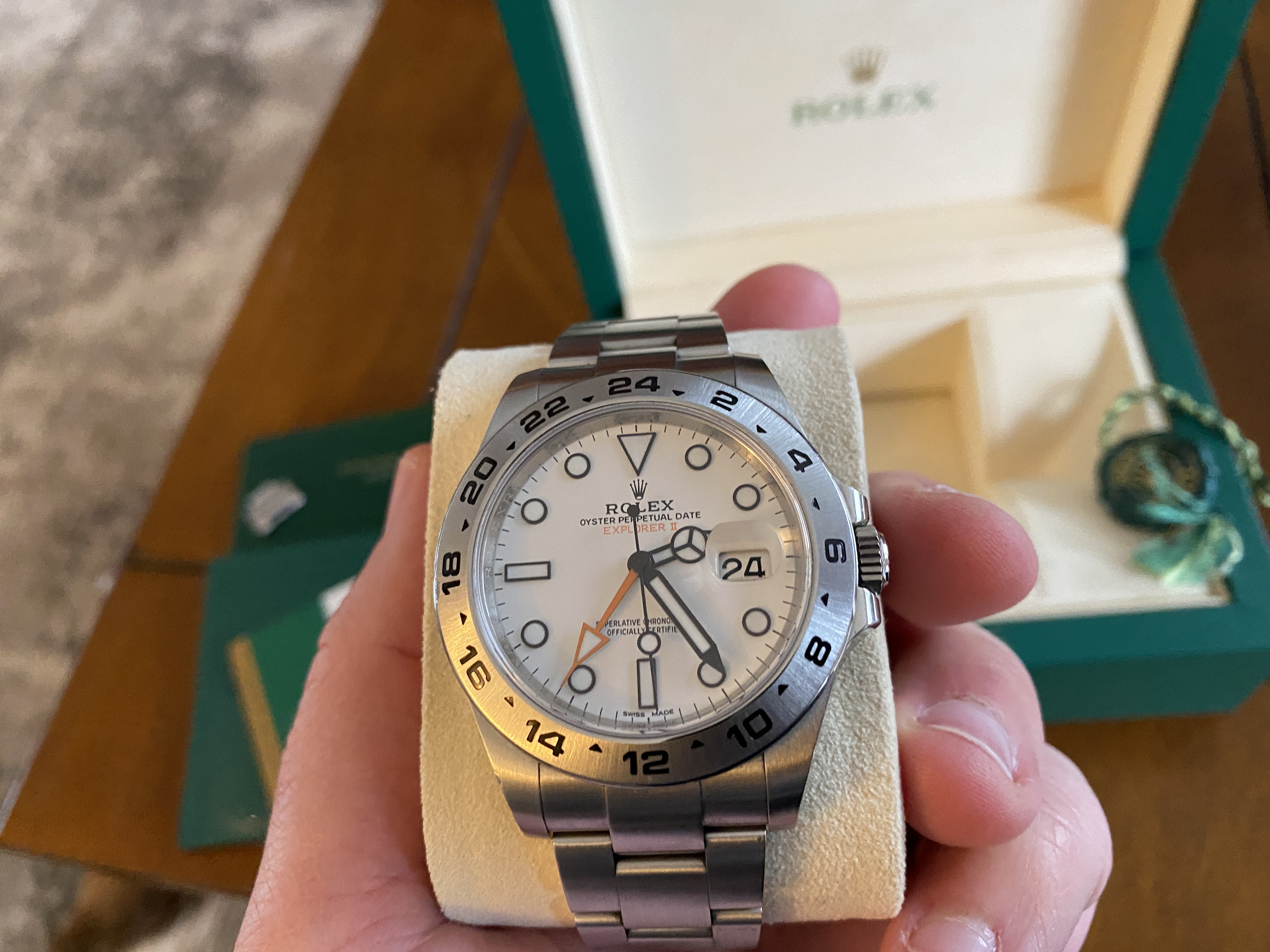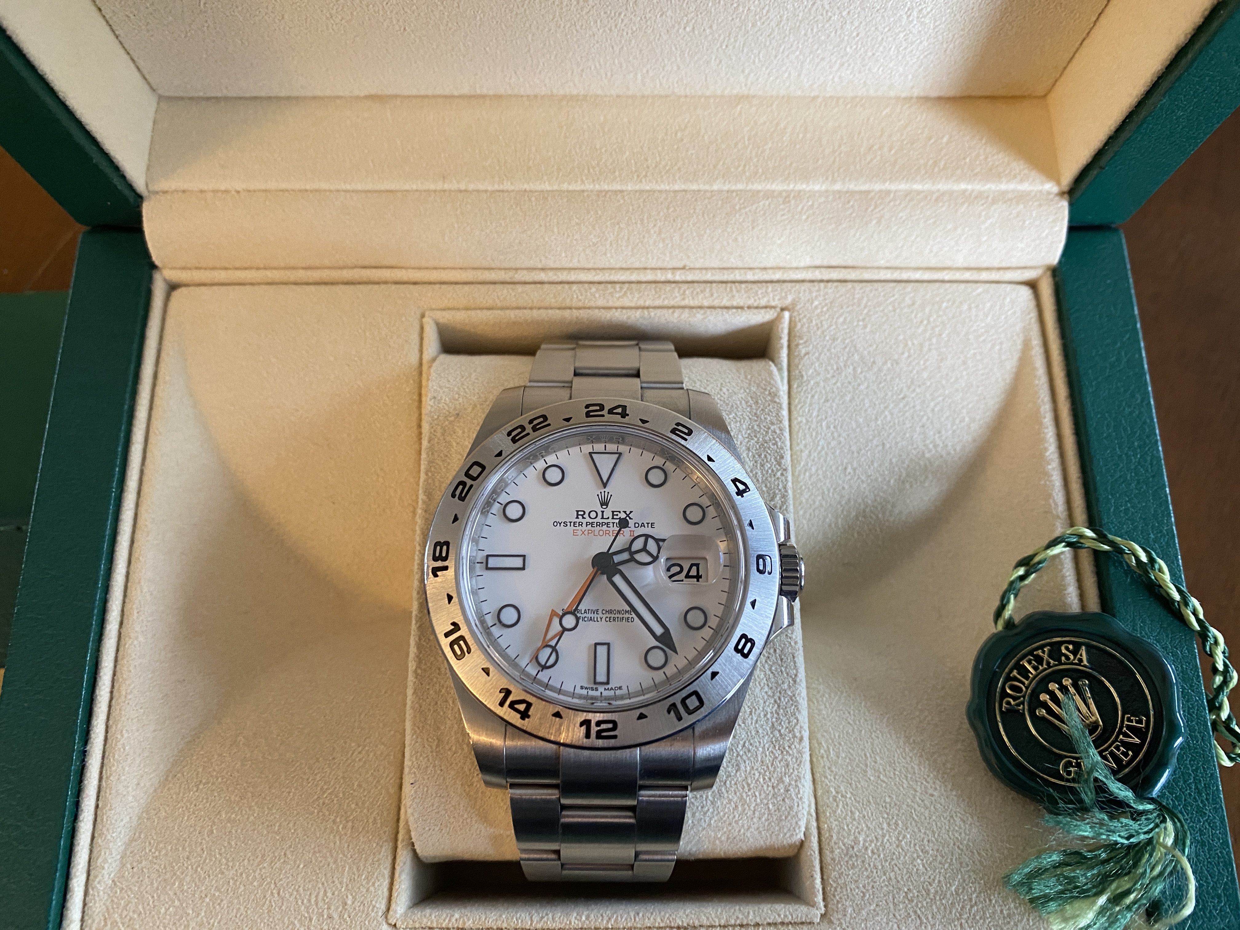 Thanks for looking. Up for sale is my Rolex Explorer II Polar White. This thing is gorgeous but alas, I need some funds, so I need to move a few pieces around.