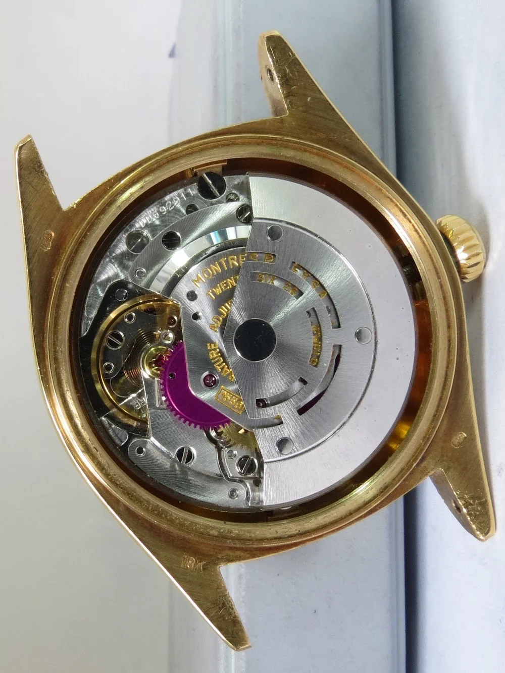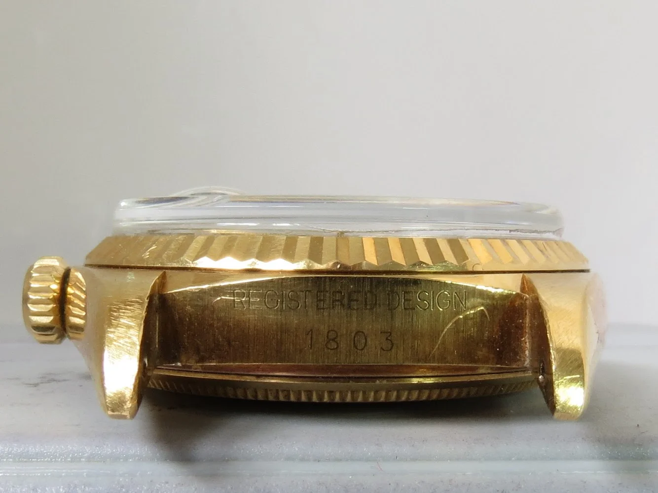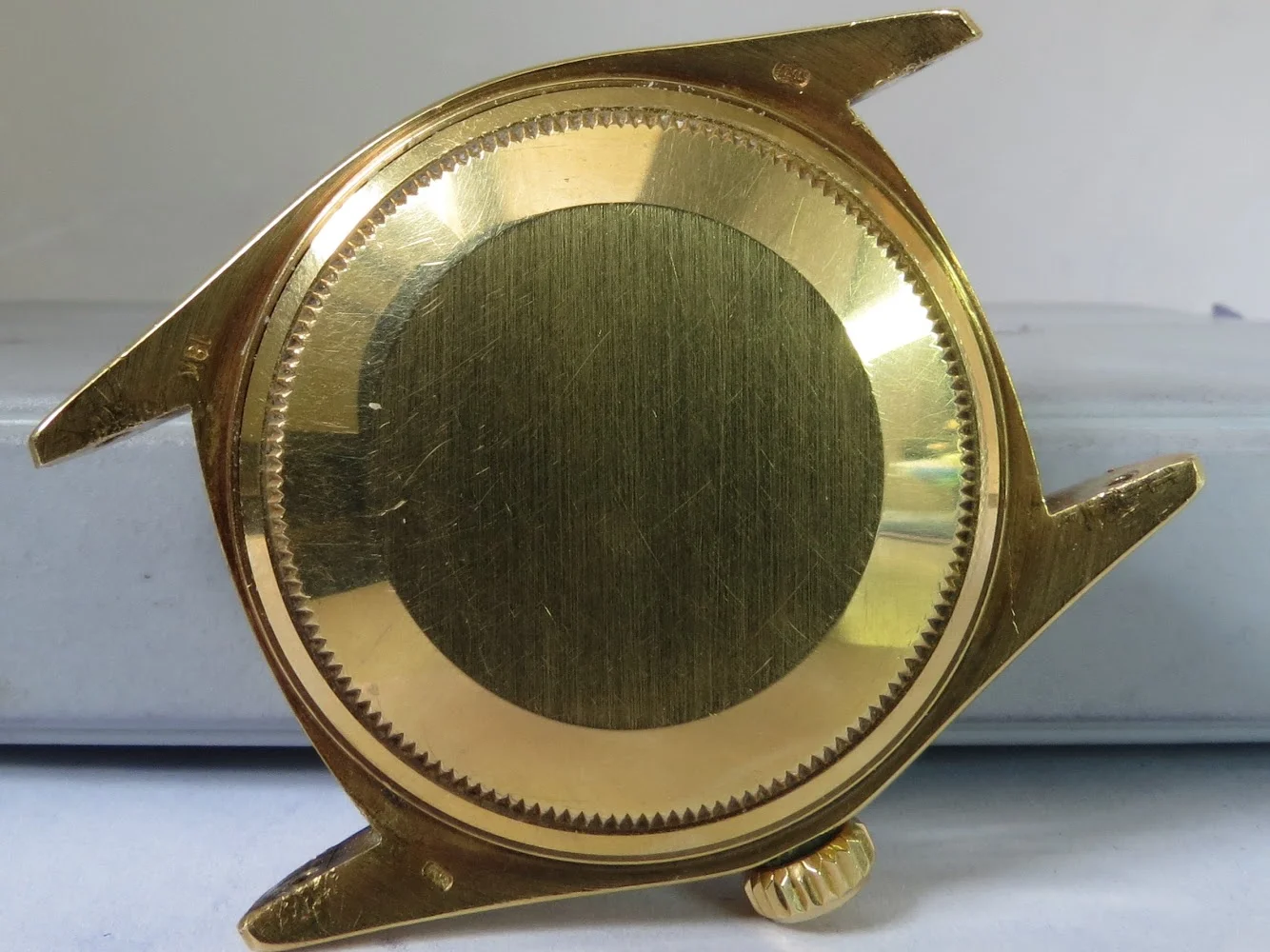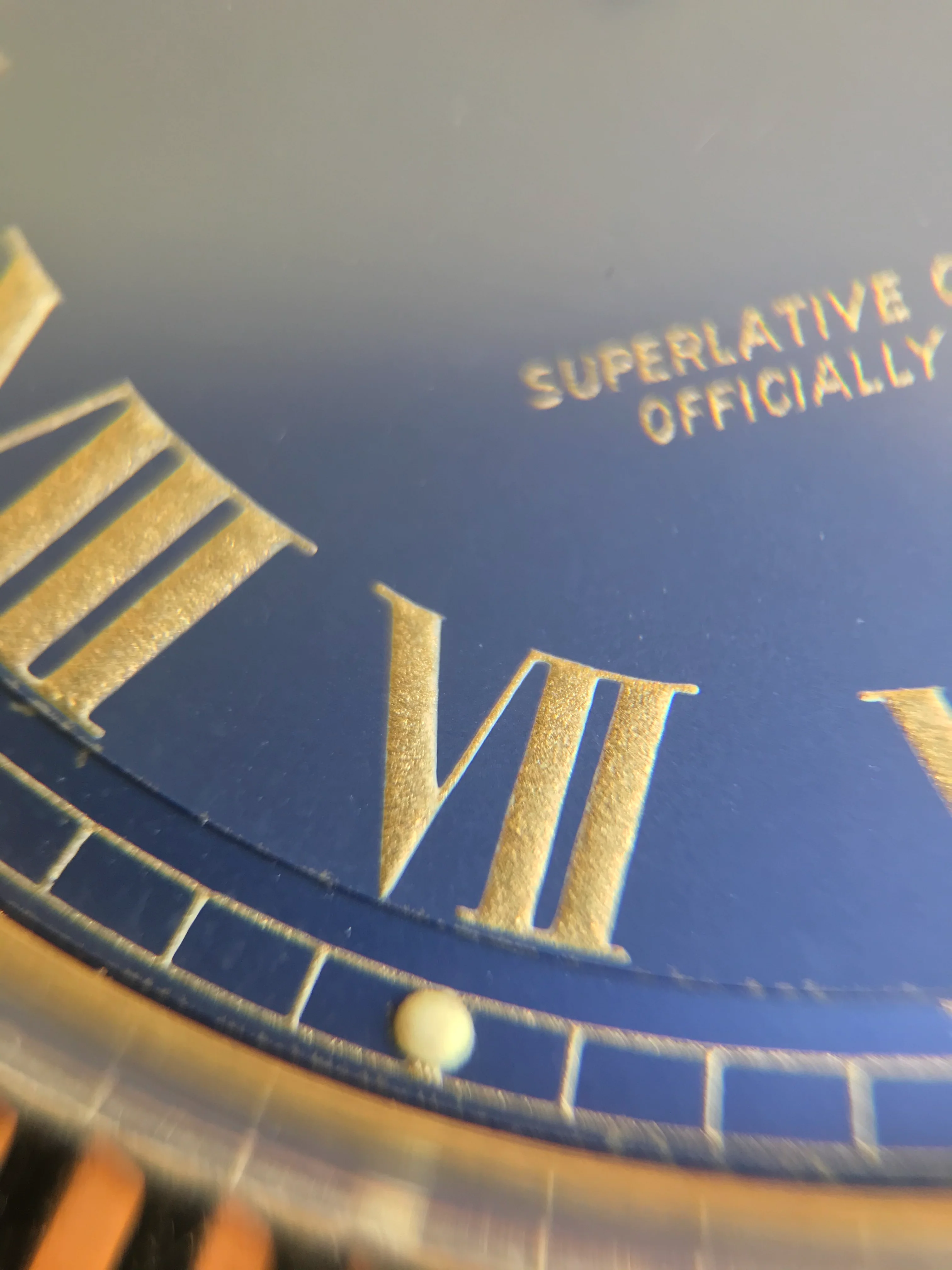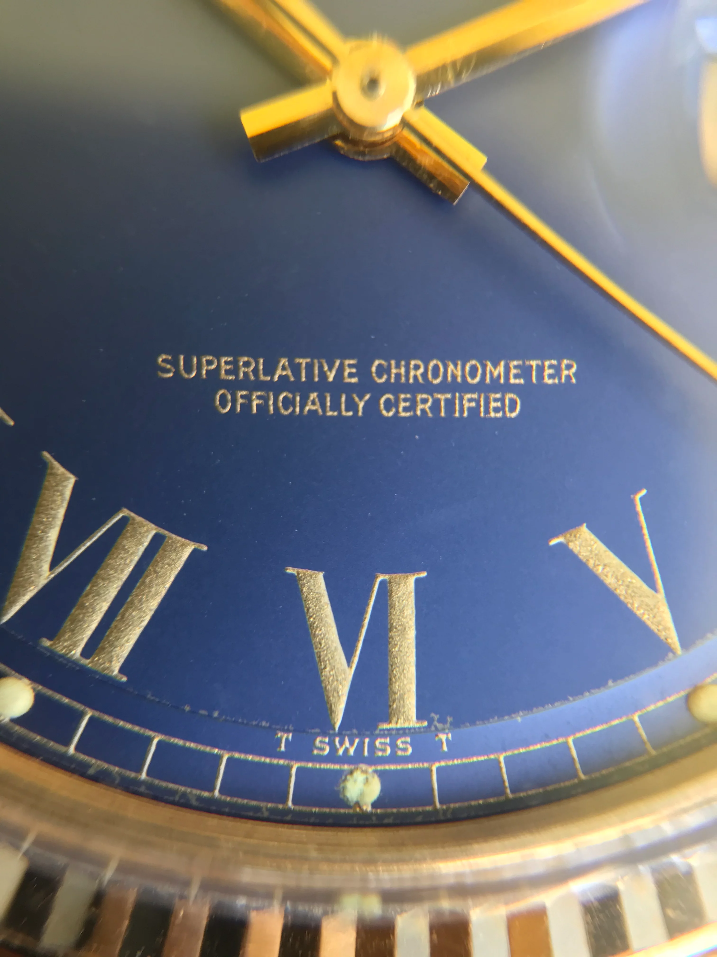 ·Originally released in 1956, the Day-Date is one of the most iconic watches ever produced. For sale is my yellow gold 1803 with an uncommon buckley blue roman numeral pie pan dial with the rarely seen cigarette boat hands. Automatic movement 1556 calibre non-quickset. After rocking this beauty as a semi daily beater for the past 5 yrs, I would like to fund for a new purchase and pass this on to another collector. Case measures at 36m, appears to have been previously polished and exhibits light wear from use. Retains good proportions and remains thick. Caseback hallmark engravings behind lugs are visible via a loupe.