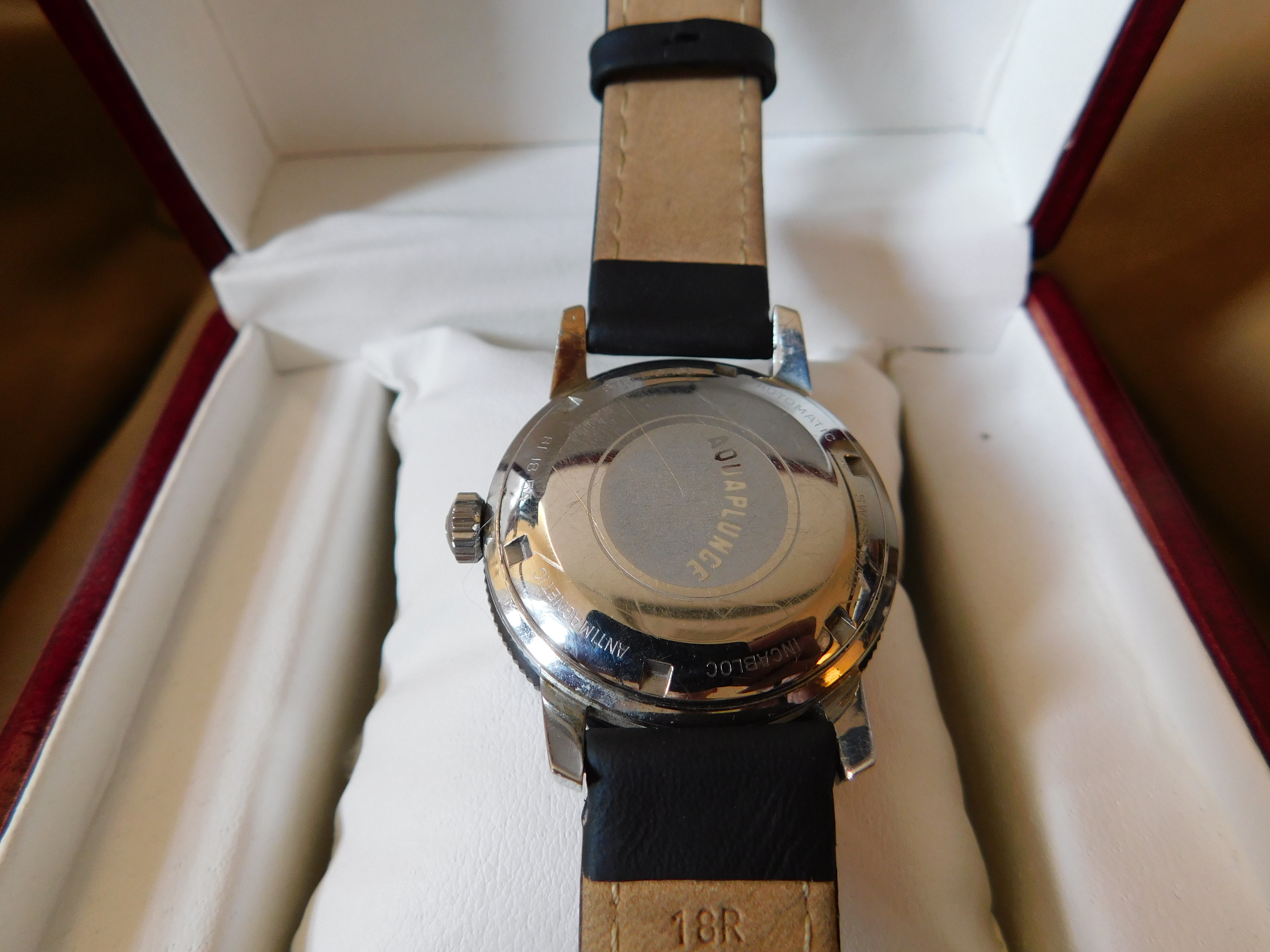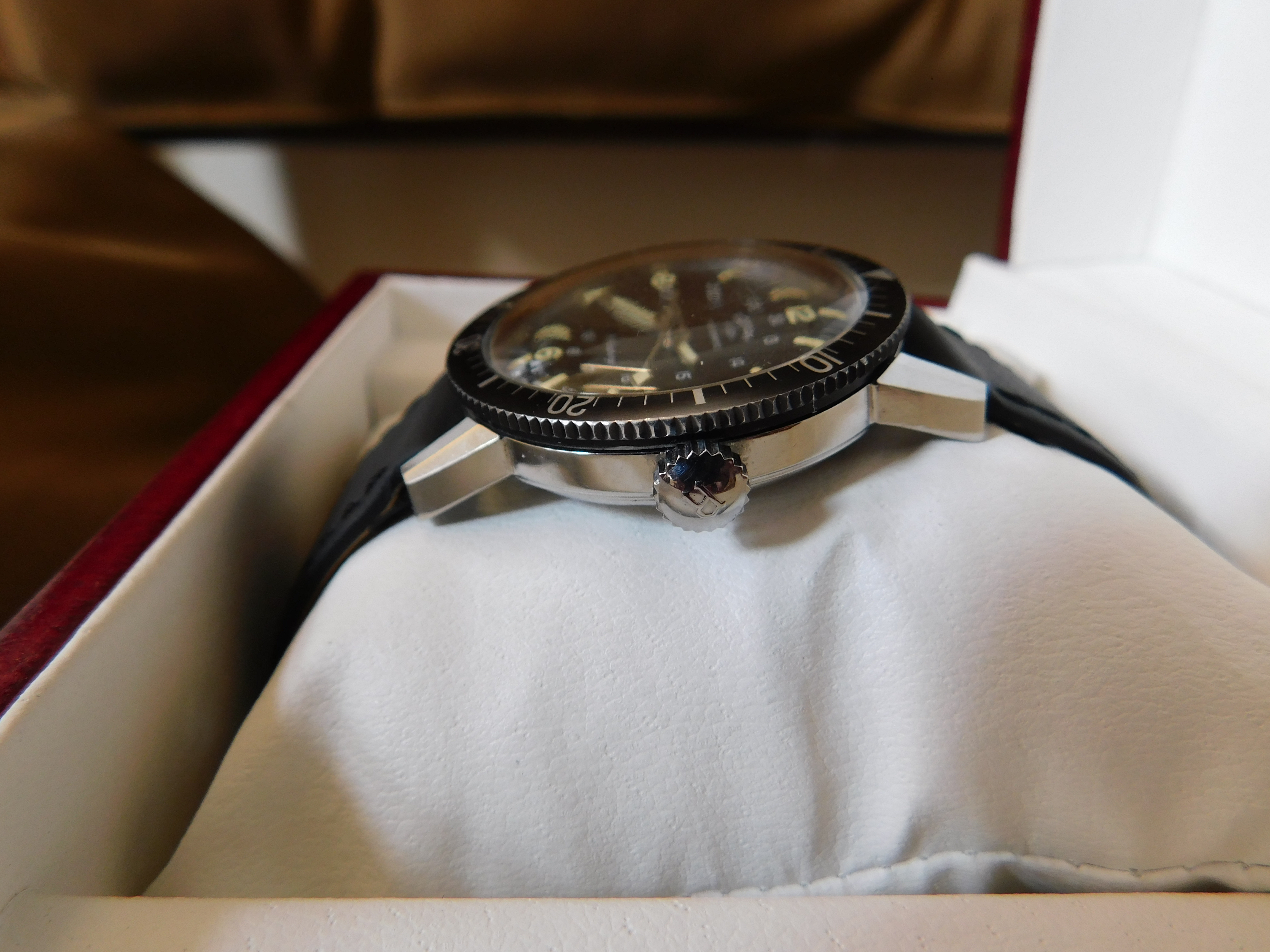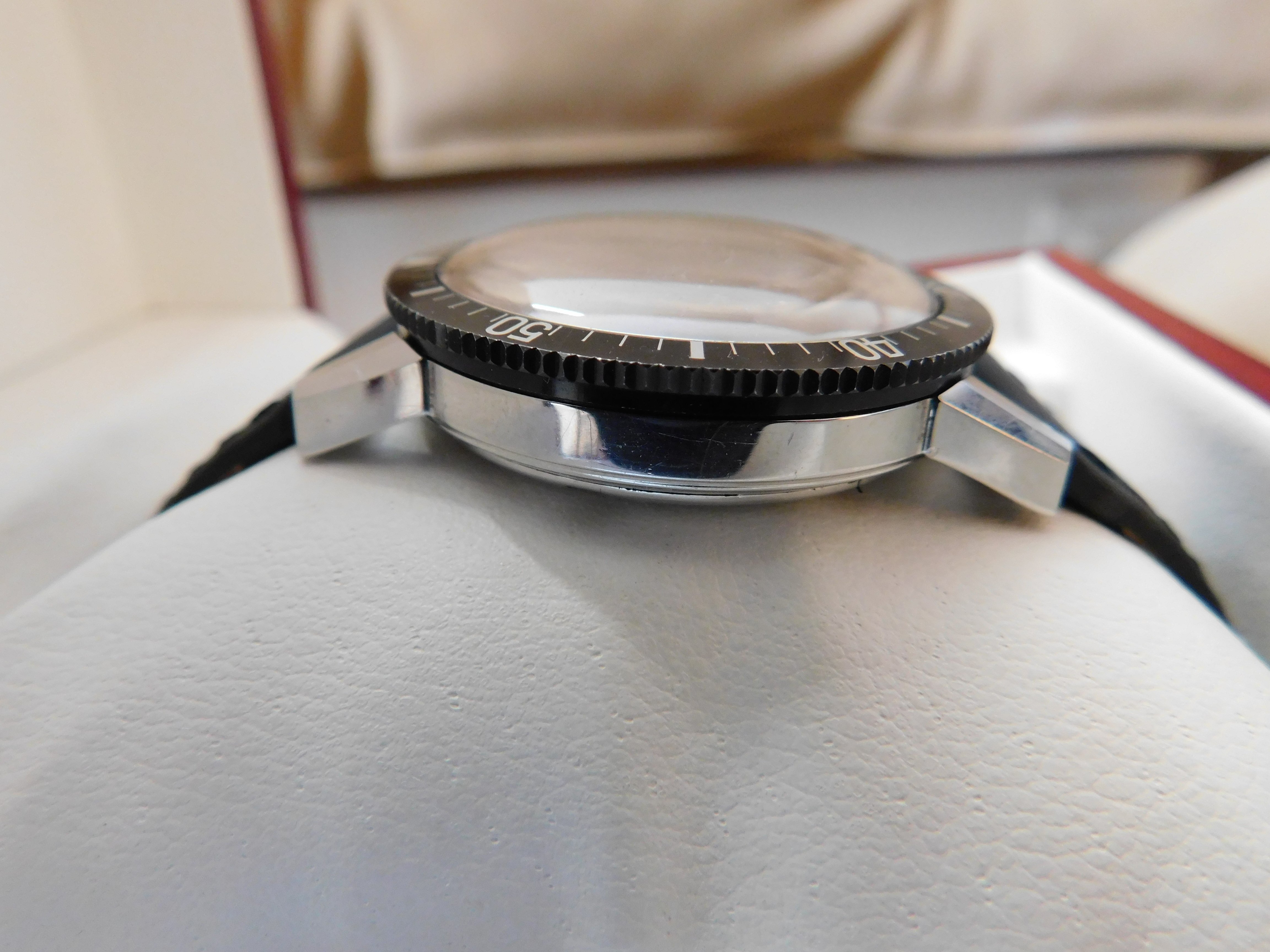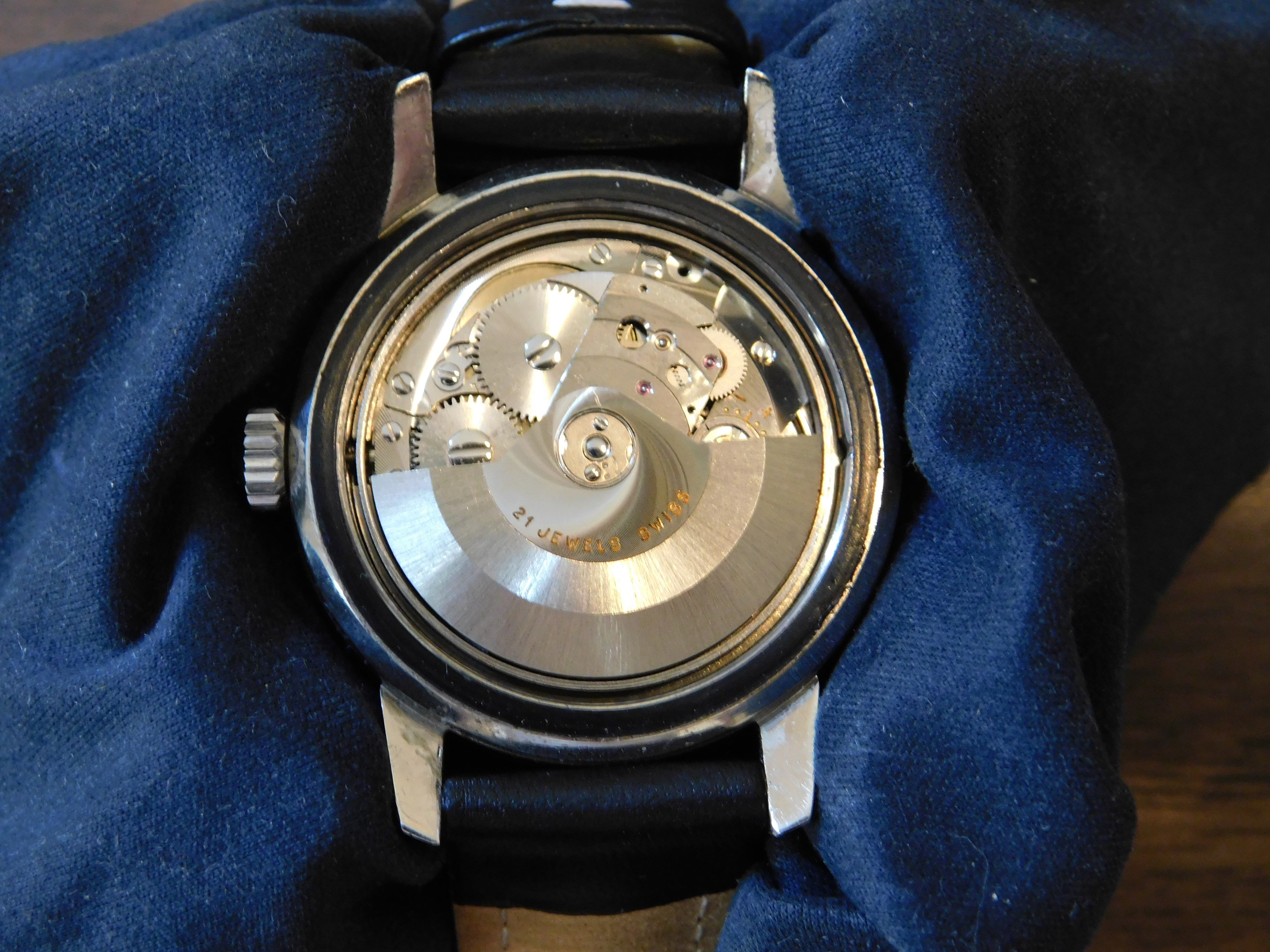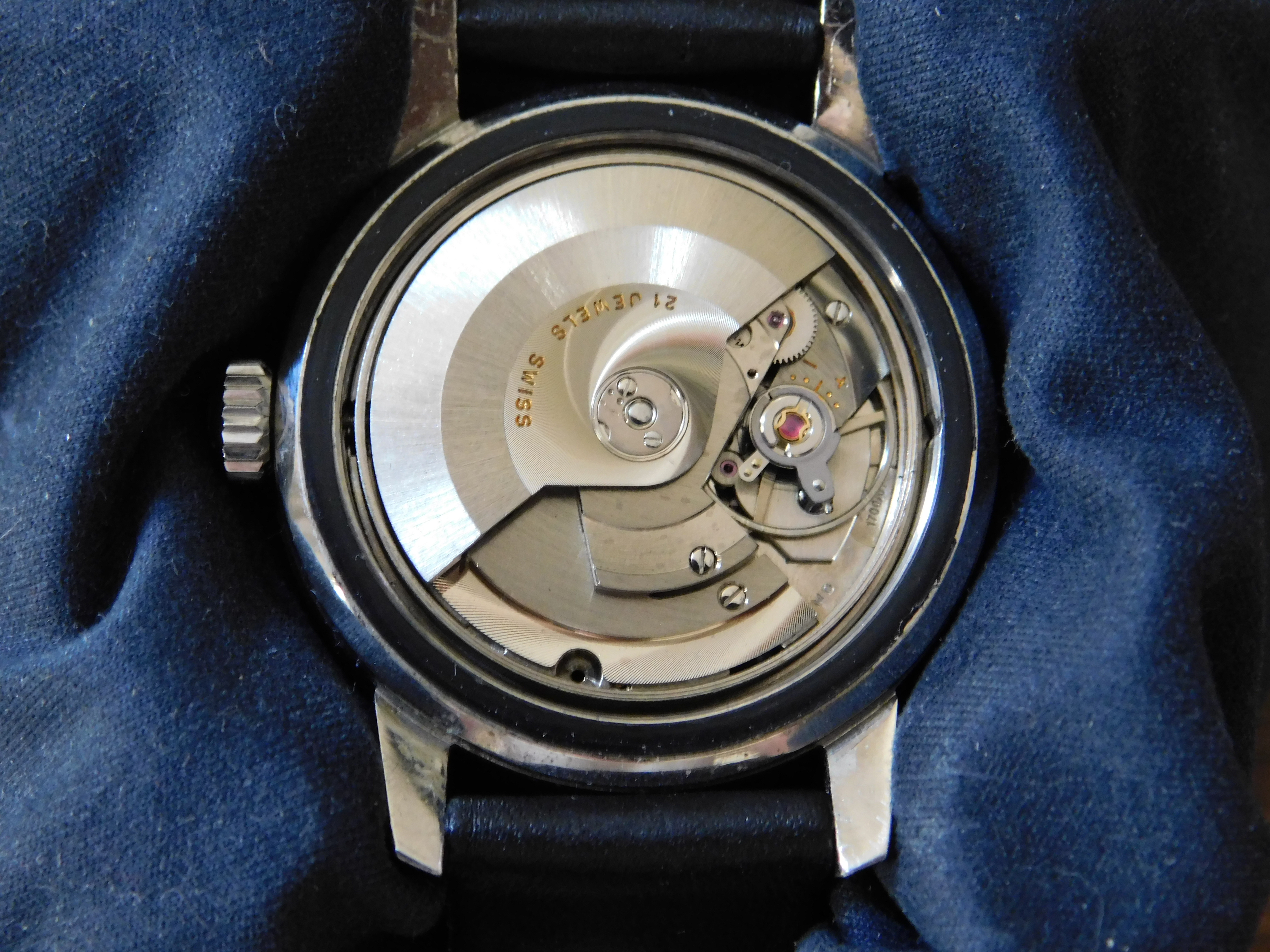 With its beautifully-proportioned all steel case, angular lugs, and arrow hands, this is the epitome of form and function from the apex of 60s dive watch design. Inside is a robust A. Schild 1701 automatic Swiss movement with quickset date. It's running strong and keeping good time.