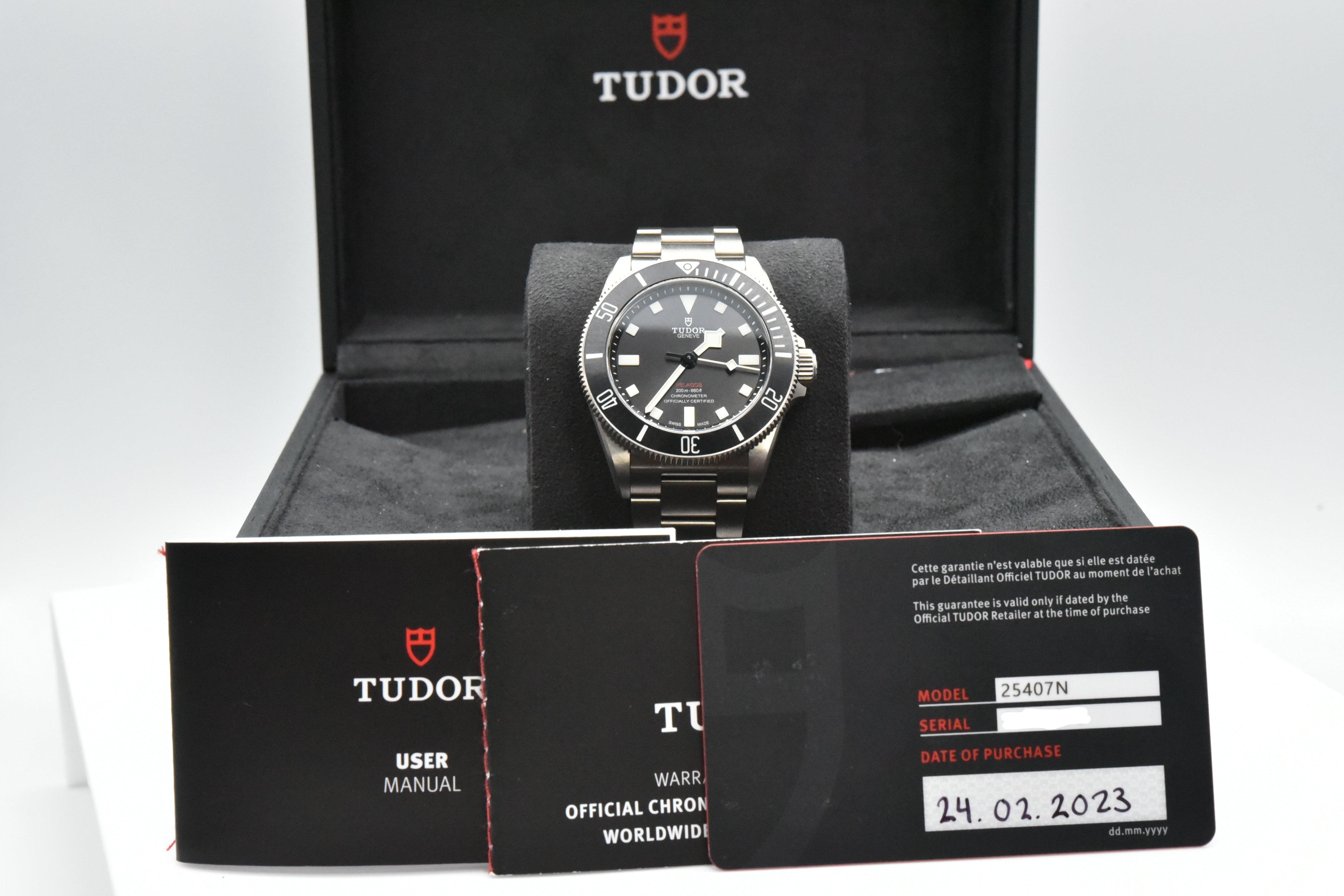 Complete Packages/Set (Double boxes, Hangtag, Tudor Rubber Straps with Buckles), & Complete Manuals/Papers with New Style Warranty Card Dated 02.2023. The Watch still has Plenty of Factory Warranty left.