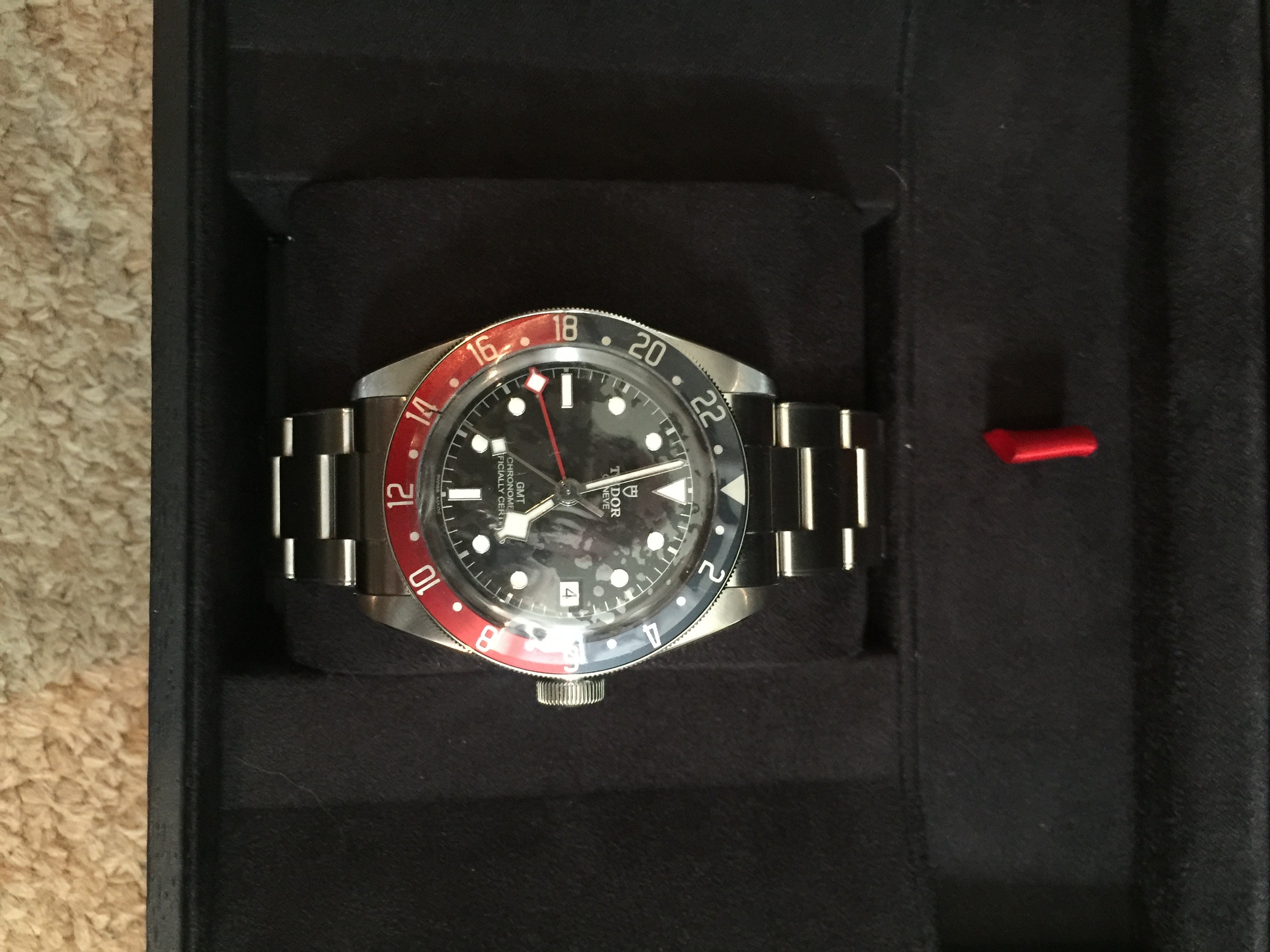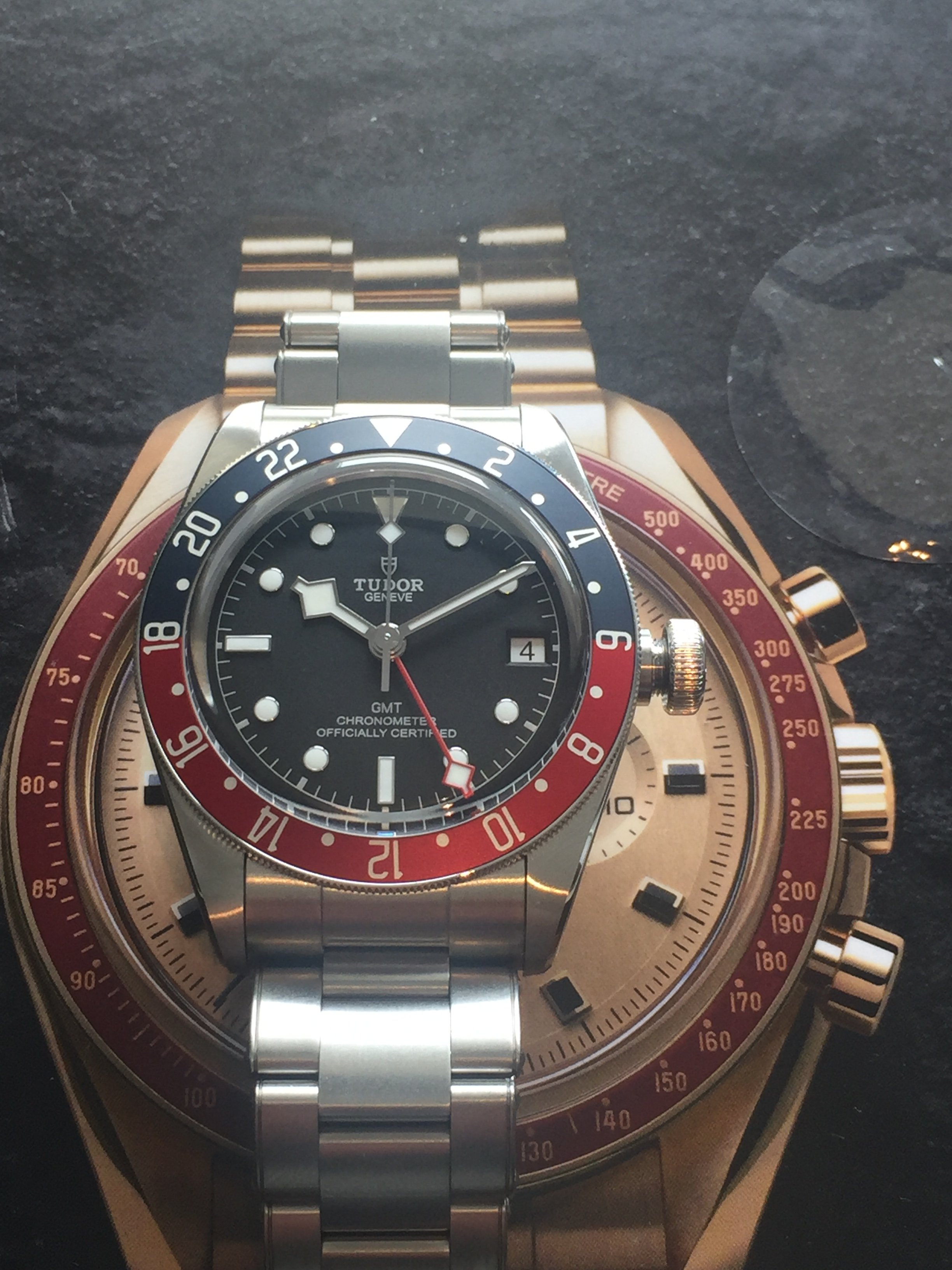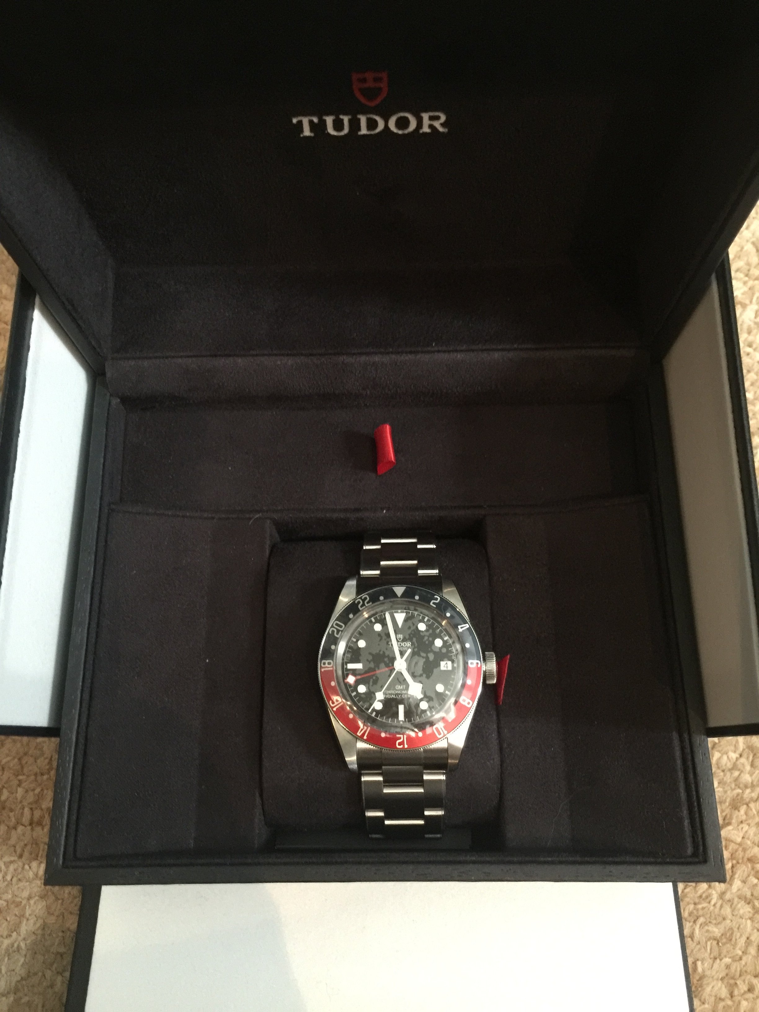 ·For Sale only Tudor Black Bay GMT. Pepsi Bezel Watch on Stainless Steel Bracelet. Ref M79830RB-0001.