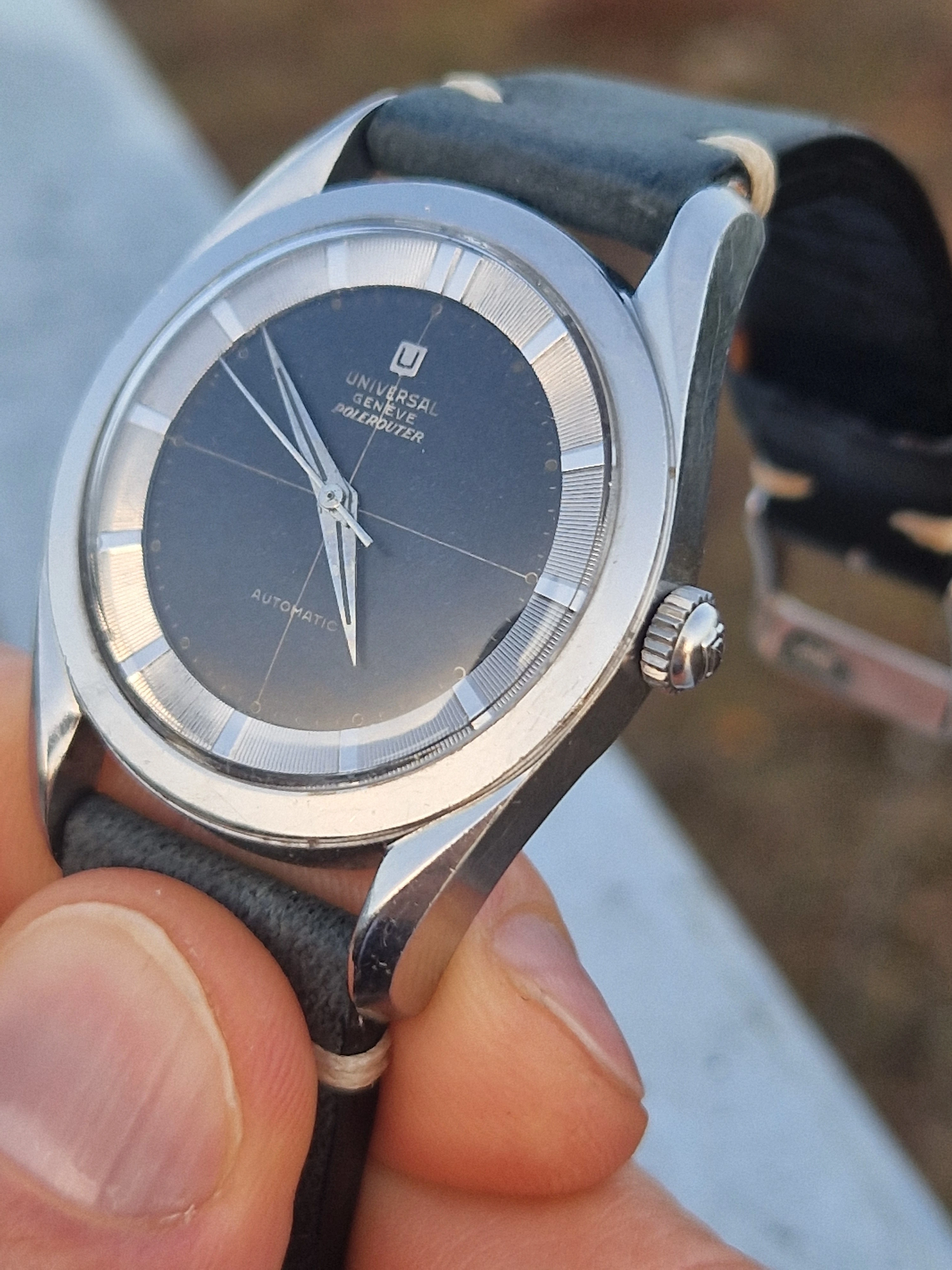 I'm considering to sell my UG Polerouter S 20217-4. Original dial and hands with homogenous patina and original lume. Beautiful gilt letters and crosshair. Original crown. Very good/"full" case despite many scratches (maybe unpolished?). Crystel not UG signed, so probably not original.