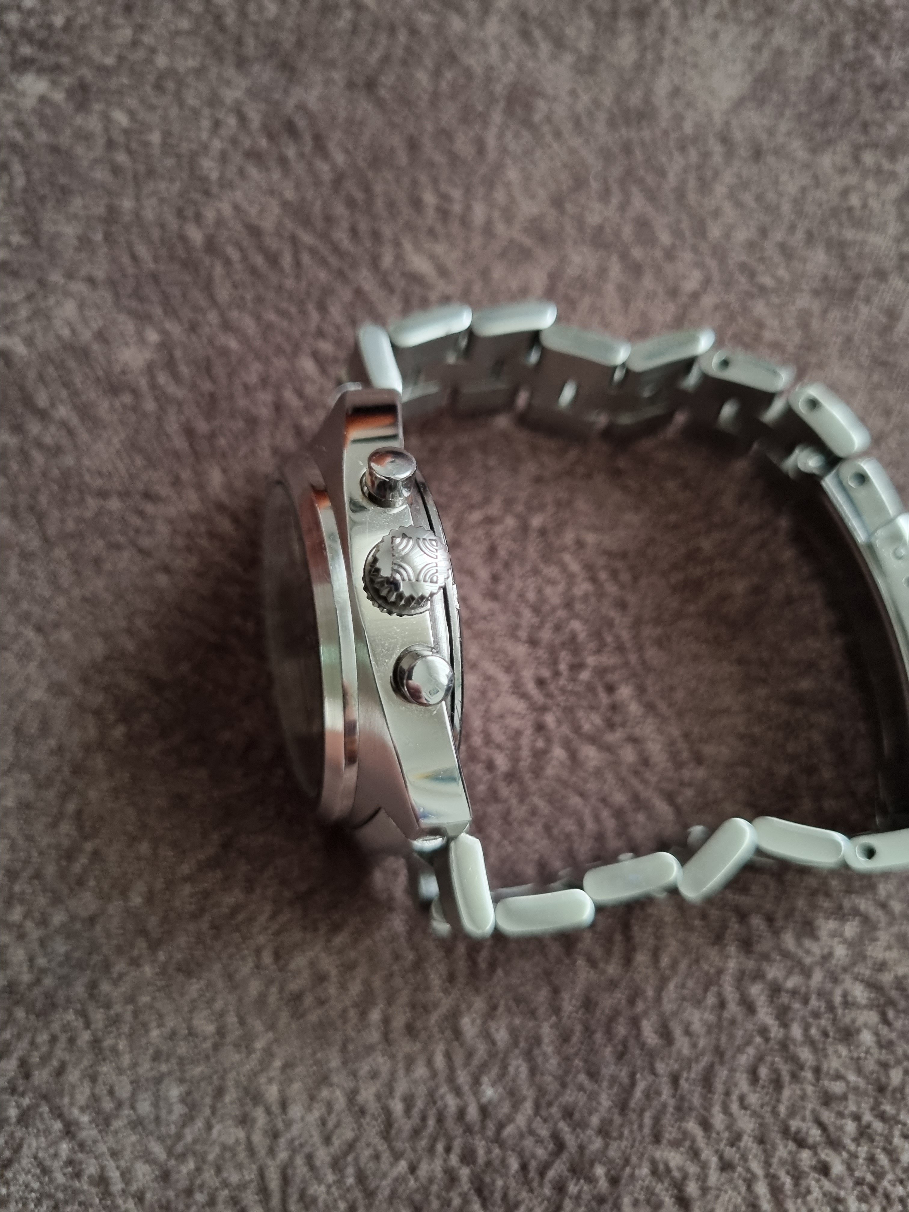 Specs: classic C shape case 36x40mm, 19mm lugs, date between 4 and 5..