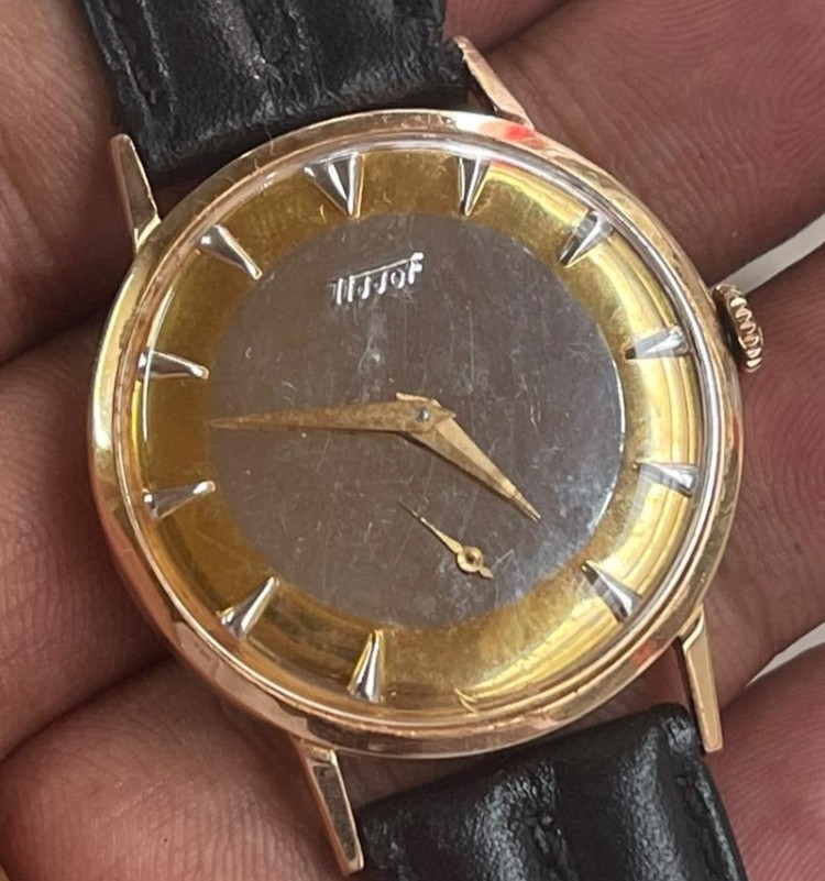 Dial and hands appear authentic, but that dial has been stripped of all its paint and print. 😵💫 Unlikely to be 9k gold either; if it is solid gold it should be 14k. Any caseback pictures to share?