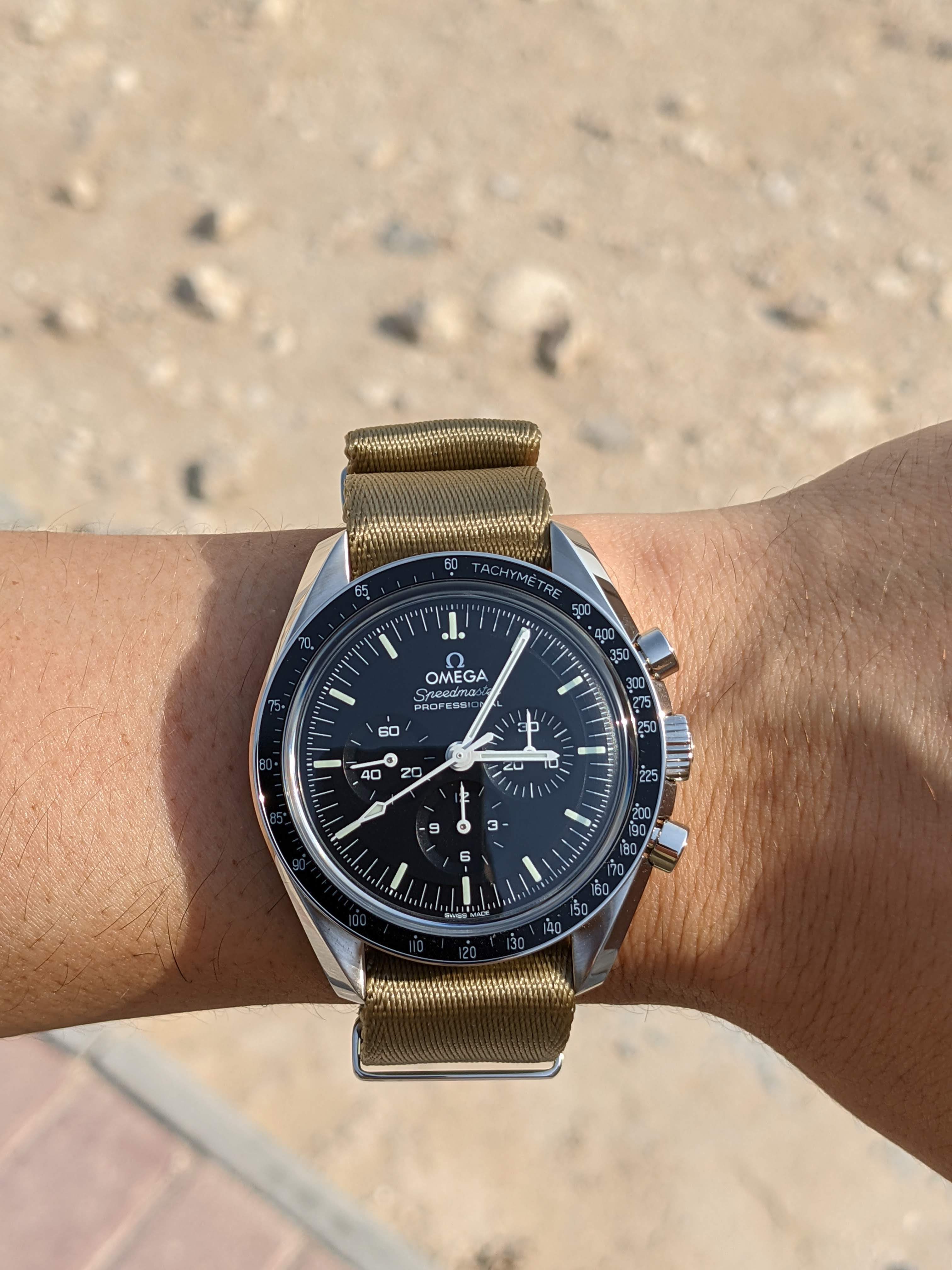 ·I found the PhenomeNato close in feel, but the material was very flimsy and didn't feel right on a heavier dive watch. The Omega NATOs are nice and soft, but have juuust the right weight / thickness / whatever that they feel robust on the wrist.