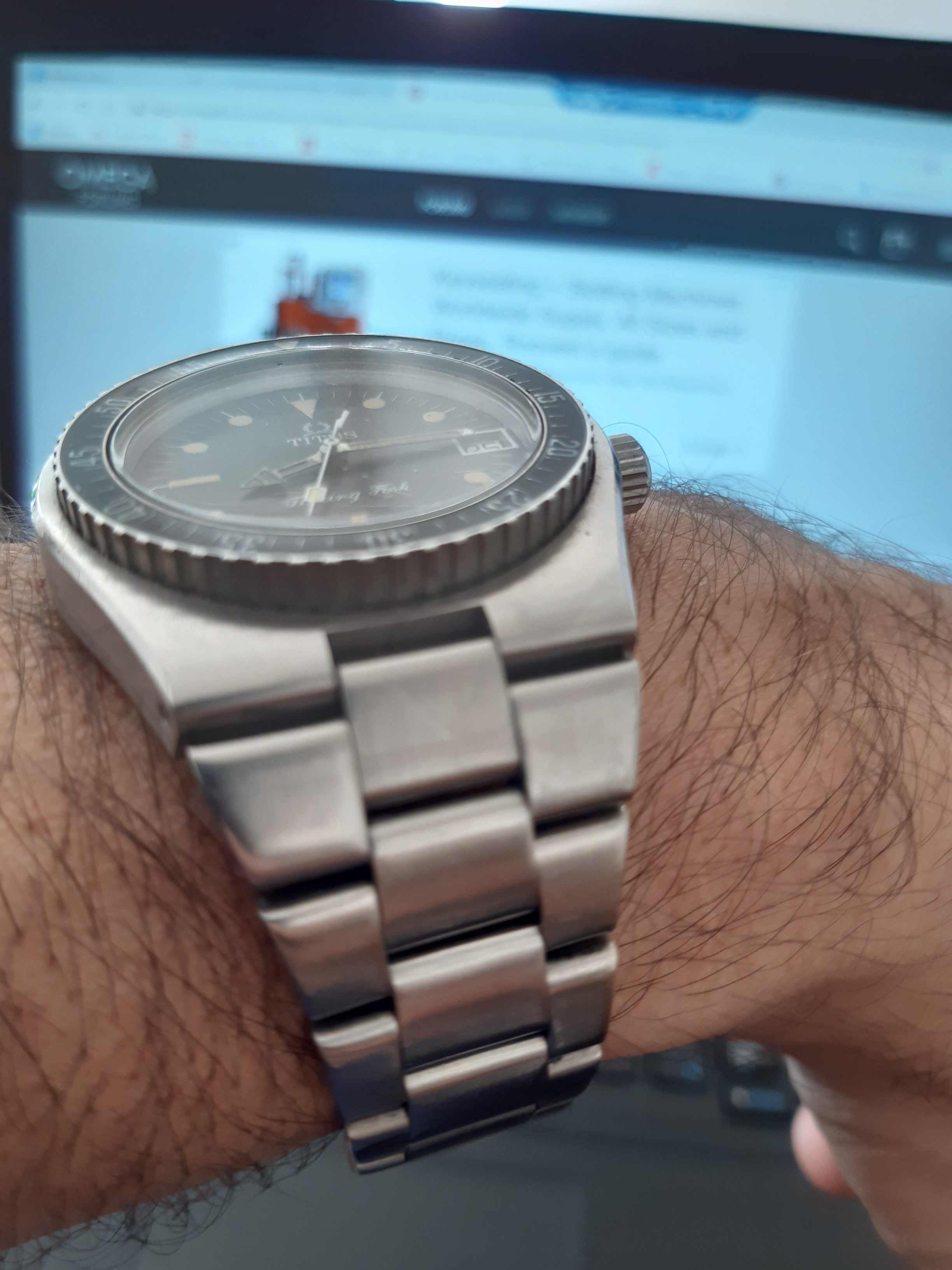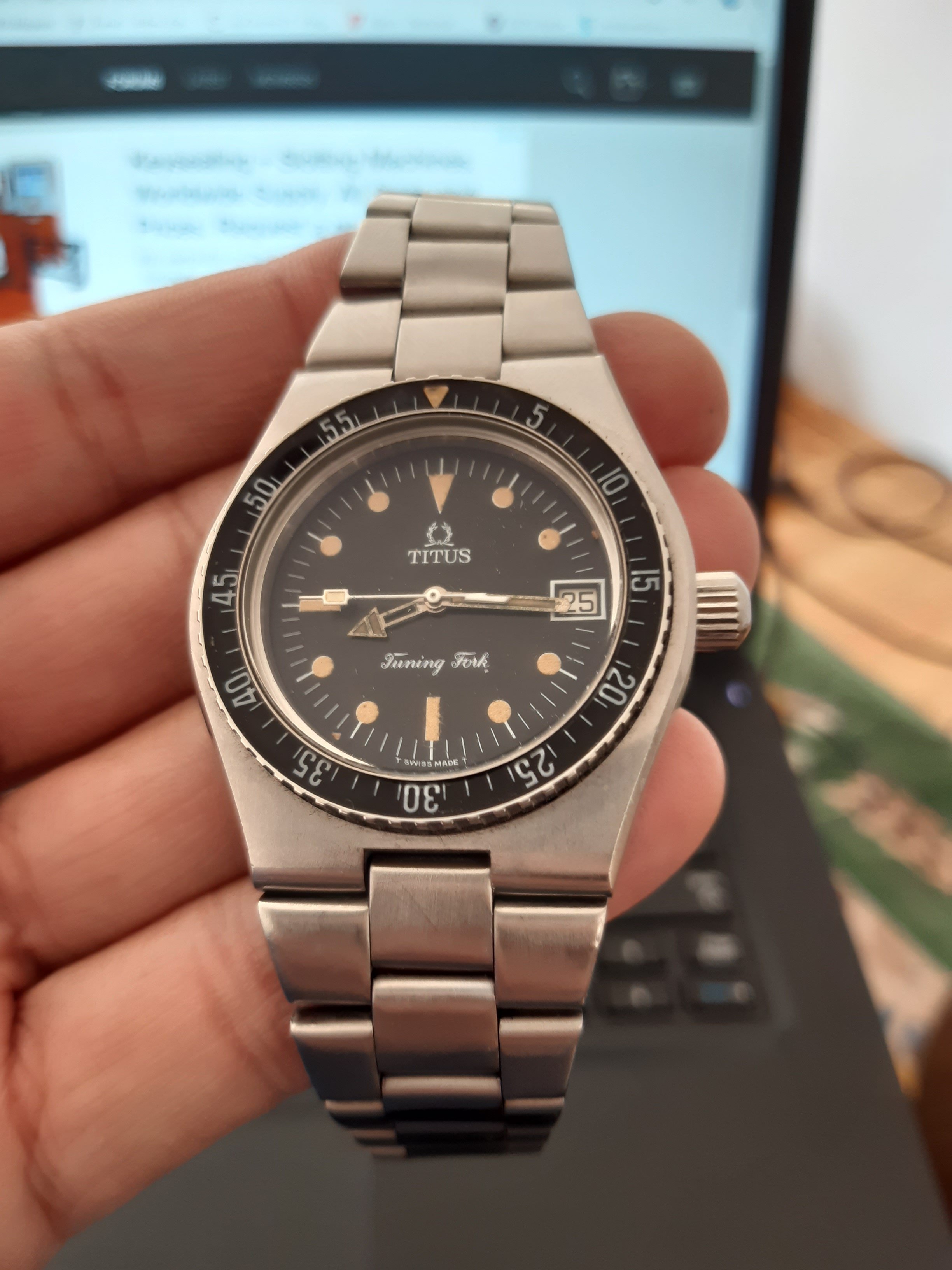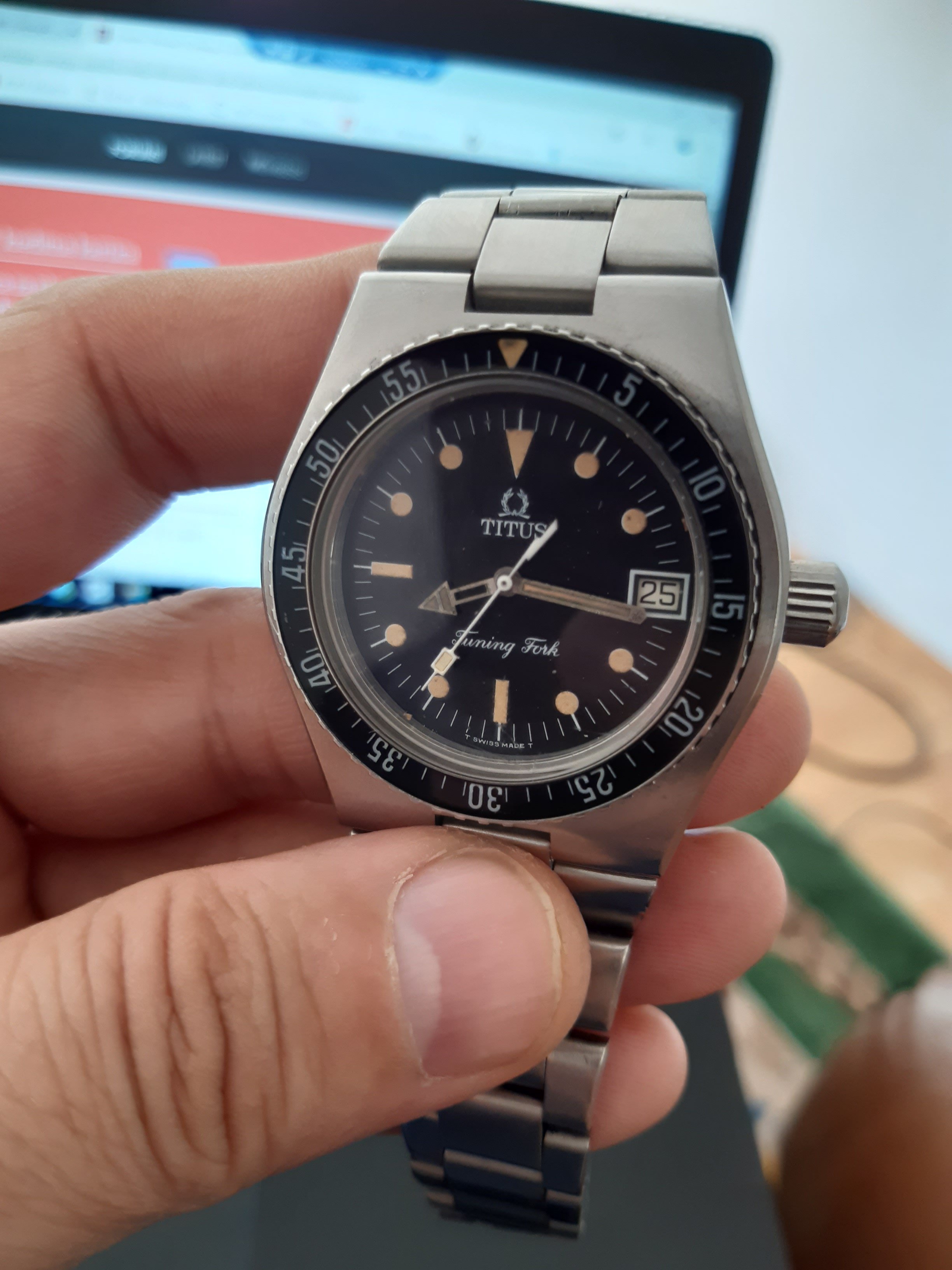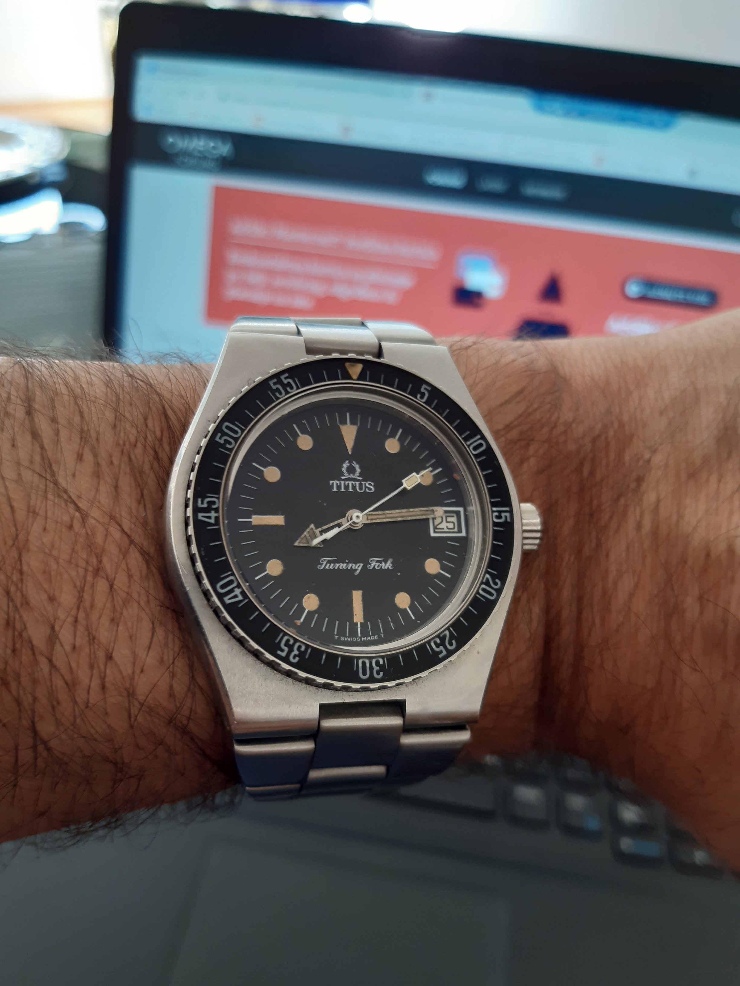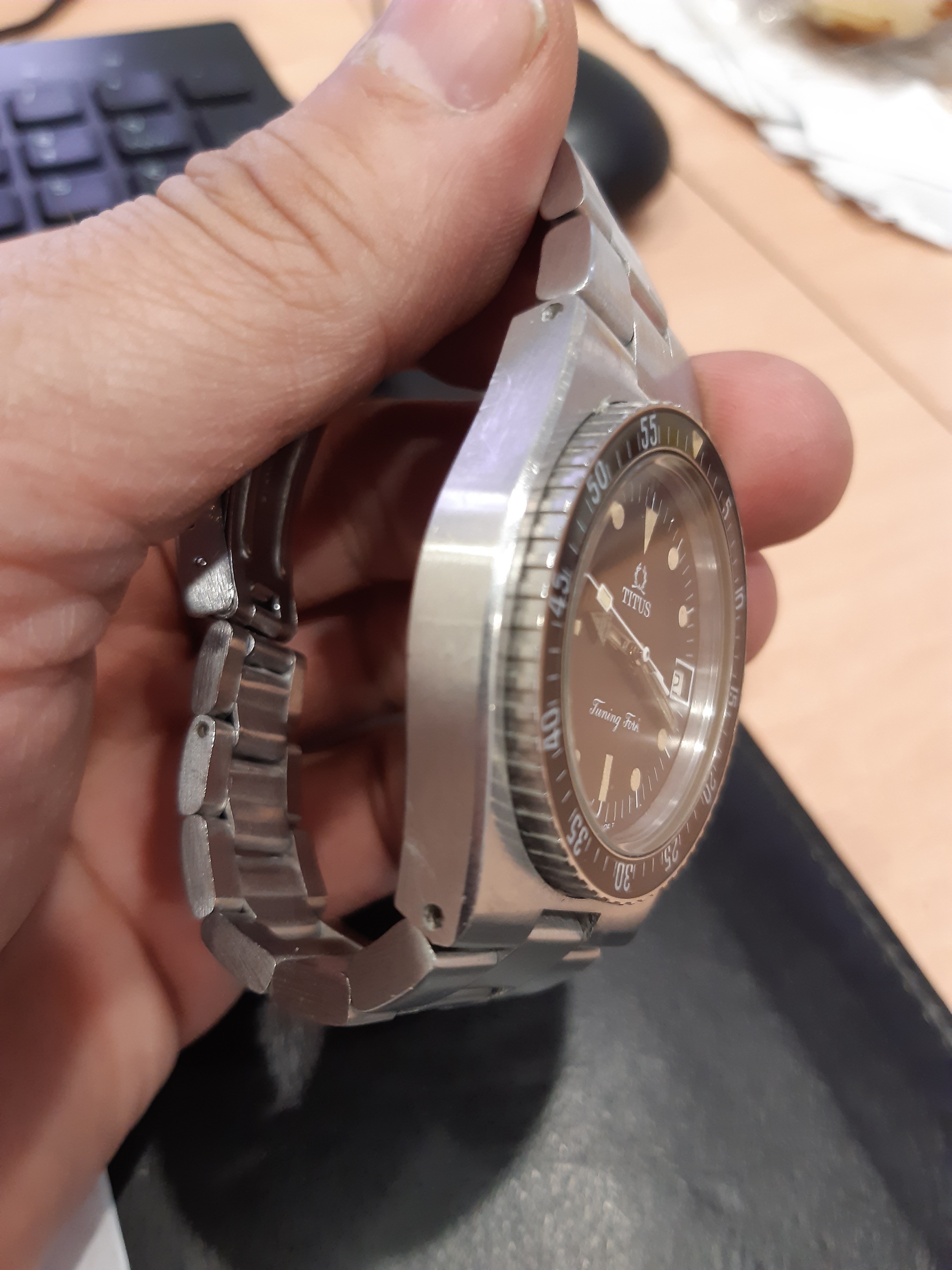 Rare,DNA Omega Titus Diver in working order with small imperfection ,Bakelite bezel,tritium dial with lovely cream patina,one hand tritium fall down bun nothing big issue,42 big case ,daily used ,real solid make as Omega SM f300 in did.