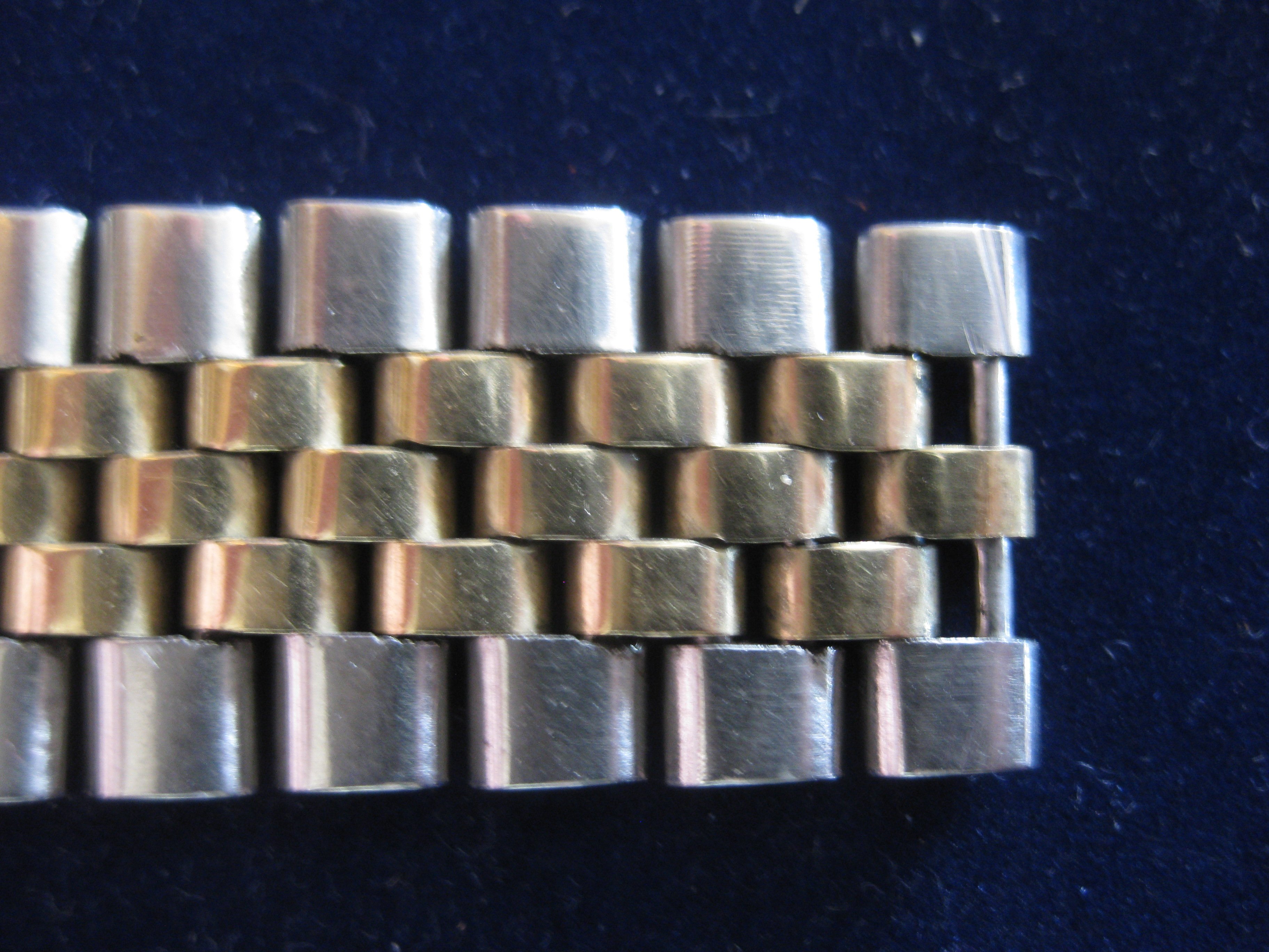 As you can see in the pictures the original bracelet is damaged and separated at the clasp. I can hook it back together but it’s still prone to coming apart. It’s too small for my wrist so even if it was repaired it still wouldn’t work for me. I’d also be concerned that given its age and unknown condition it might break while I’m wearing it and the watch could get damaged. I was thinking an oxblood-red leather band would look nice with this watch - any thoughts/suggestions from anyone? This original bracelet must have some value not only in just the gold content but the fact that it’s original to the early 1950’s - assuming it could be repaired, or parts used for authentic spare links & clasp for a repair of another bracelet from the same time period. Any thoughts on what the bracelet might be worth? I’m just thinking if I sell or trade the bracelet then that might pay for the service and new leather band?