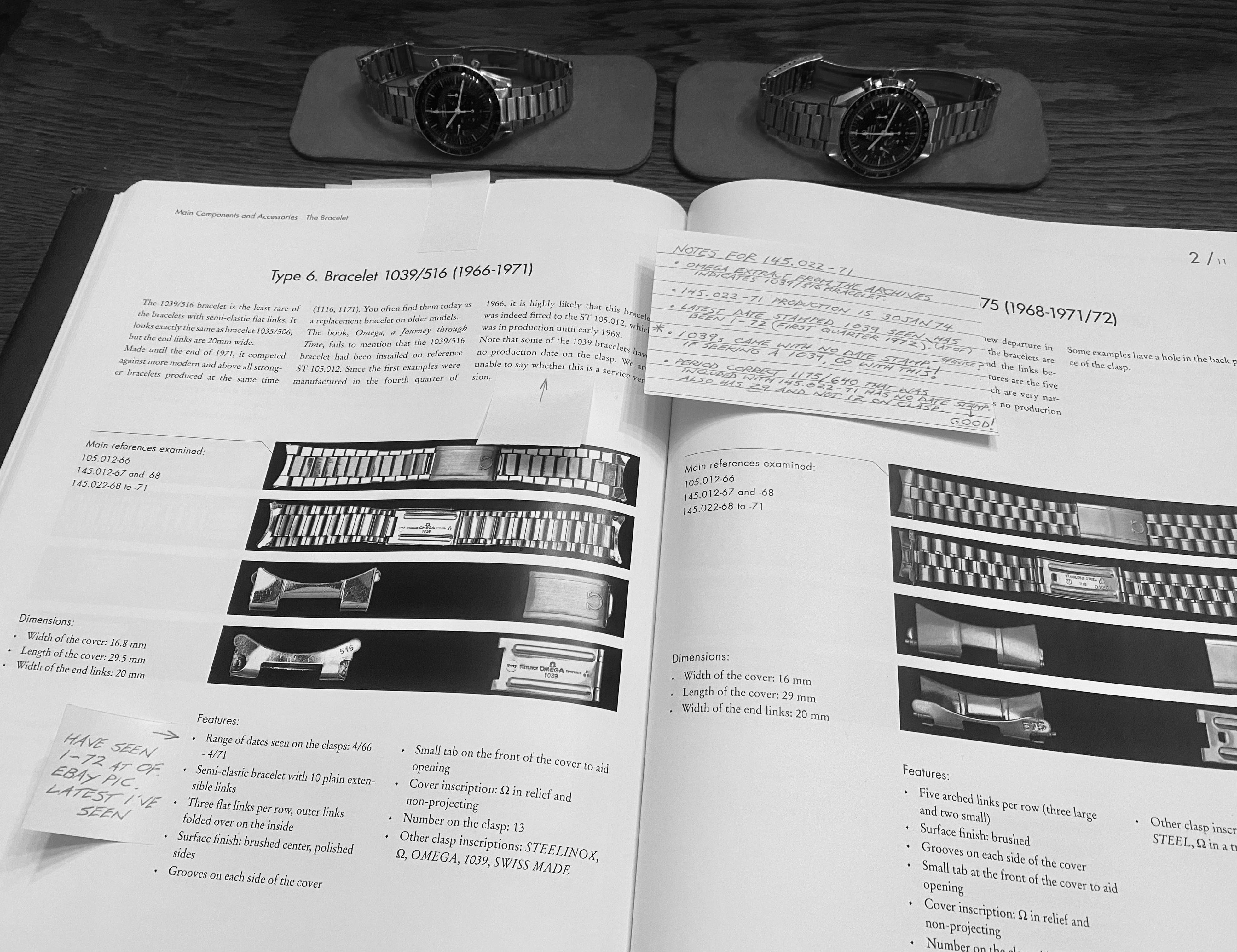 2. Contrary to the widely held view that bracelets were often added at the point of sale, perhaps months or years after the watch was produced, this (albeit small sample) suggests that certainly during times when the Speedmaster was selling well (ie after the moon landings), the date stamp on the bracelet could correspond closely with the production date of the watch. Obviously the actual sale date could still be some time after both the watch and bracelet we’re produced.