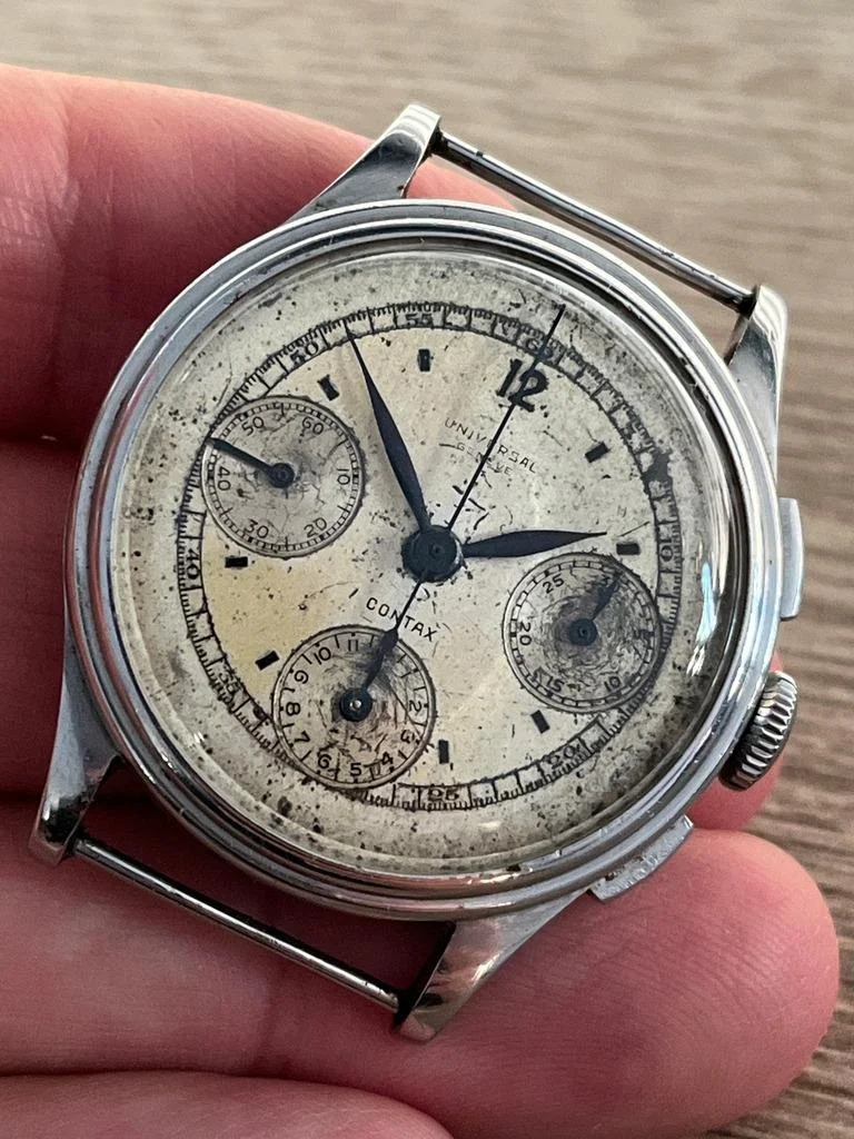 My estimate for the total production number of Contaxes is between 400 and 800 pieces. One remark: due to the fact that the specific Contax movements are hard to identify I would not be suprised if there are more Contaxes around than we think. I know of at least one which was on C24 advertised as Compur.