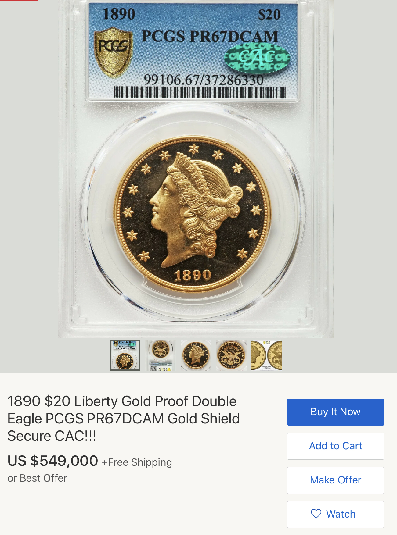 That coin is probably one of the highest graded proofs in the entire series, which was minted for over 50 years. That's why it is priced at $500K+.