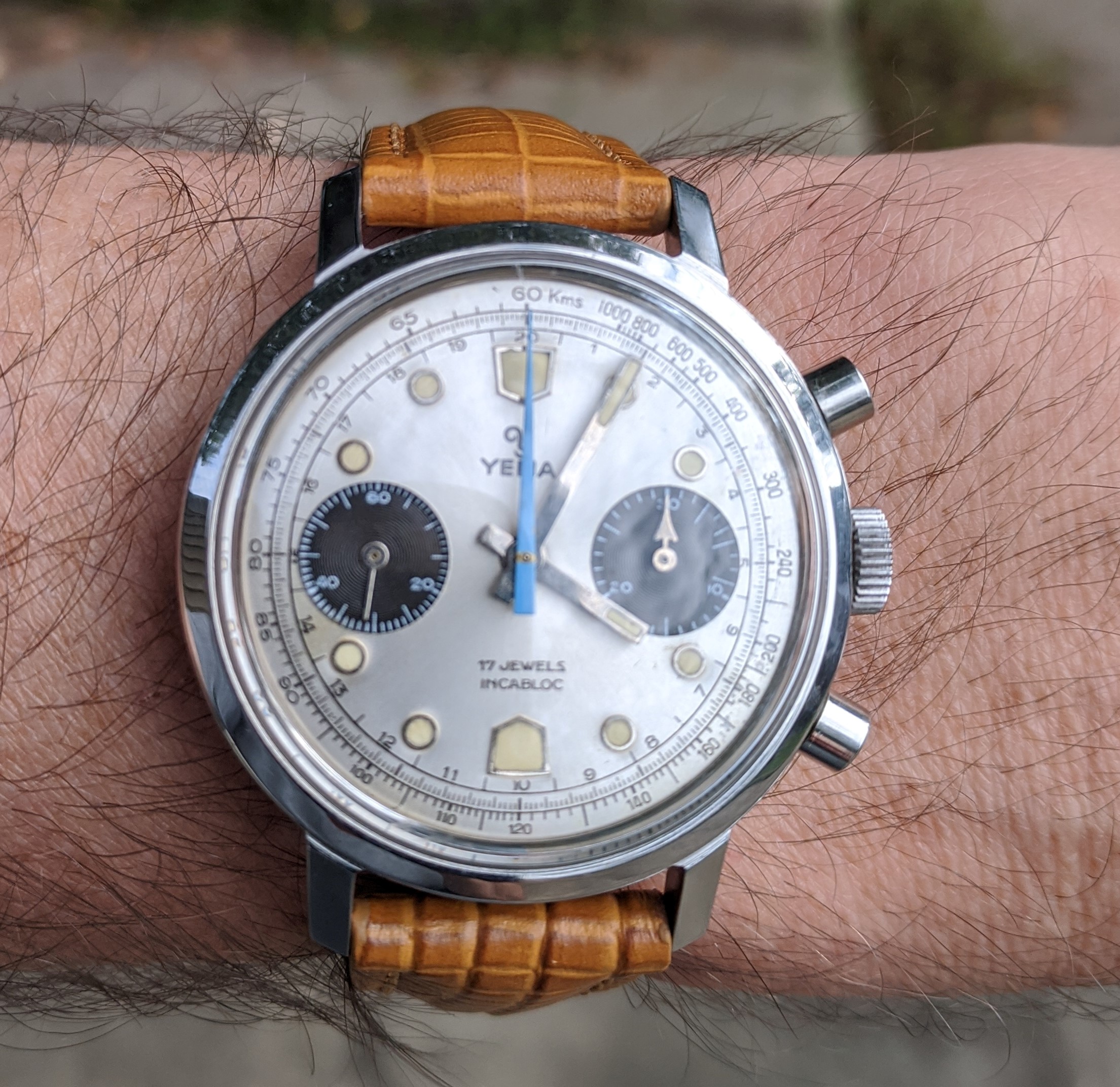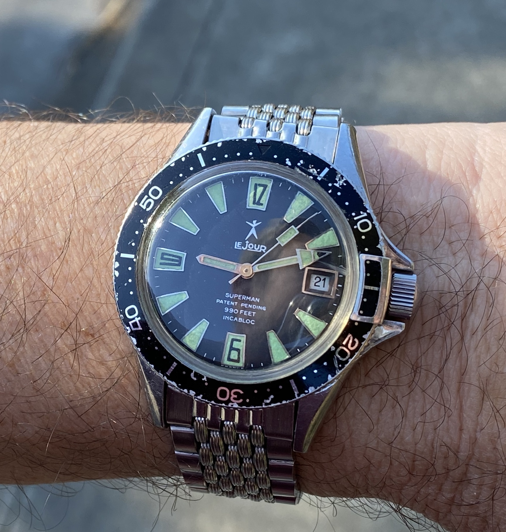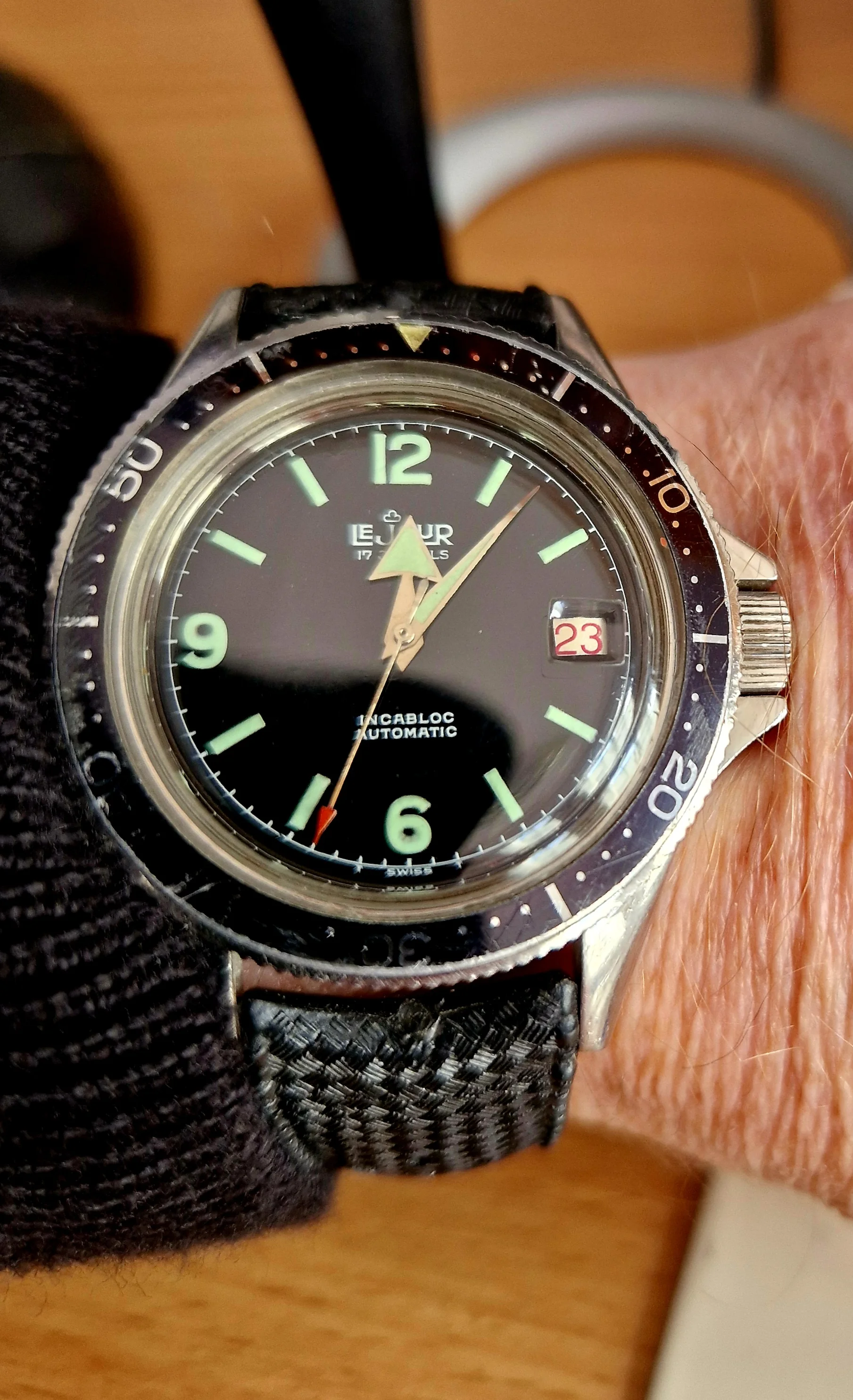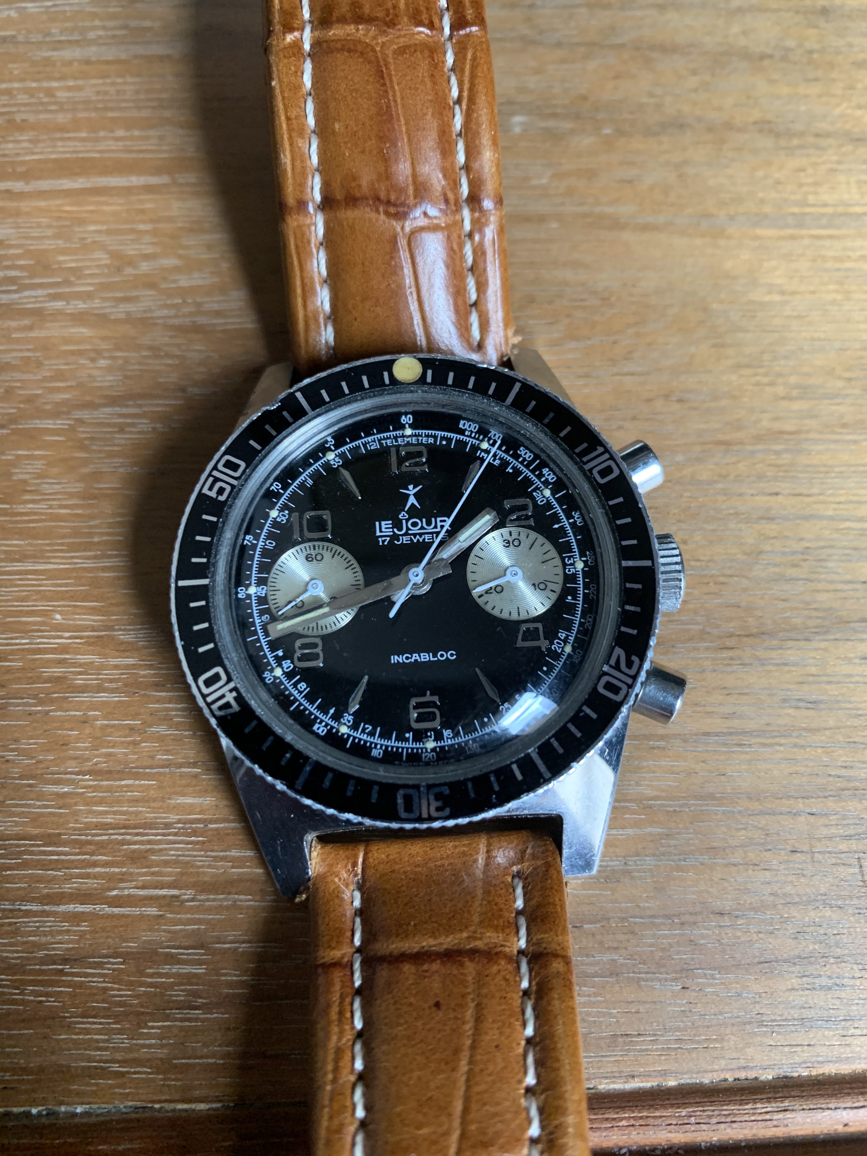 ·I've been spending a lot of time over the past few month looking into the mid-range tool-watch and sports-chronograph makers from the 1950s and 1960s. This started with the purchase of a Yema Meangraf Super, which I have since sold, using the proceeds to buy an early-year Rallygraf Super. I've also been looking at Ollech + Wajs, Helsa, and a few others. This led me to Le Jour, which is an odd duck. For those of you unfamiliar . . . Yema was a mid-range maker of cases and dials that was marketed in the States as Le Jour (presumably b/c the latter sounded more French). But Le Jour also produced watches using Yema/Le Jour dials on a range of very nice movements and cases. The rise in value of Yemas, the Yachtingraf and Rallygraf in particular, has generated more interest in Le Jours, and the watches themselves are often very nice in their own right, demonstrating a characteristic French flair. They're not Breitlings or Heuers, by any stretch, but if Yemas are on the order of Wakmann, then Le Jours might be favourably compared to Tressa, Helsa, the aforementioned Ollech Wajs or perhaps even LIP. I am still tracking down the details, but it also seems that Le Jour, like Wakmann, was involved in distributing Breitlings both under the Breitling name and rebranded for the mid-level market with Le Jour dials. Any more information anyone has on this would be most appreciated.