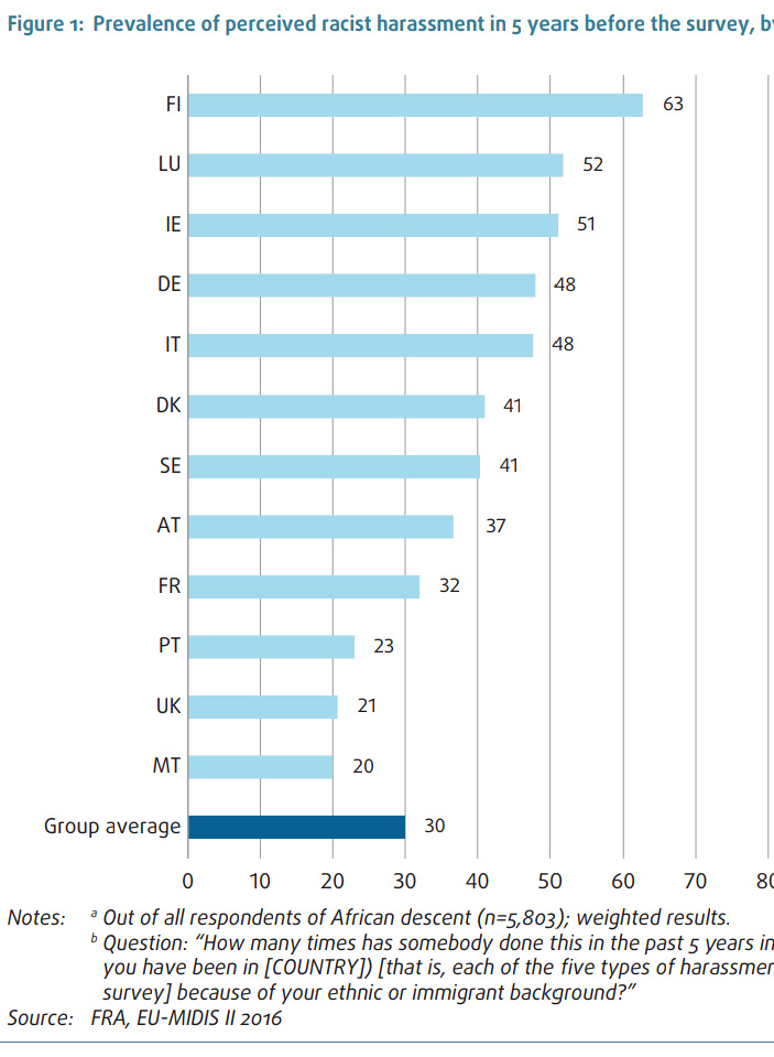 The title is just about being black in the EU so, perhaps the Brits are just racist against others?