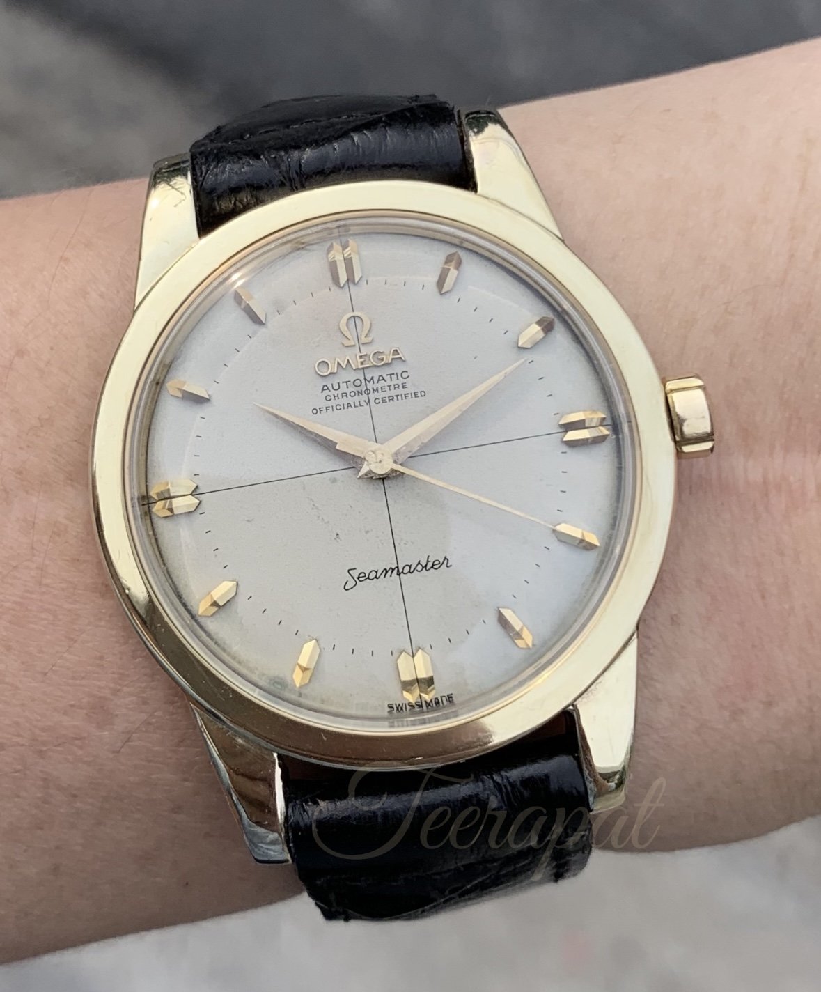Maybe a reference 2757? That was a chronometre model if memory serves with a press in case back and I think it used a caliber 354 bumper. Here's an old listing for one: Serviced Omega Seamaster Chronometer Vintage Bumper | Vintage Portfolio (vintage-portfolio.com)