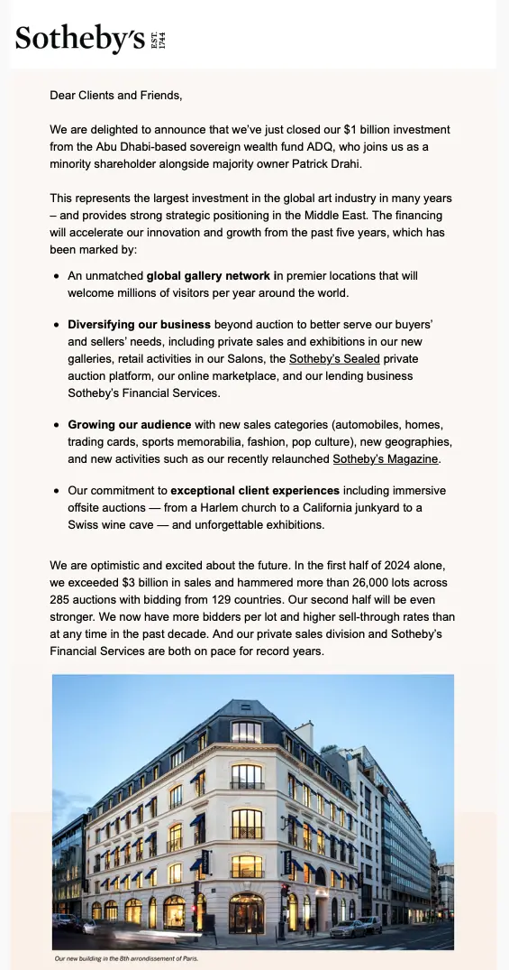 I think its a way for prices to go even higher on auctions for sure. Having more eyes with people with money makes sense. Its seems like unlimited money coming from Saudi at this point. Literally can fly all the buyers in on separate private jets to up bid every item in person if need be haha