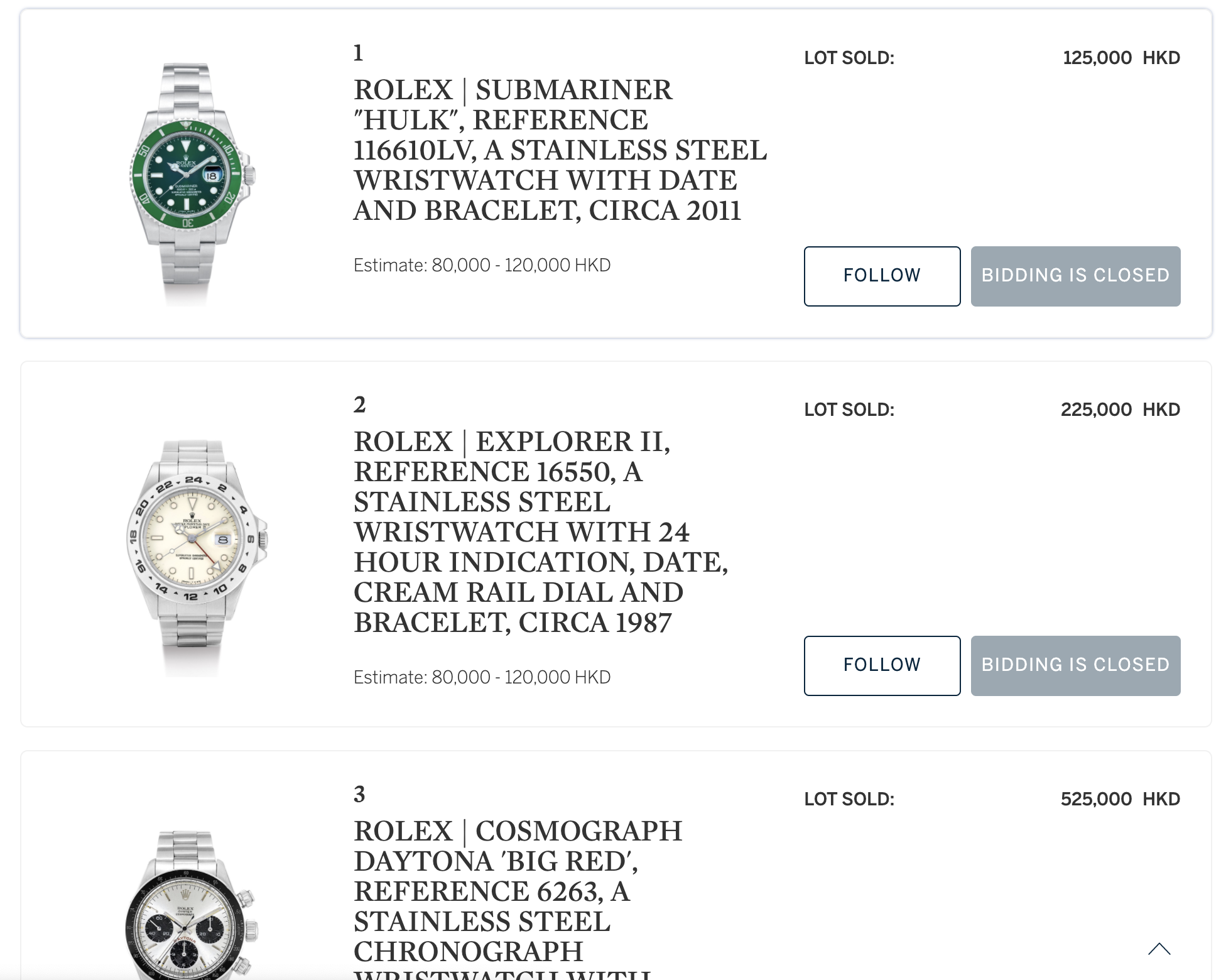 last time I looked, online big house auctions still mark up the staggering 25% premium. Added to that is that they have to take a high percentage of trade items to fill the list. So these houses want us to sit at home, bid on a high value watch without handling it, and pay the exorbitant fee without the free cappuccino in the Grand Hyatt Ballroom at the viewing.
