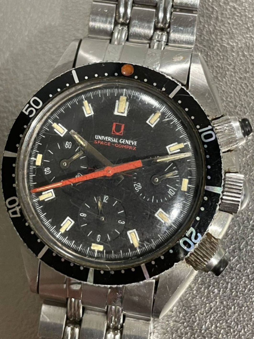 Looks like a good examples of Mk2 Space Compax with original bracelet and rubber pusher in a barn find condition with rough crystal and lots of human DNA all over the case. I was unsure if it was a scam but seller shipped and my friend received it. Would be great to know everyone opinions of anything that I should pay attention to this model when havving it on my hand? Thanks alot