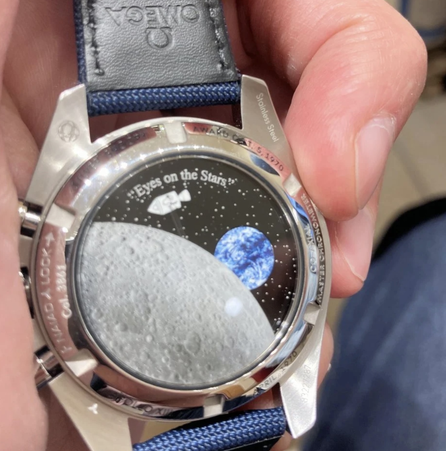 After looking more closely, SWFG members (niccoloy) confirmed it has to be a Silver Snoopy Speedmaster !