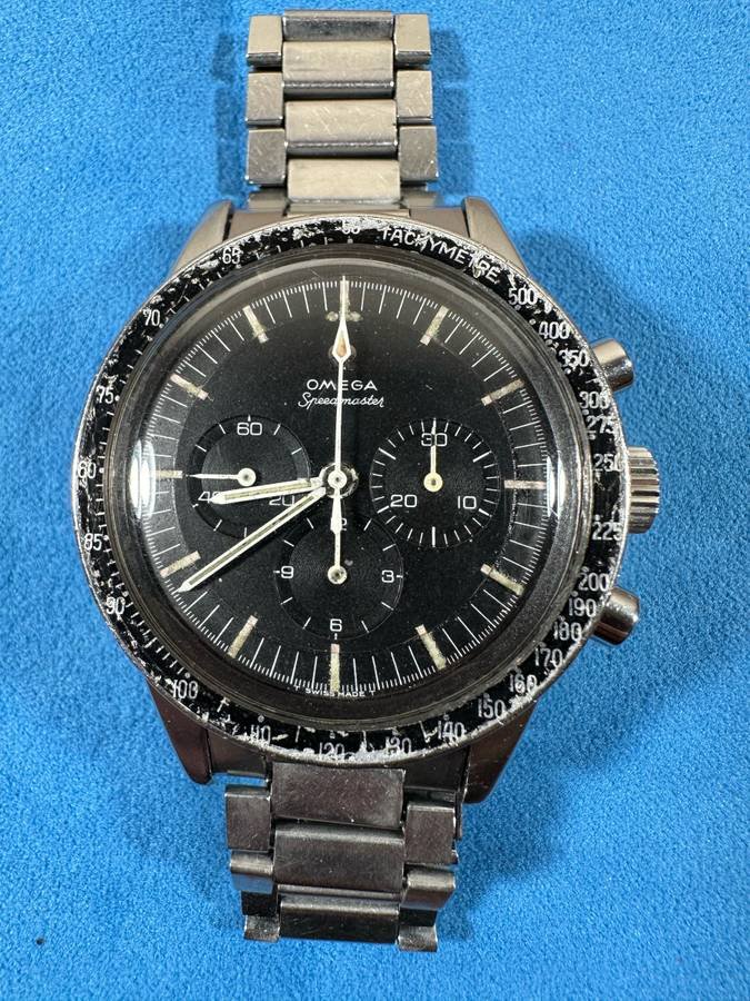 I sold my Speedy Pro (late model 1861) as it was very rarely worn and nin like new condition. It was replaced by a pristine FOIS but that also rarely gets worn. So I am thinking a more vintage example would be a better fit for my Speedmaster requirement! I know this one is pretty rough but maybe a better bezel could be added and would cheer it up.