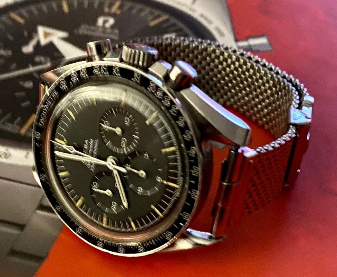 I personally like these old Speedmaster on a vintage JB Champion mesh band with straight lugs: