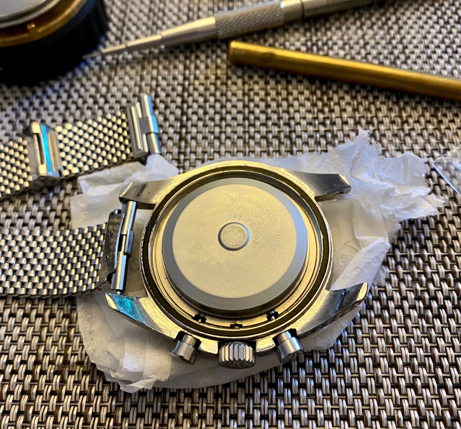 Dial has a very rare shiny grey tone that matches the ghost bezel nicely. The discoloration doesn’t look as bad in person.