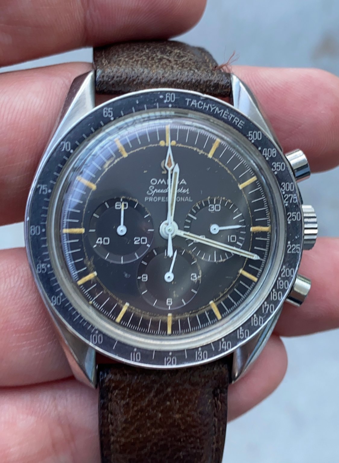 Is that actually one of the grey dial speedies? the damage is similar to others....