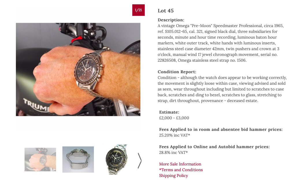 The dial was hard to see regarding blemishes or spots, and I had no help from the auction house…