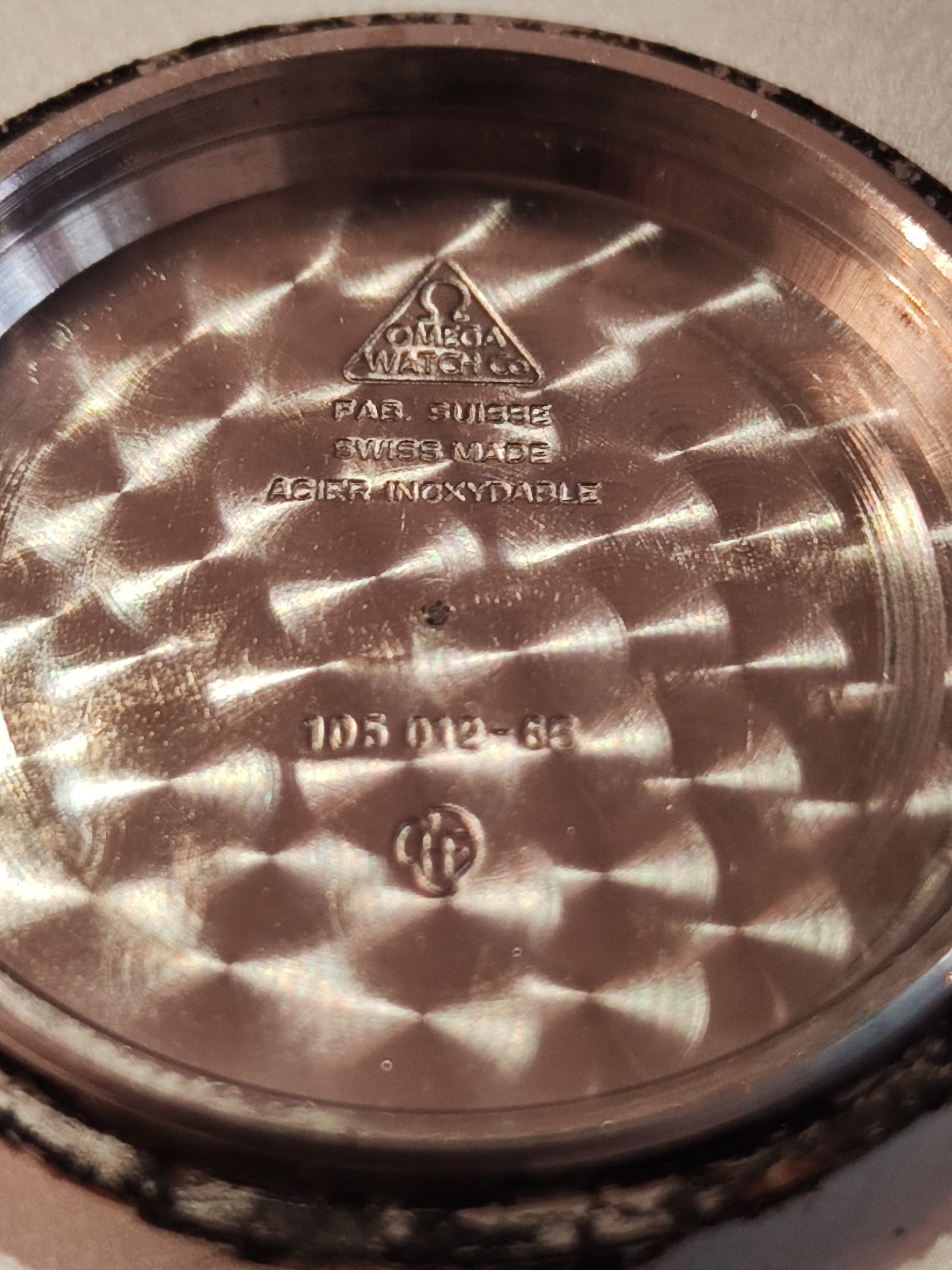 Caseback feels fresh with very little marks and scratches, engraving is very clear, stamped inside 105.012-66 HF