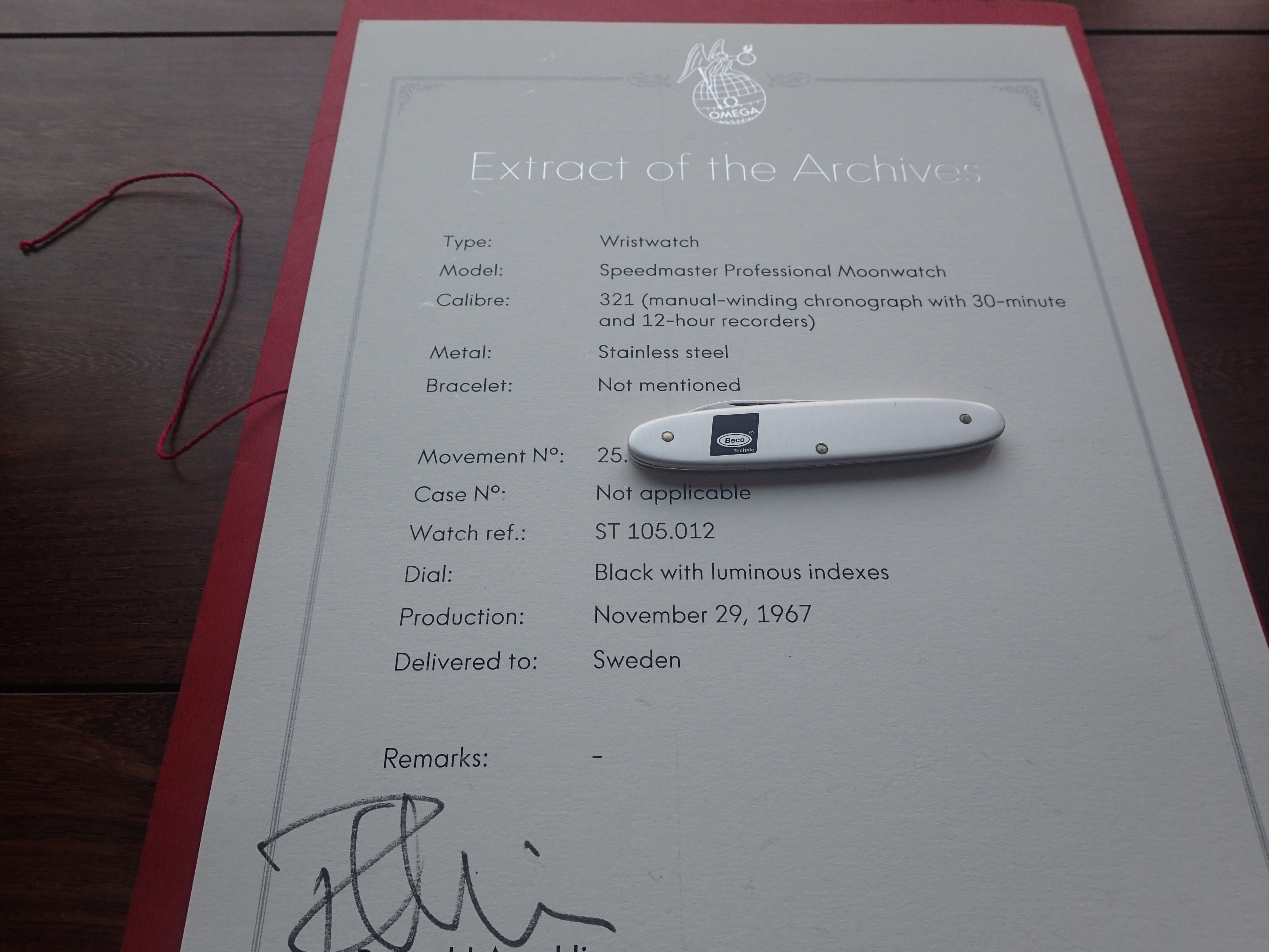 The watch comes with an Extract of the Archives showing delivery to Sweden in 1967.