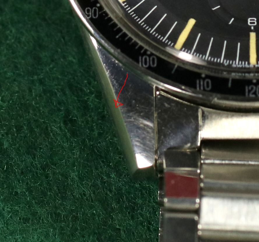 As we know, Speedmaster symmetrical cases have lugs featuring three surfaces: lateral side, small bevel and top face. My question is: what was the original finish of these three surfaces? I am pretty sure that the lateral side was brushed and the top face was, instead, polished; but what about the small bevel?