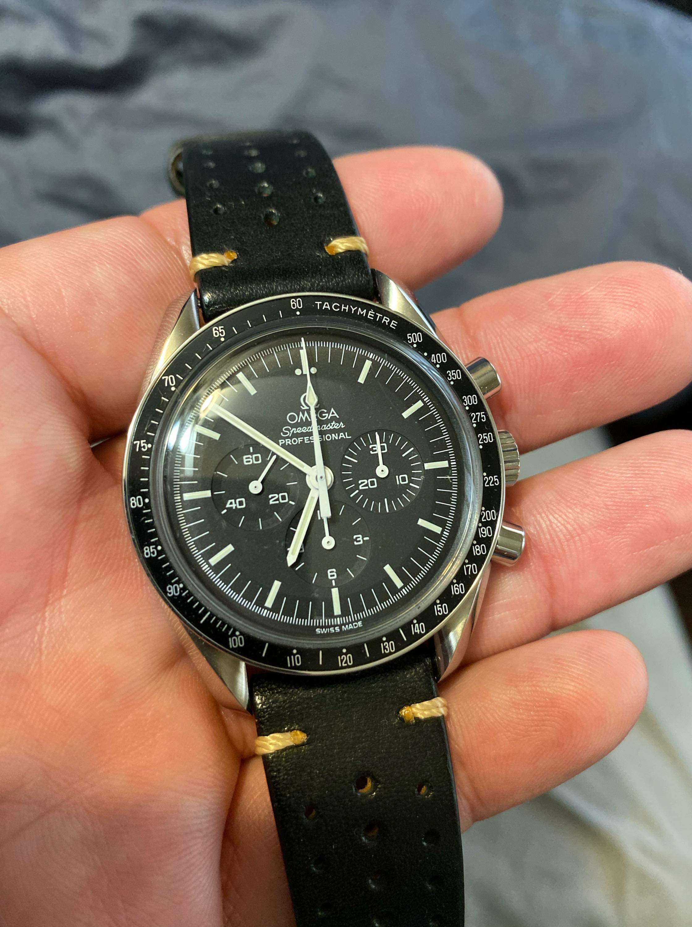 ·I purchased my first Speedmaster 145.0022 after waiting a long time for the right one to pop up. Purchased from a credible dealer. I open the caseback to attempt dating the watch and find the escape bridge has no serial number. The case does not have one as well. It appears this watch has been serviced and has newer hands. Movement is stamped 861. Can someone help me date the watch with other features?