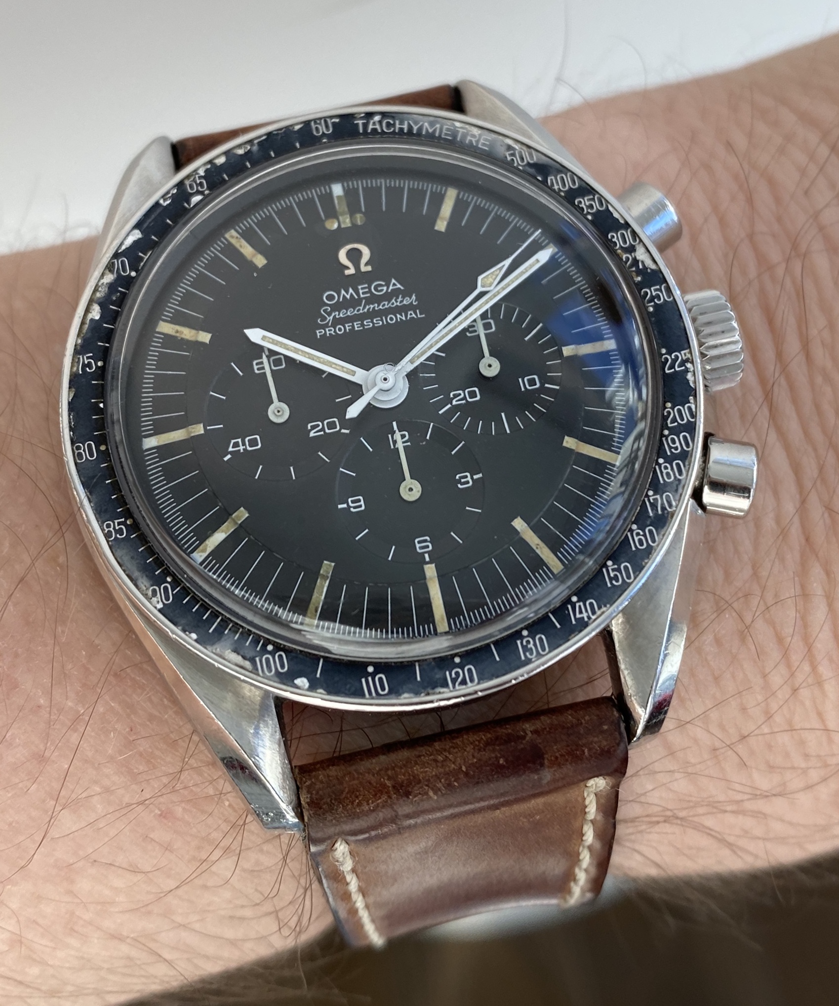 The watch will come on the brown leather Horween strap pictured, and the purchase price includes expedited and insured shipping word-wide. Payment is net to me, and can be either in USD to my US account, or in GBP to my UK account. The watch is in NYC, and FtF could also be arranged here. I have transacted both ways on OF many times, and references are available should you require them. Thanks for looking, and to OF for the opportunity to sell....