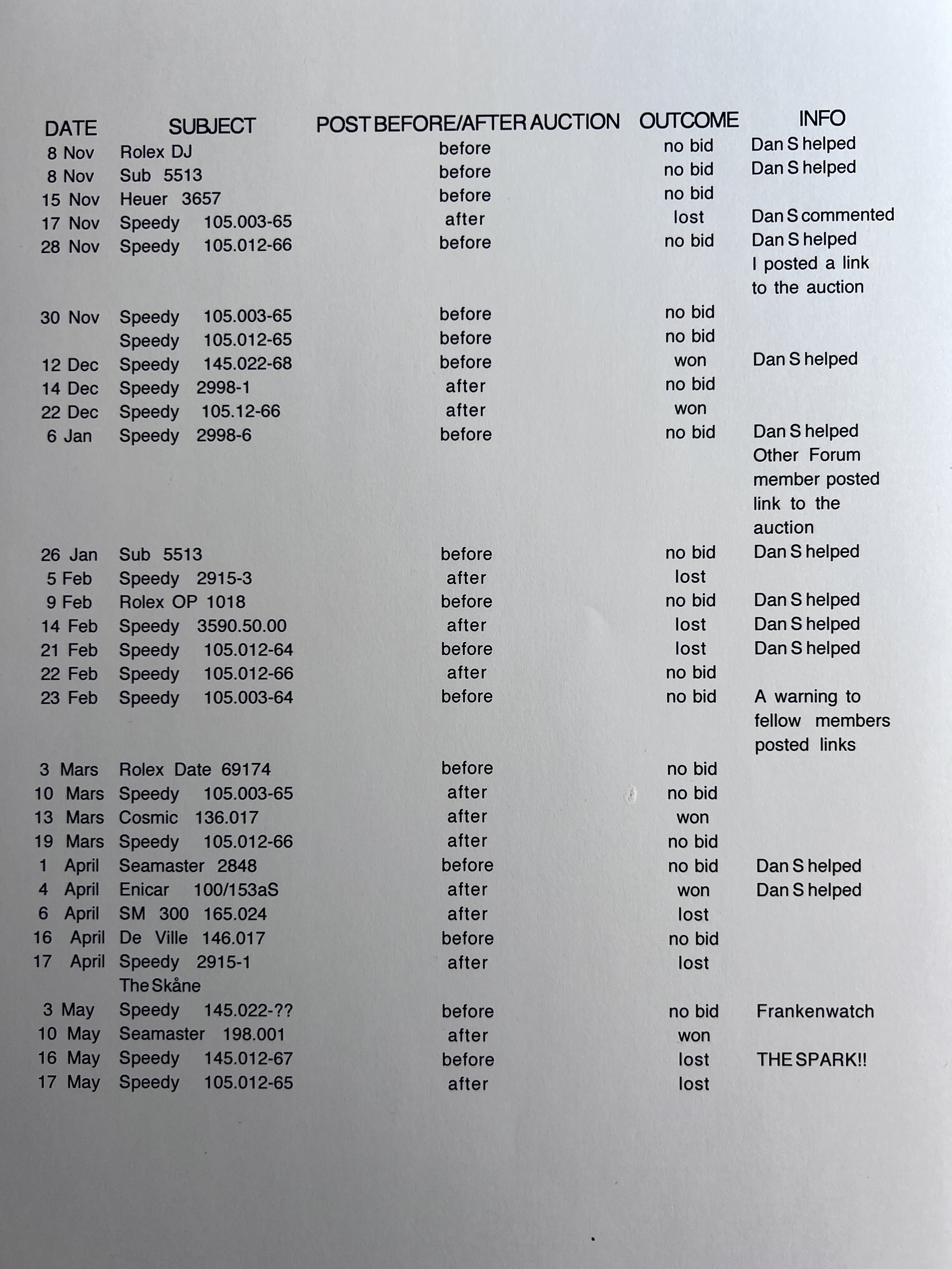 There is also a Swedish watchforum (Klocksnack.se), and there are daily posts on up-coming auction where the members comment on the watches regarding condition, value etc.