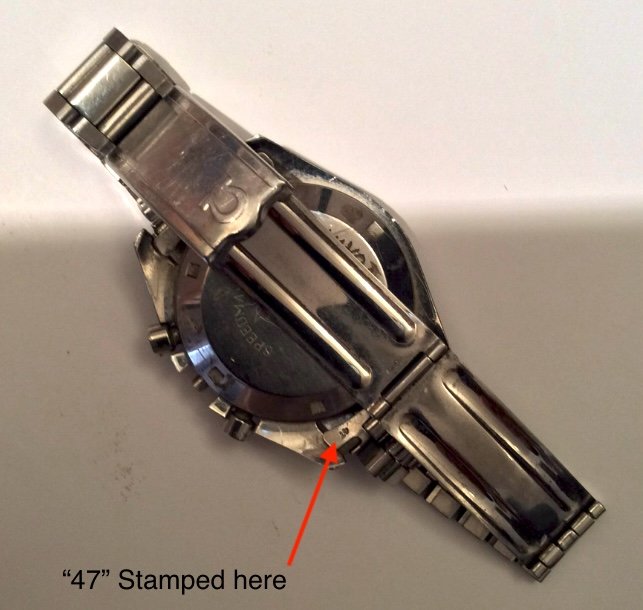 The only stamped numbers I can see on the bracelet is "47" stamped on the end link as shown in one of the pictures.